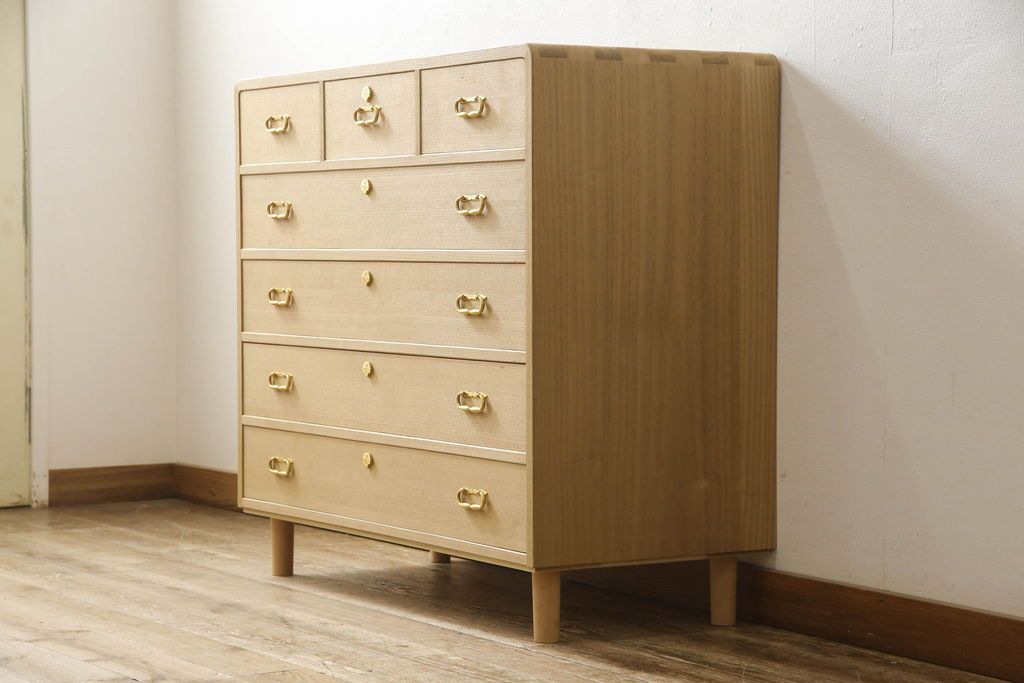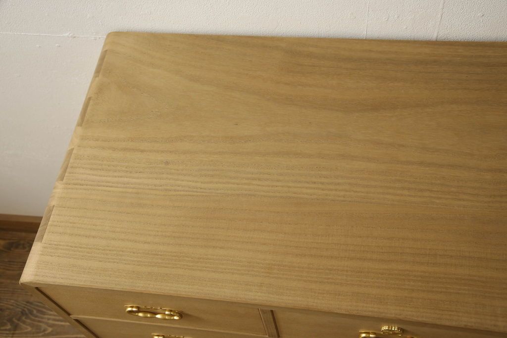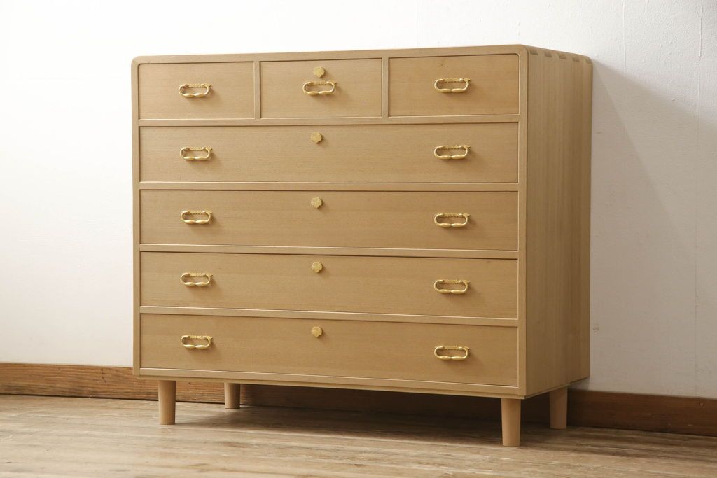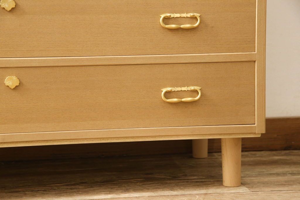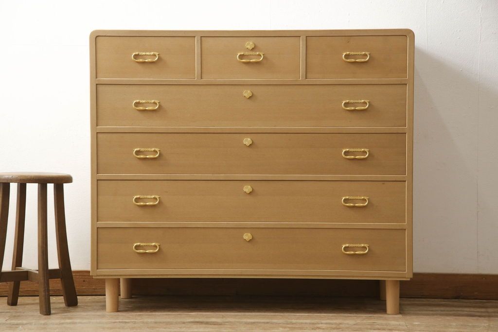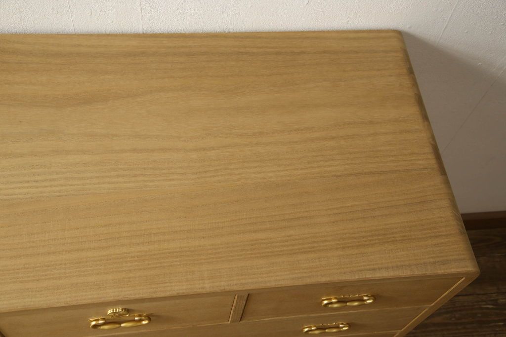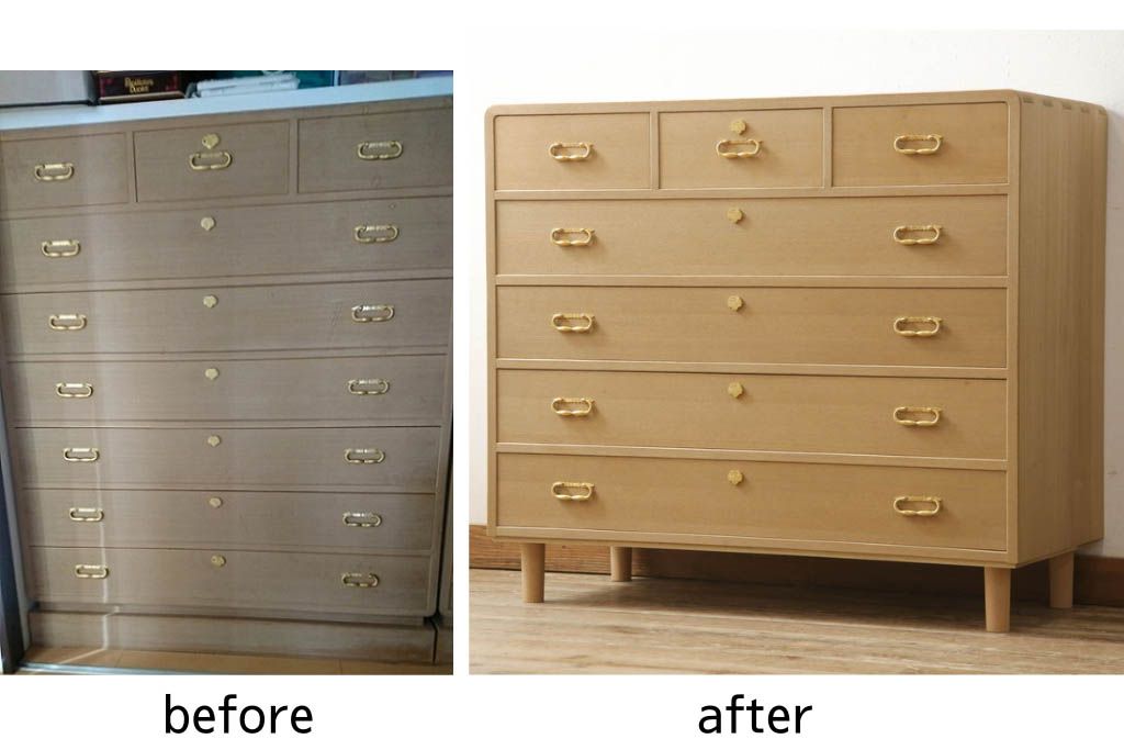 桐箪笥をチェストにリメイク!下2段の引き出しと台輪をカットし、木製脚の取り付け。蜜蝋ワックス仕上げ。