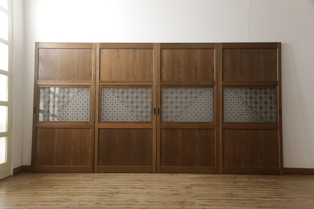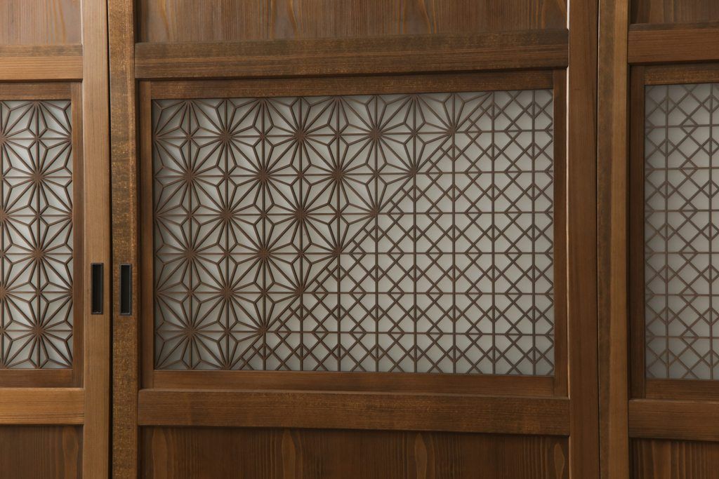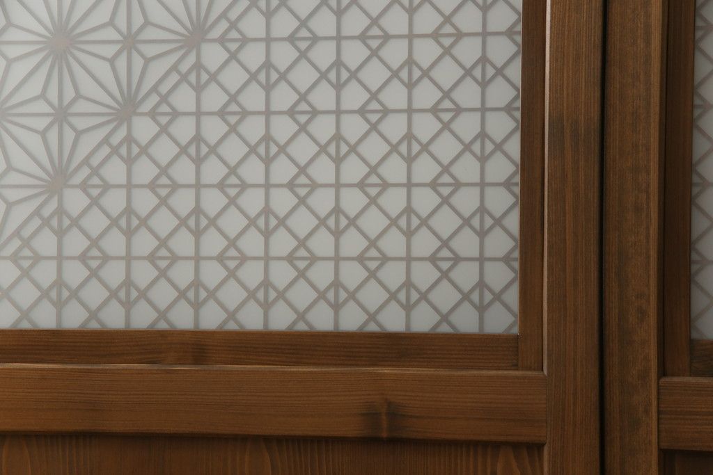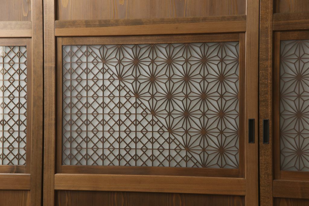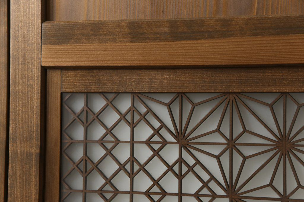 組子帯戸4枚を新規製作!すりガラスとクリアガラスを片面ずつ使用。(板戸、引き戸、ガラス戸、組子細工、建具)