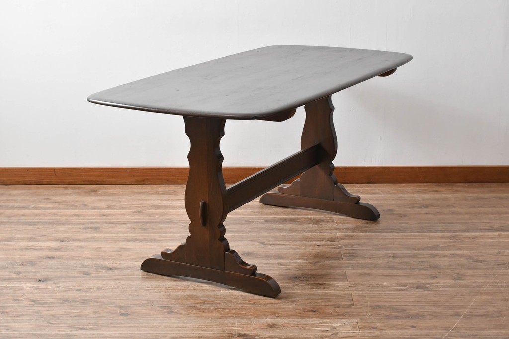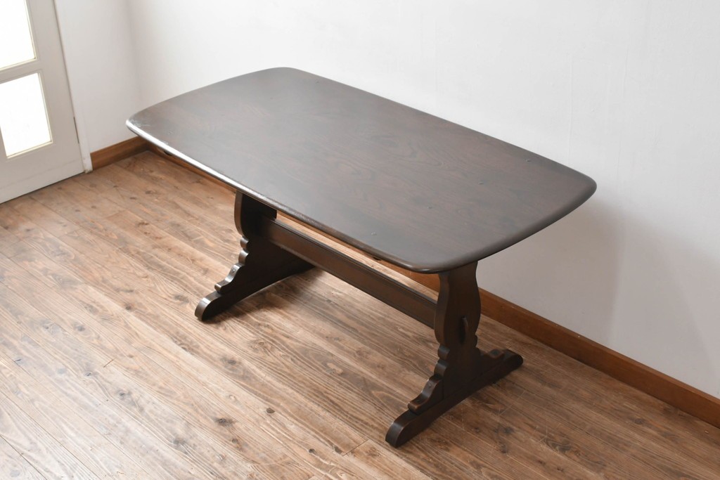 イギリスヴィンテージ ERCOL(アーコール) エルム材 クラシカルな雰囲気漂うダイニングテーブル(ヴィンテージ、4人掛け、6人掛け、食卓、作業台)(R-060852)