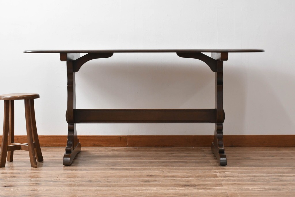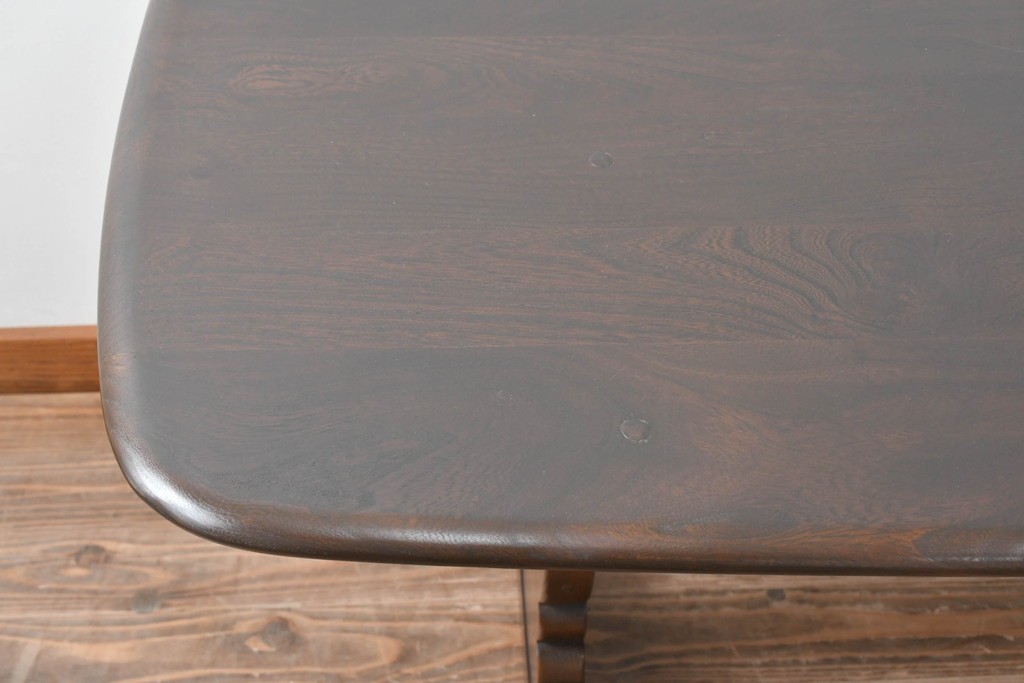 テーブル> 4人用ダイニングテーブル > イギリスヴィンテージ ERCOL(アーコール) エルム材 クラシカルな雰囲気漂うダイニングテーブル(ヴィンテージ、4人掛け、6人掛け、食卓、作業台)(R-060852)