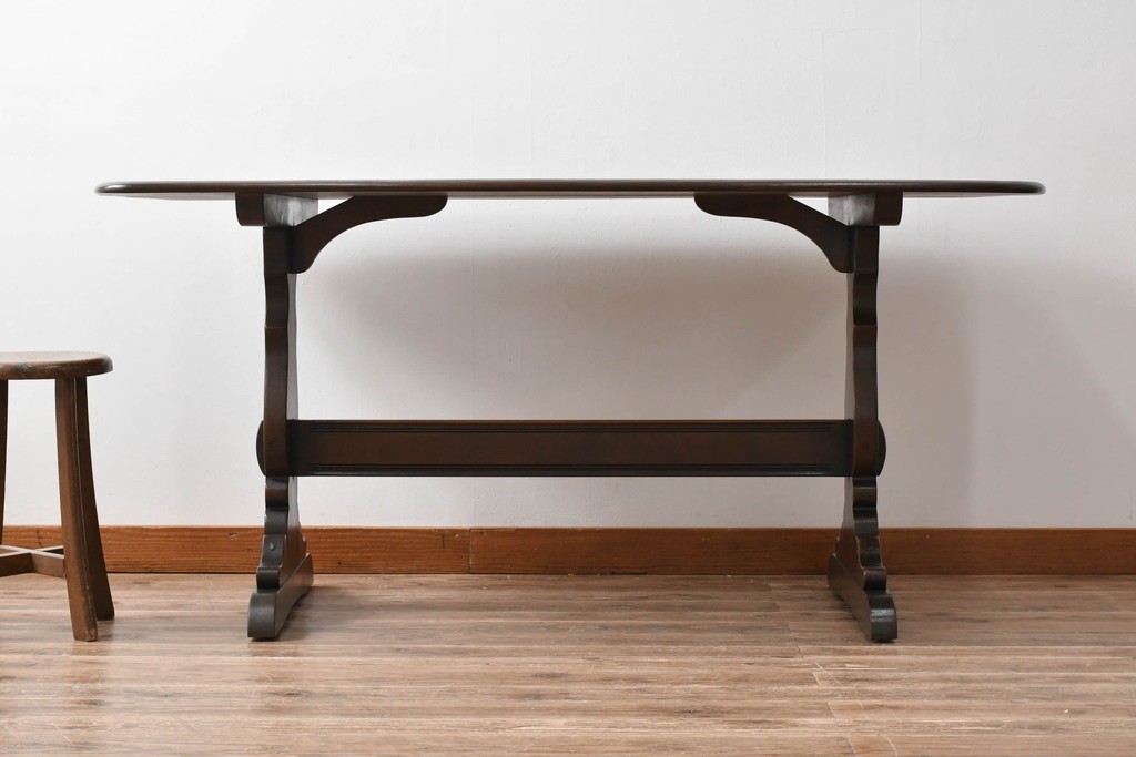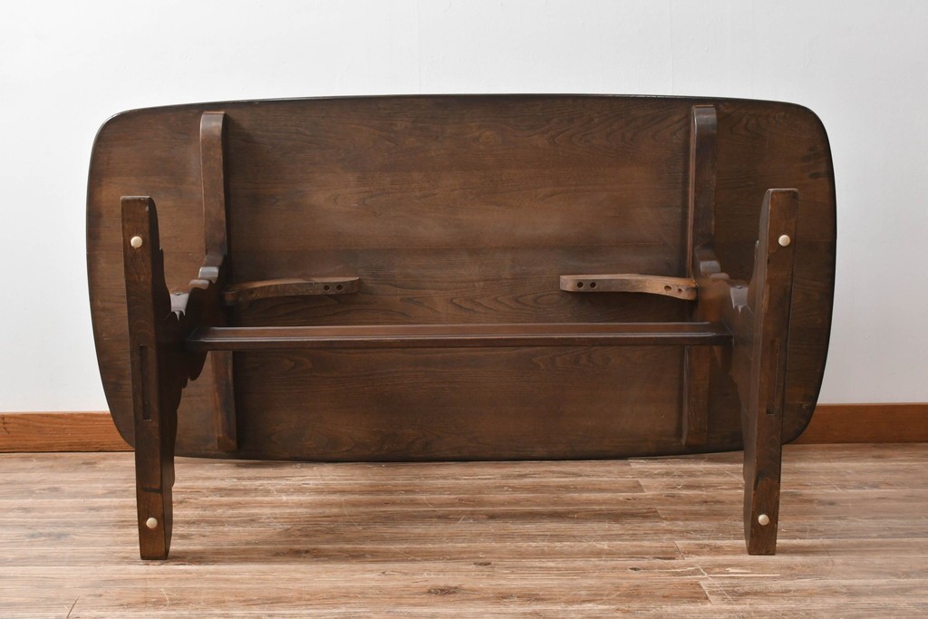 テーブル> 4人用ダイニングテーブル > イギリスヴィンテージ ERCOL(アーコール) エルム材 クラシカルな雰囲気漂うダイニングテーブル(ヴィンテージ、4人掛け、6人掛け、食卓、作業台)(R-060853)