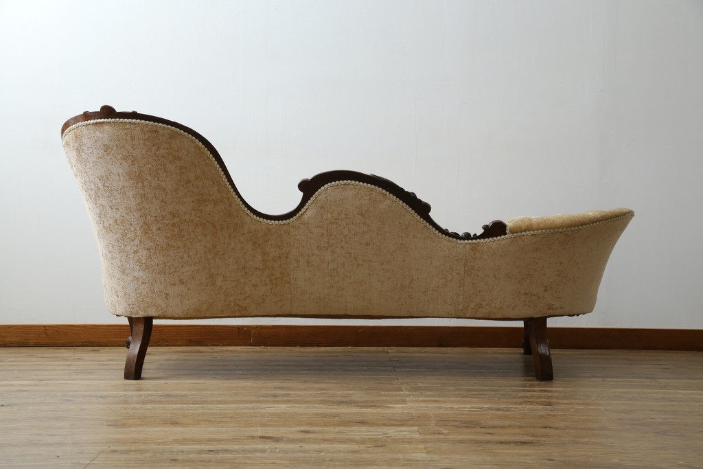 ソファ> 2人掛けソファ > イギリスアンティーク マホガニー材 上質な空間づくりに取り入れたい最高級品のシェーズロングソファ(カウチソファ、長椅子、2P、3P、2人掛け、3人掛け、二人掛け、三人掛け)(R-061020)