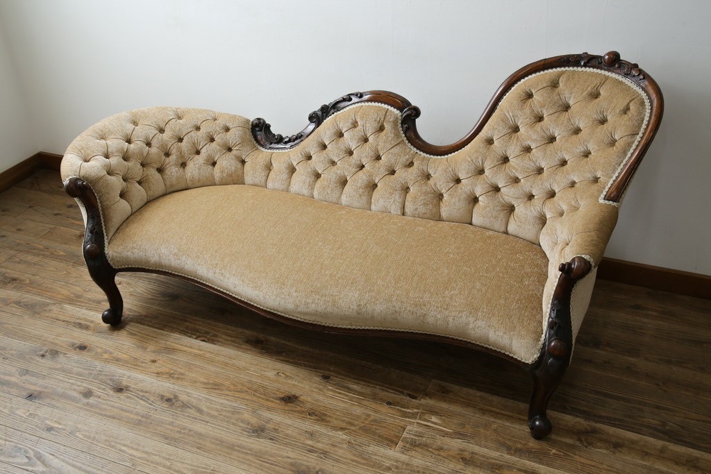 ソファ> カウチ > イギリスアンティーク マホガニー材 上質な空間づくりに取り入れたい最高級品のシェーズロングソファ(カウチソファ、長椅子、2P、3P、2人掛け、3人掛け、二人掛け、三人掛け)(R-061020)