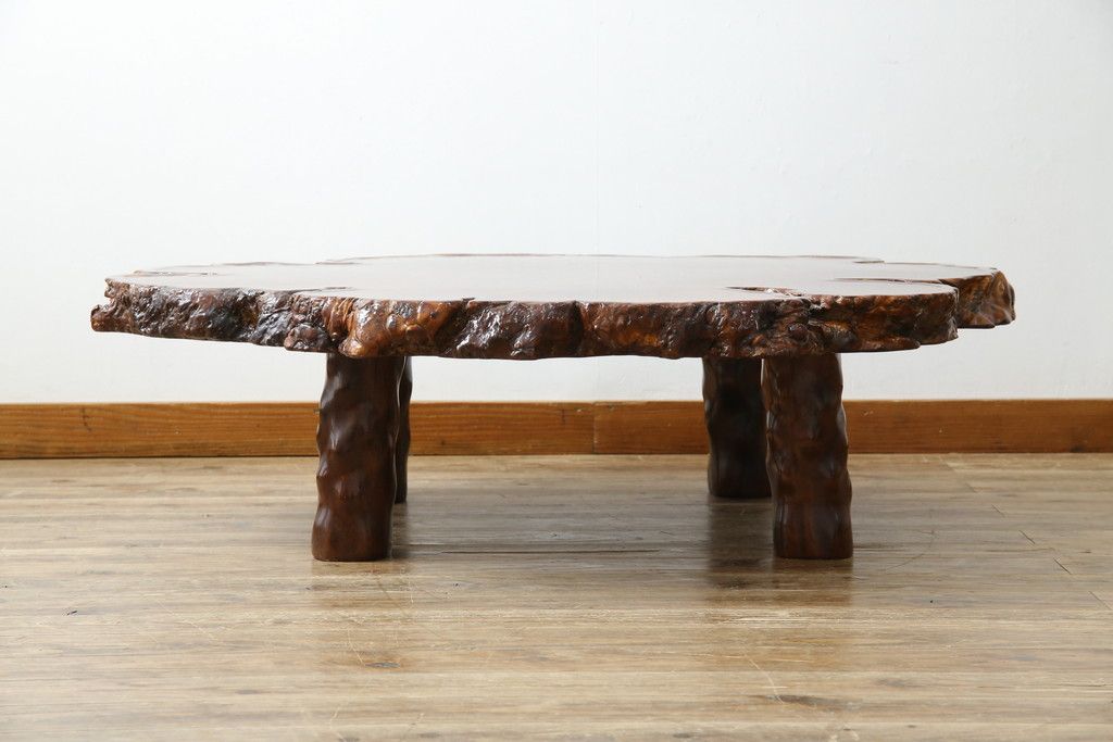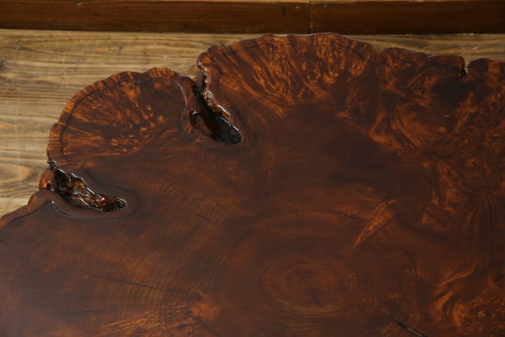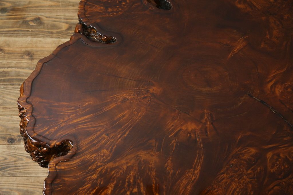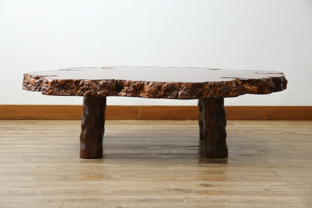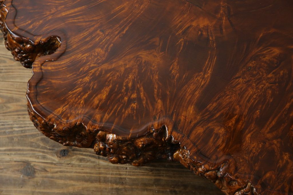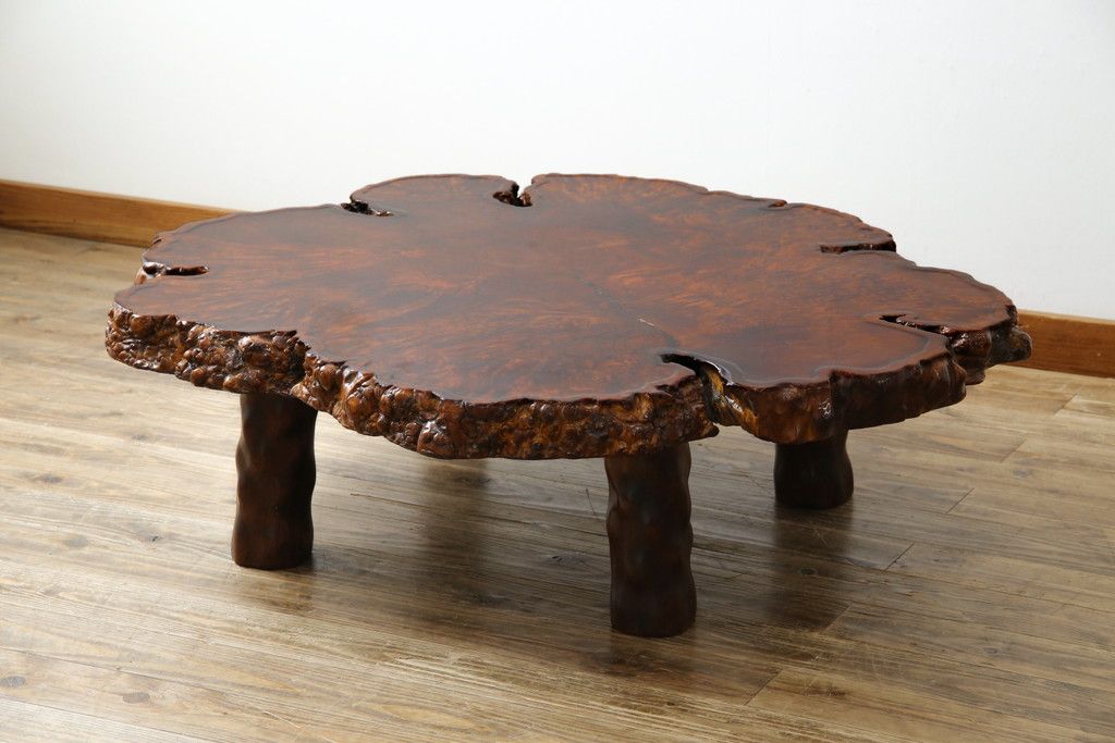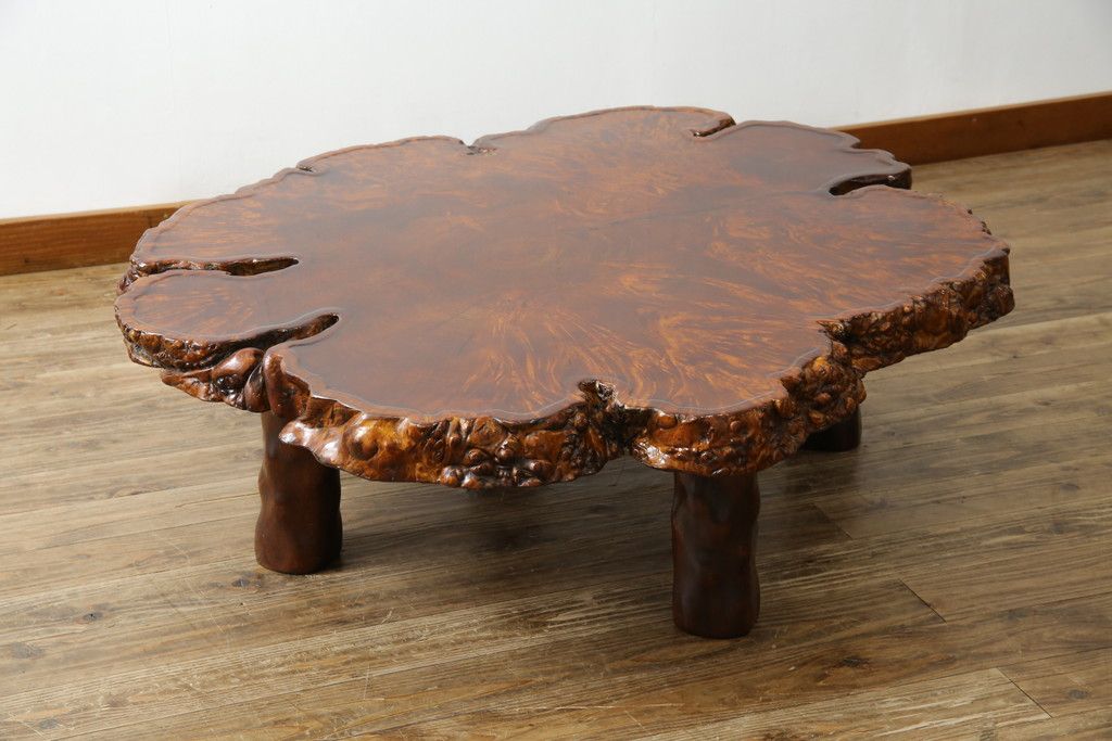 民芸家具 > 中古 美品 銘木 楓(カエデ)の輪切り 瘤材 鳥眼杢(バーズアイ) 木の風合いを活かした高級座卓(ローテーブル、センターテーブル、リビングテーブル)(定価約50万円)(R-061036)