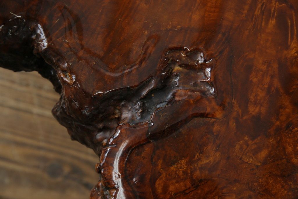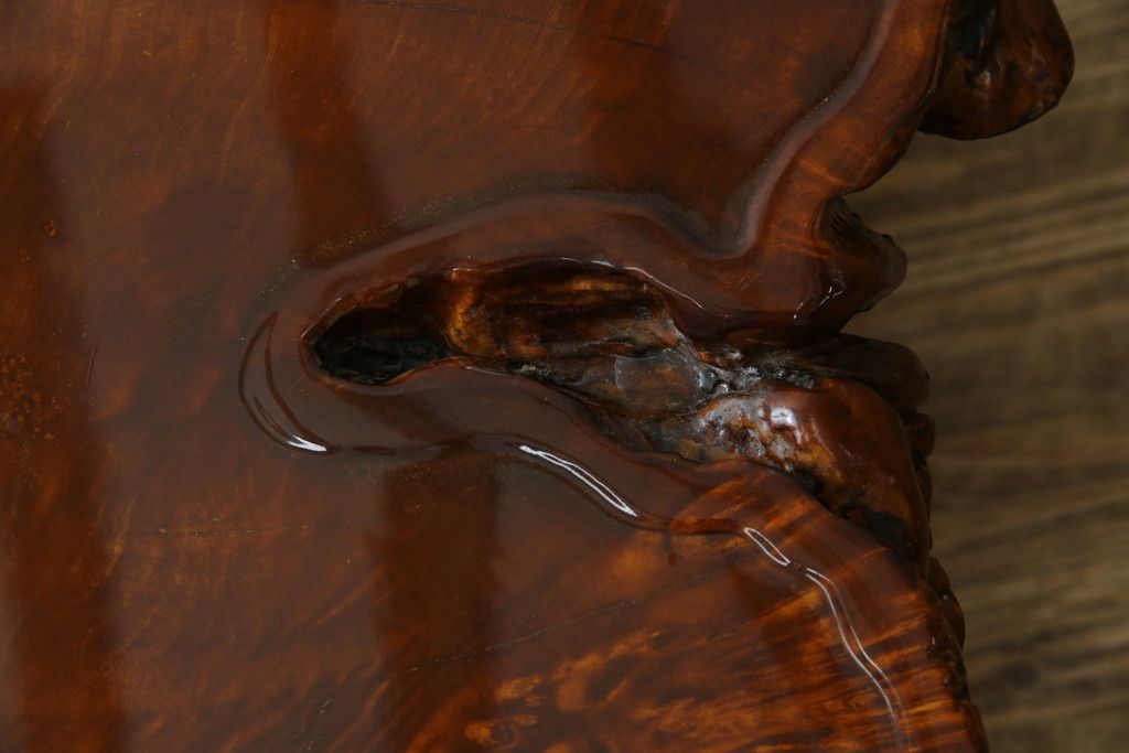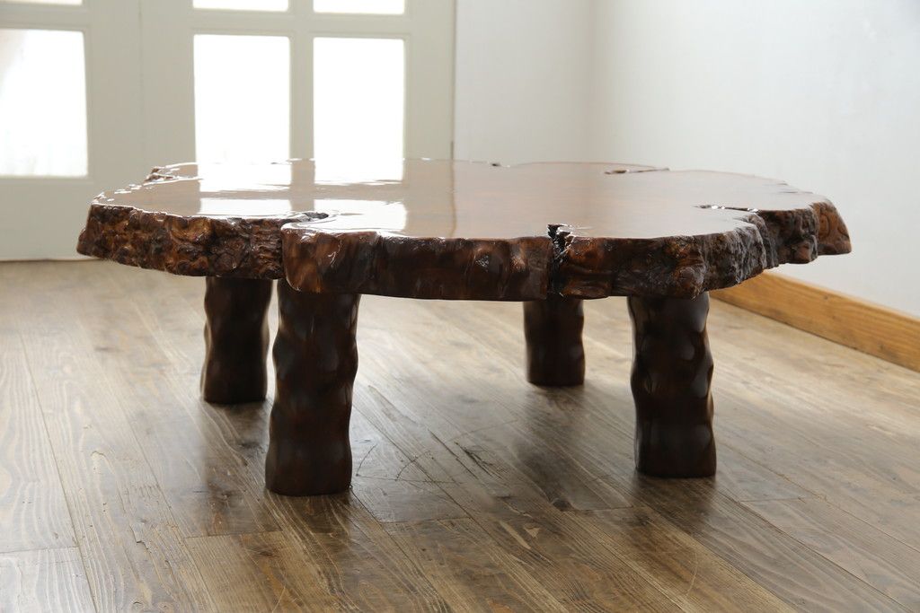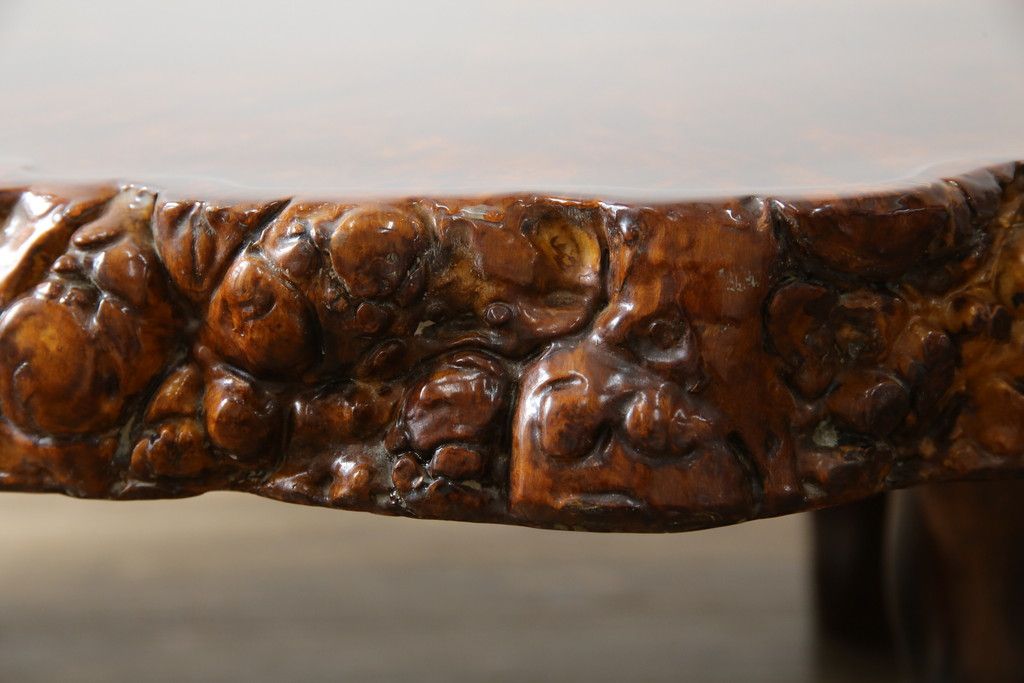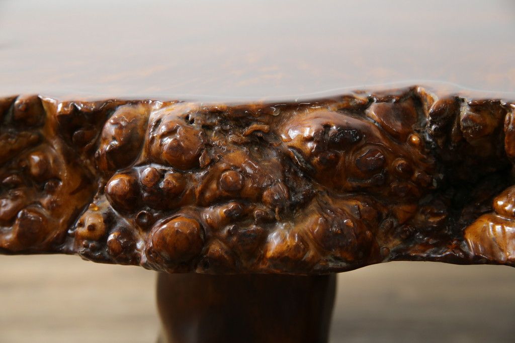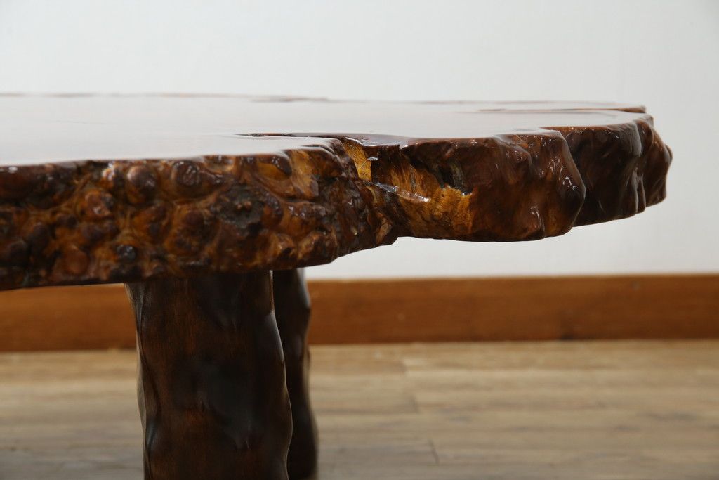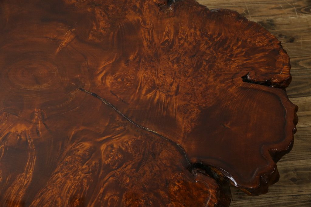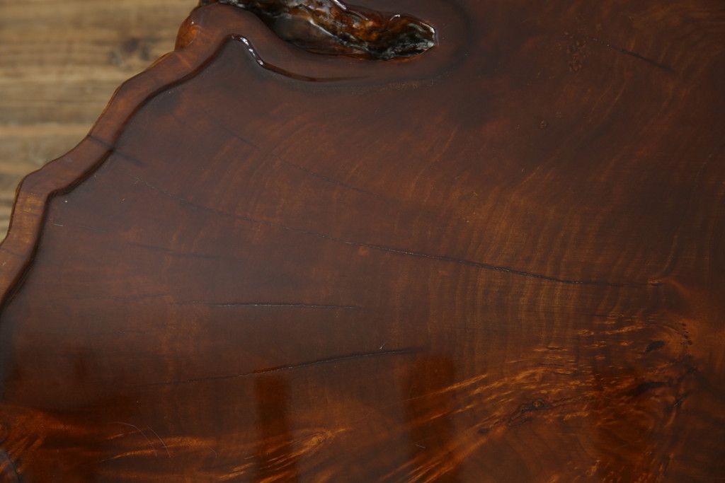 民芸家具 > 中古 美品 銘木 楓(カエデ)の輪切り 瘤材 鳥眼杢(バーズアイ) 木の風合いを活かした高級座卓(ローテーブル、センターテーブル、リビングテーブル)(定価約50万円)(R-061036)