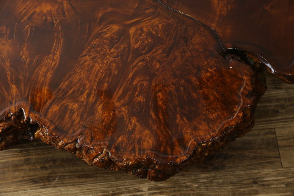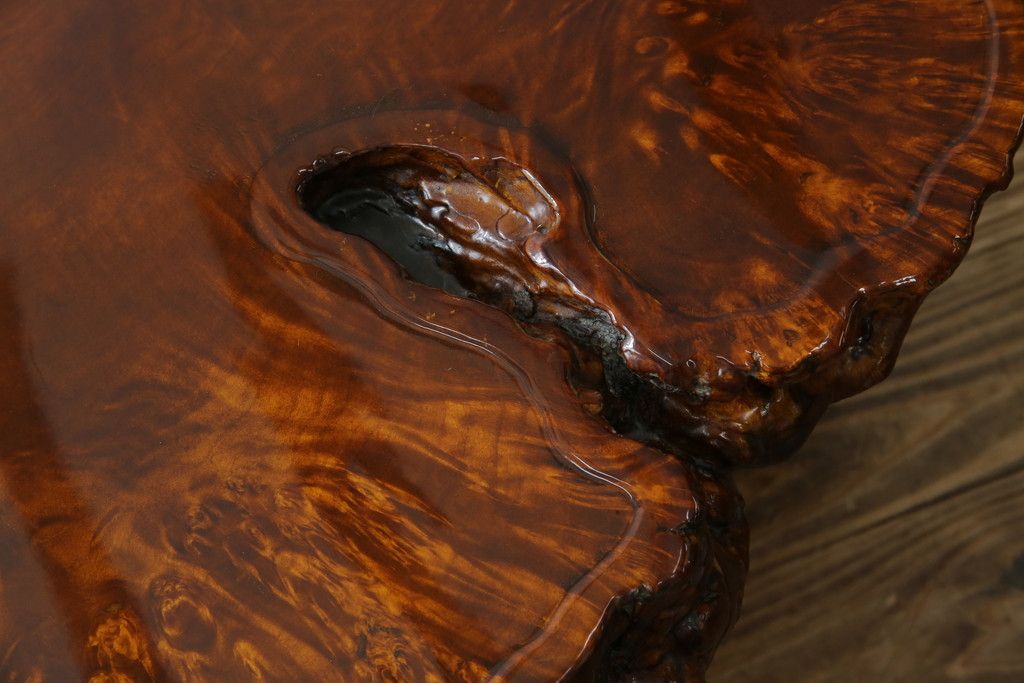 テーブル> 座卓 > 中古 美品 銘木 楓(カエデ)の輪切り 瘤材 鳥眼杢(バーズアイ) 木の風合いを活かした高級座卓(ローテーブル、センターテーブル、リビングテーブル)(定価約50万円)(R-061036)