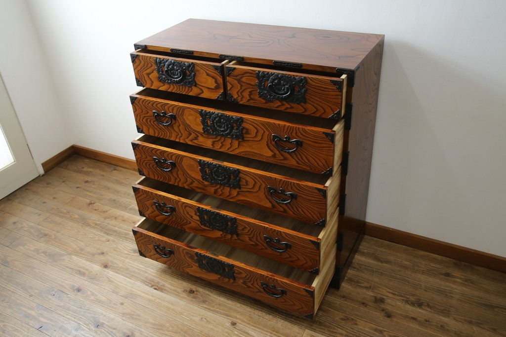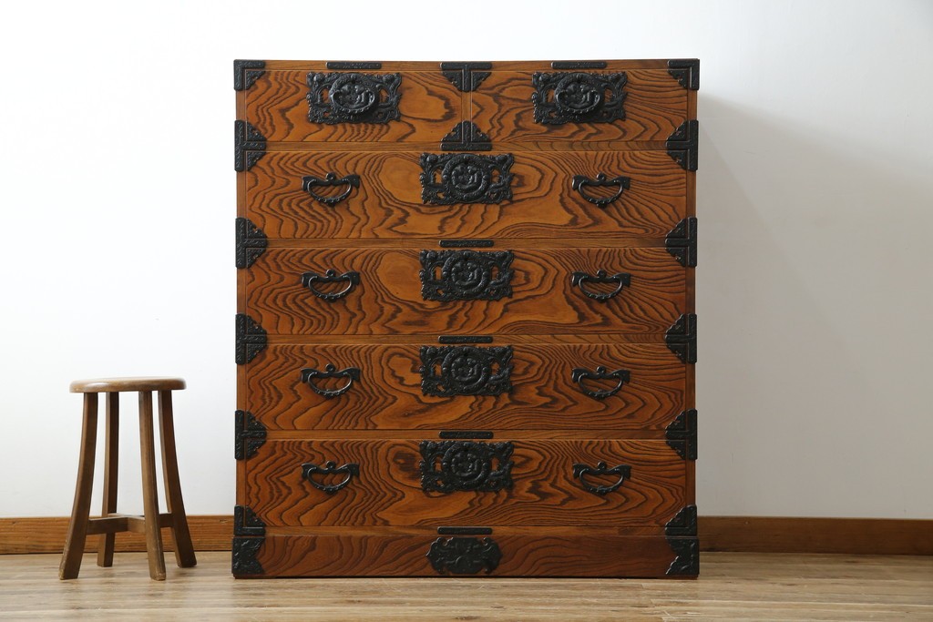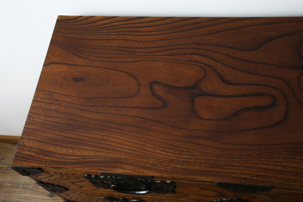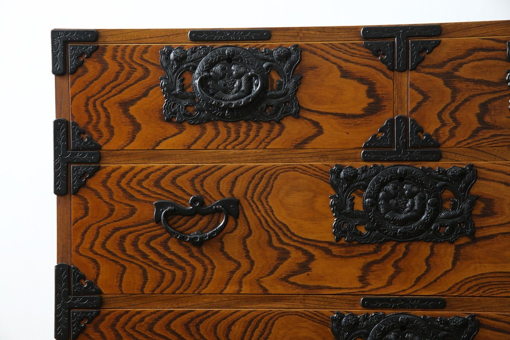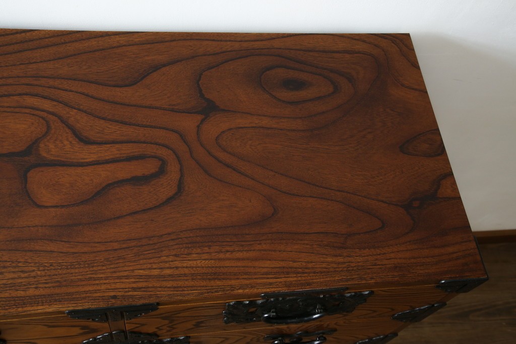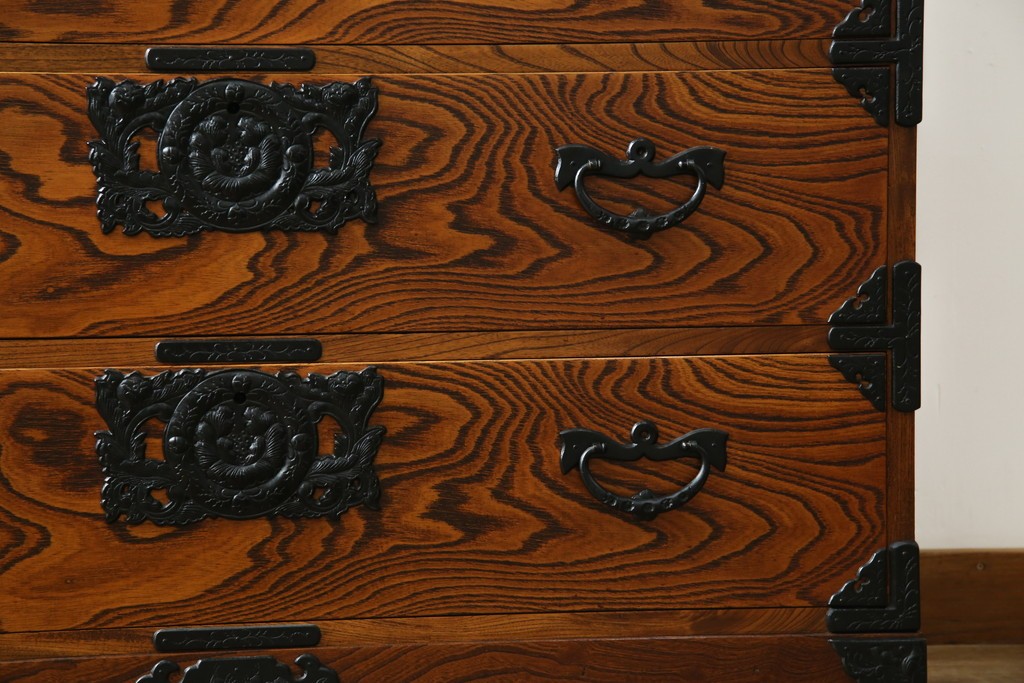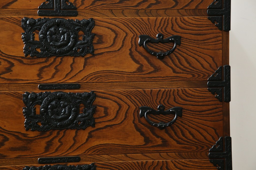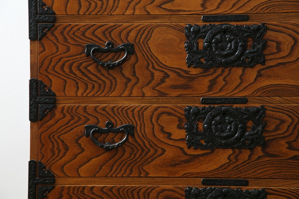 和箪笥> 衣装箪笥 > 中古 岩谷堂箪笥 存在感のある金具と迫力のある杢目が目を惹く衣装箪笥 (R-061128)