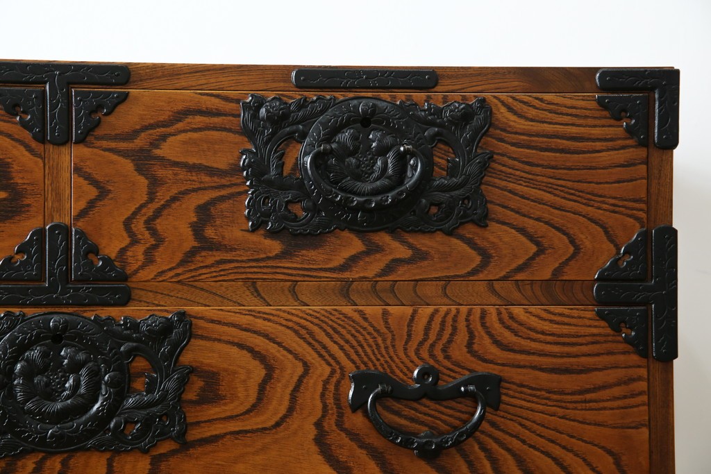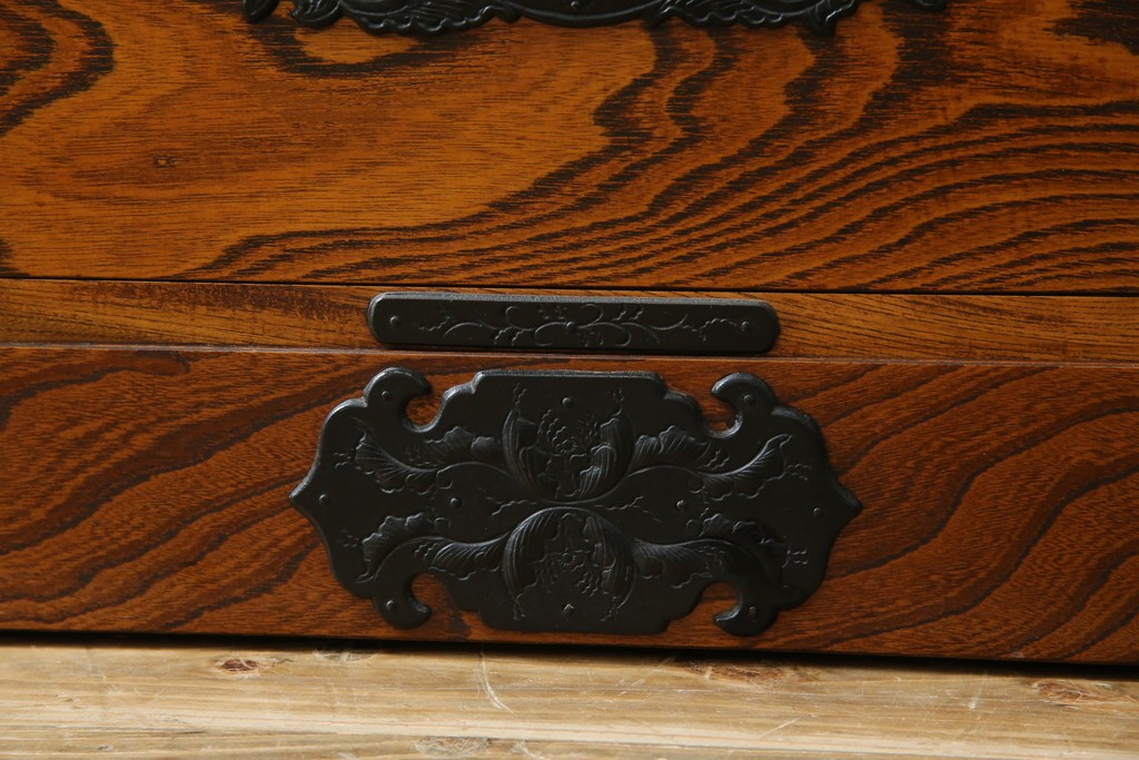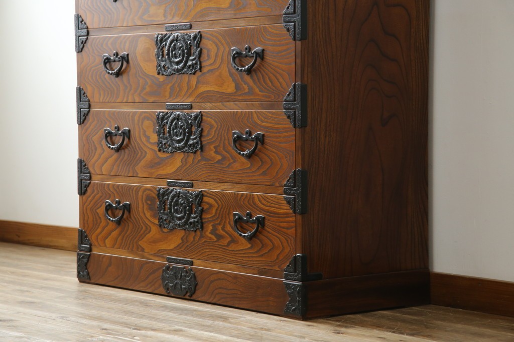 中古 岩谷堂箪笥 存在感のある金具と迫力のある杢目が目を惹く衣装箪笥 (R-061128)