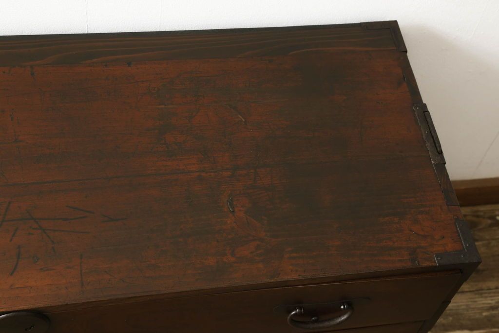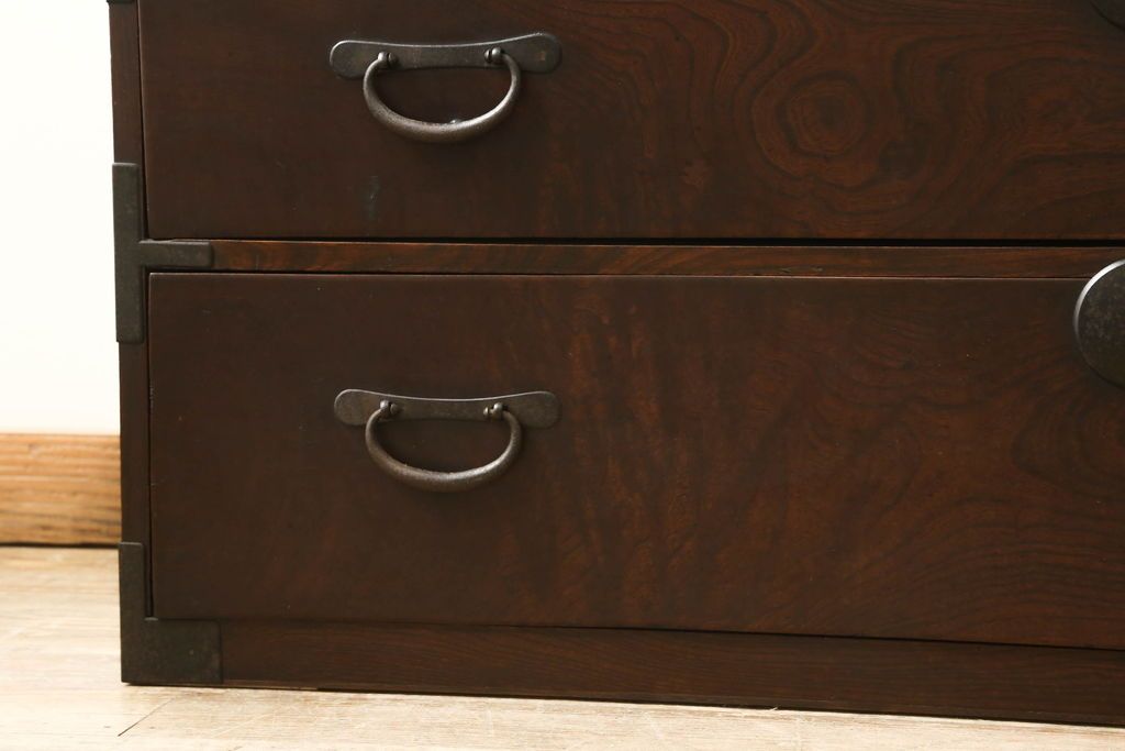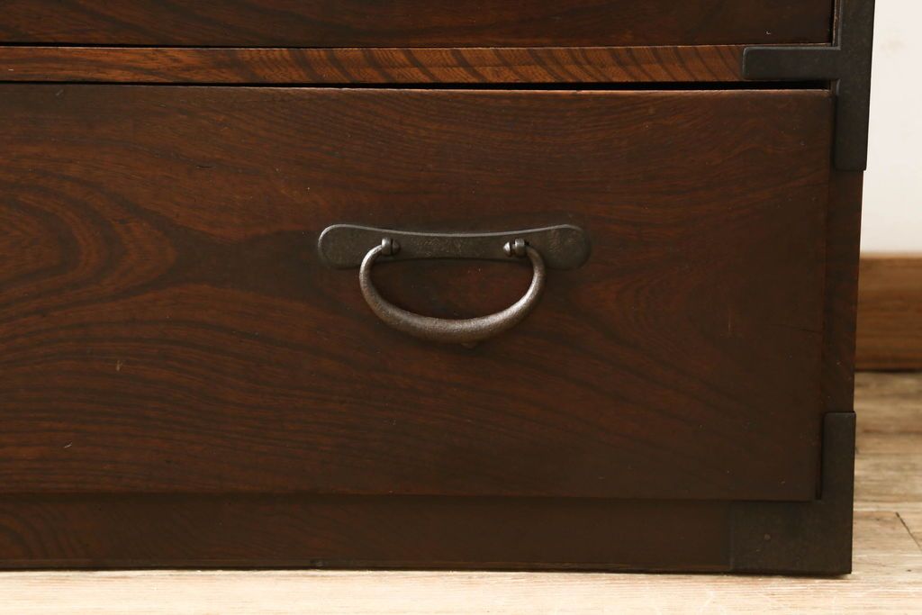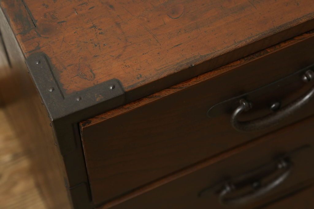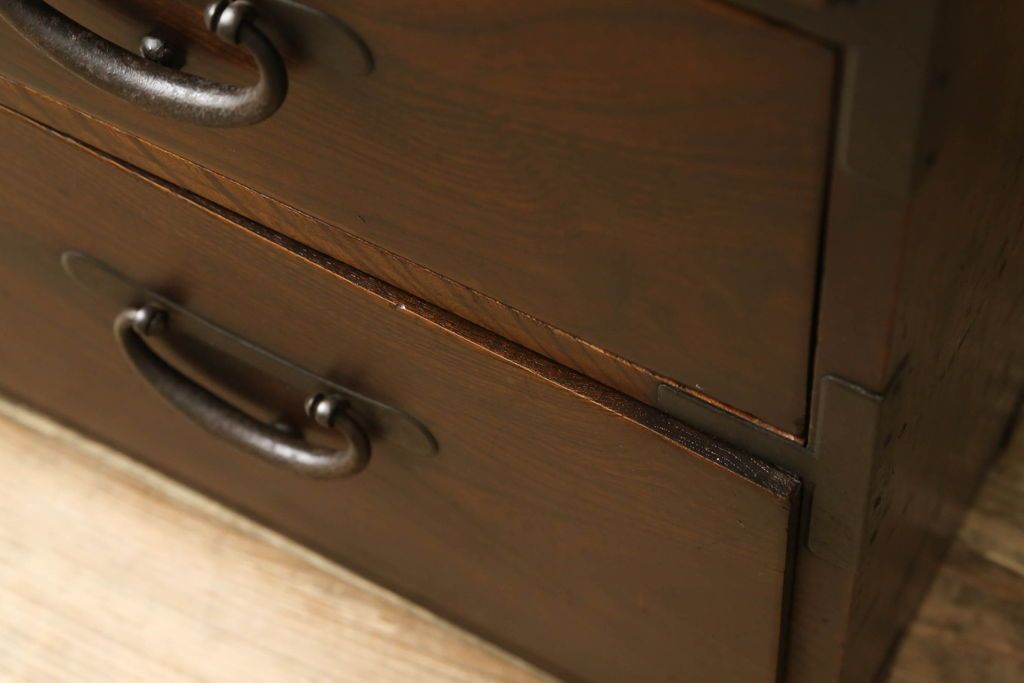 セミオーダー家具実績 > 昭和初期の仙台箪笥の見た目を変えずに綺麗にリペア!傷を修復し、引き出し等の可動部を調整。現状の色味をベースに着色仕上げ。(時代箪笥、衣装箪笥、和タンス、収納たんす)