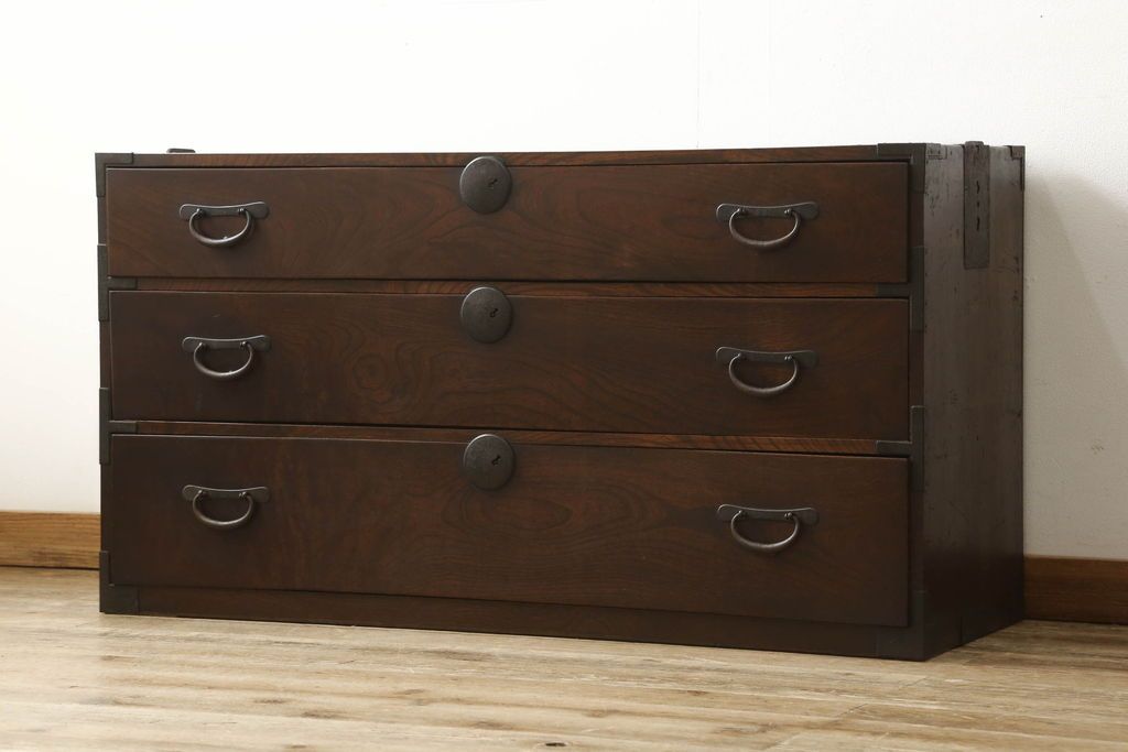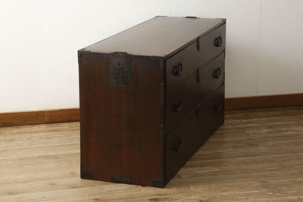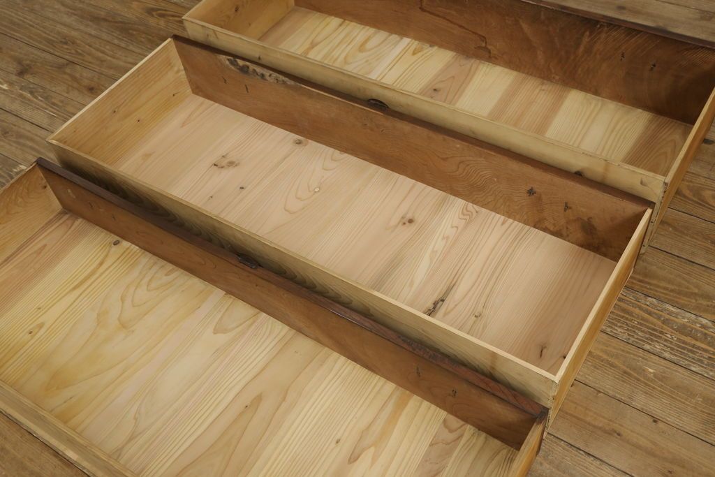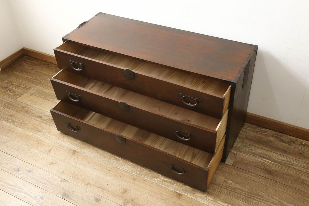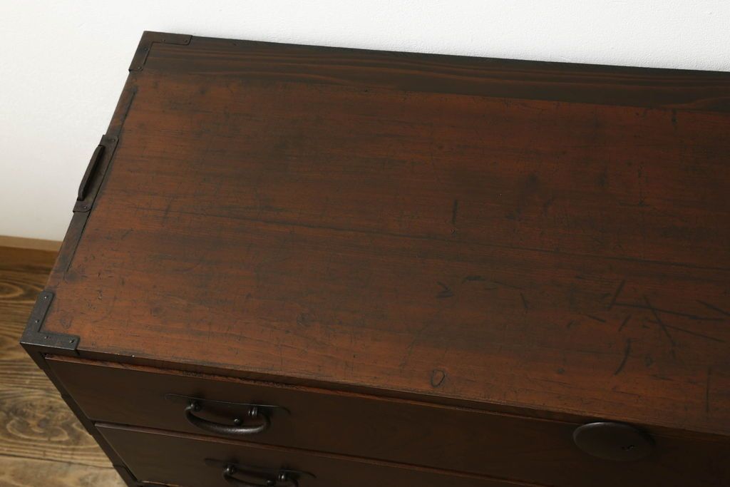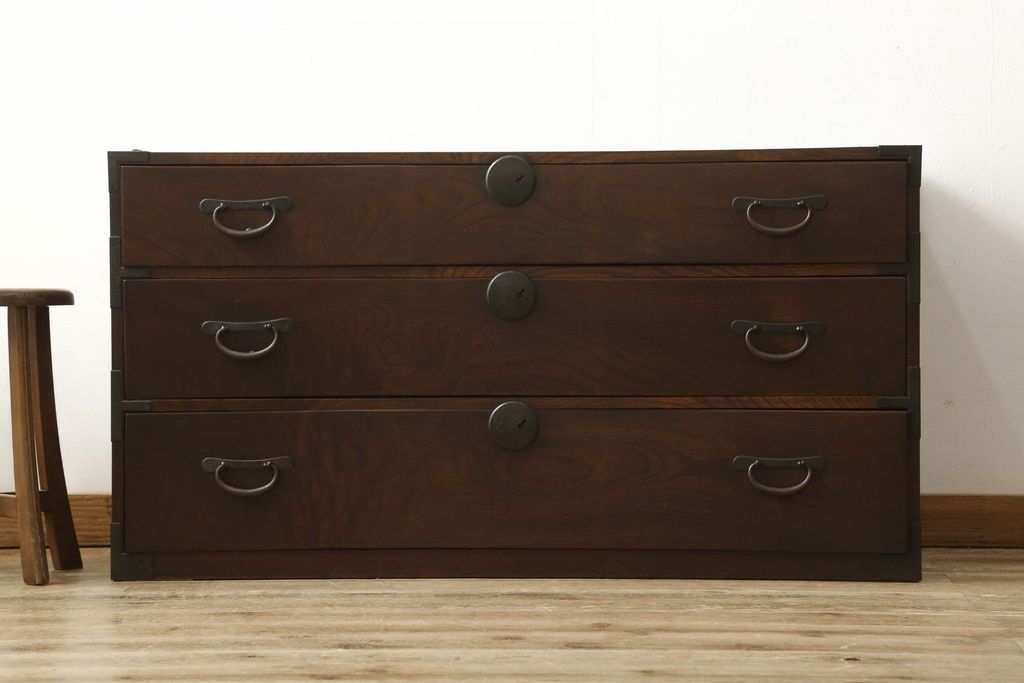 セミオーダー家具実績 > 昭和初期の仙台箪笥の見た目を変えずに綺麗にリペア!傷を修復し、引き出し等の可動部を調整。現状の色味をベースに着色仕上げ。(時代箪笥、衣装箪笥、和タンス、収納たんす)