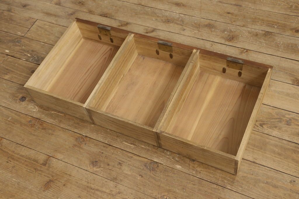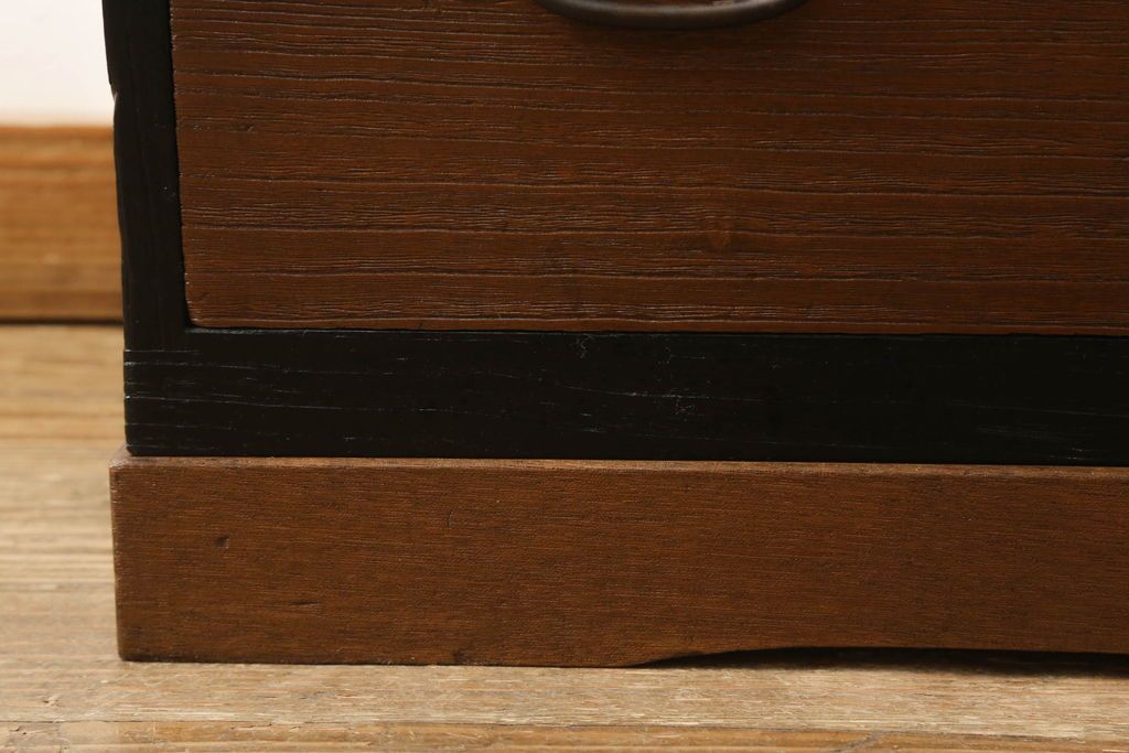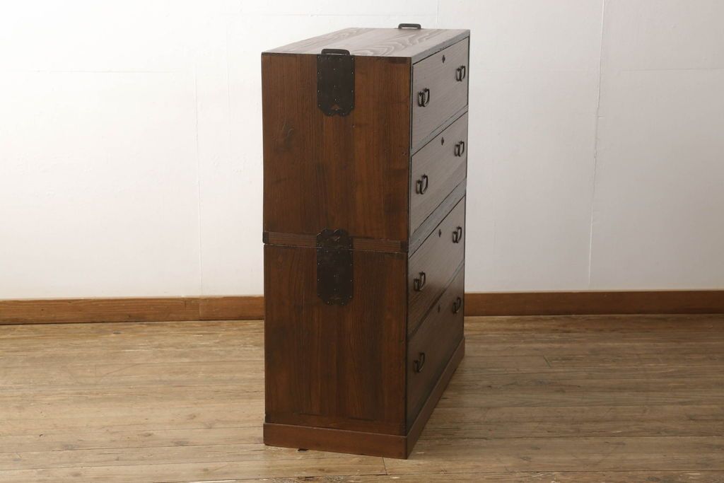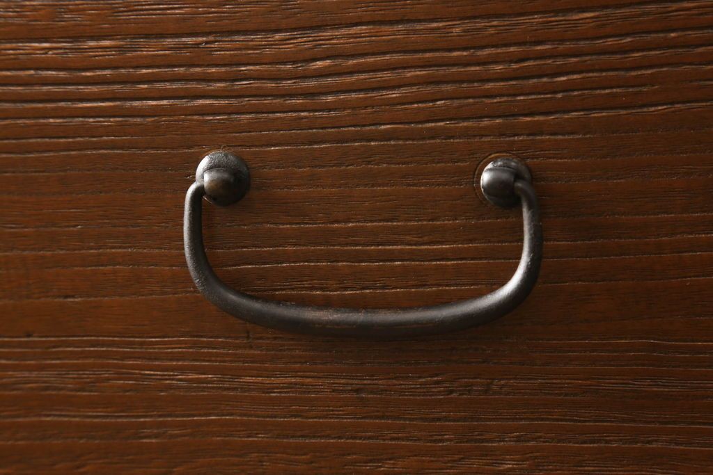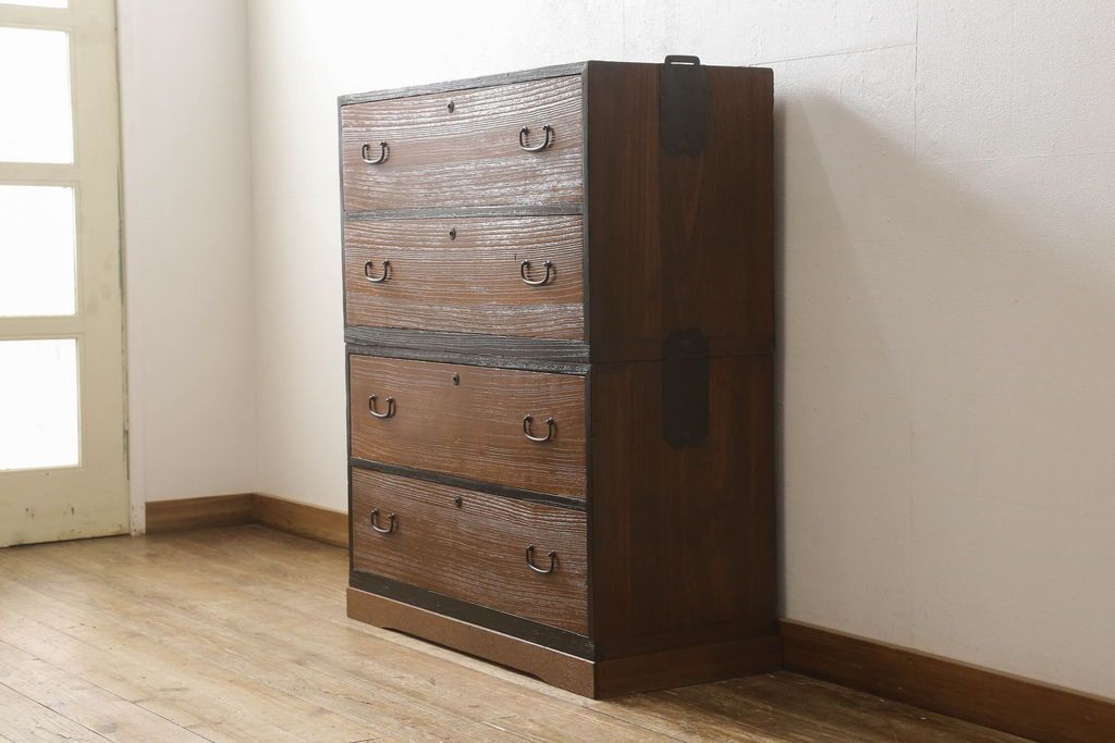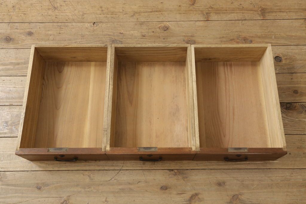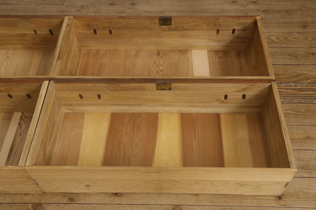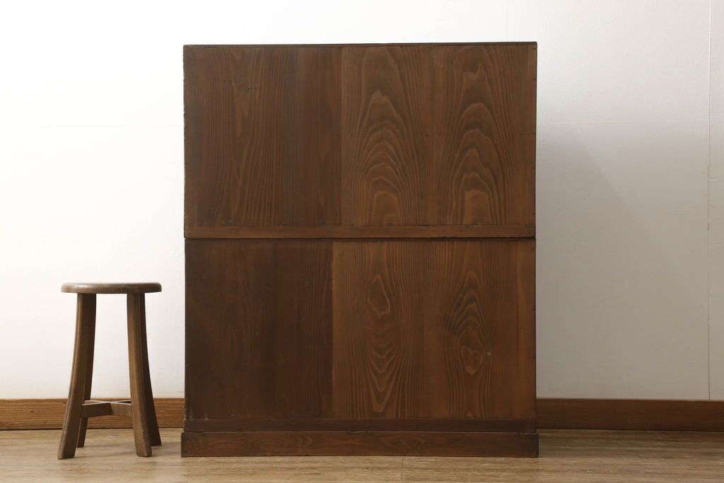 3段重ね桐箪笥をテレビボードとチェストへリメイク!上段は引き戸に組子ガラスを取り付け、天板、脚を追加。中下段は合わせてチェストに。全体を赤味のある茶系に着色し、縁部分は黒のカシュー漆で塗装。