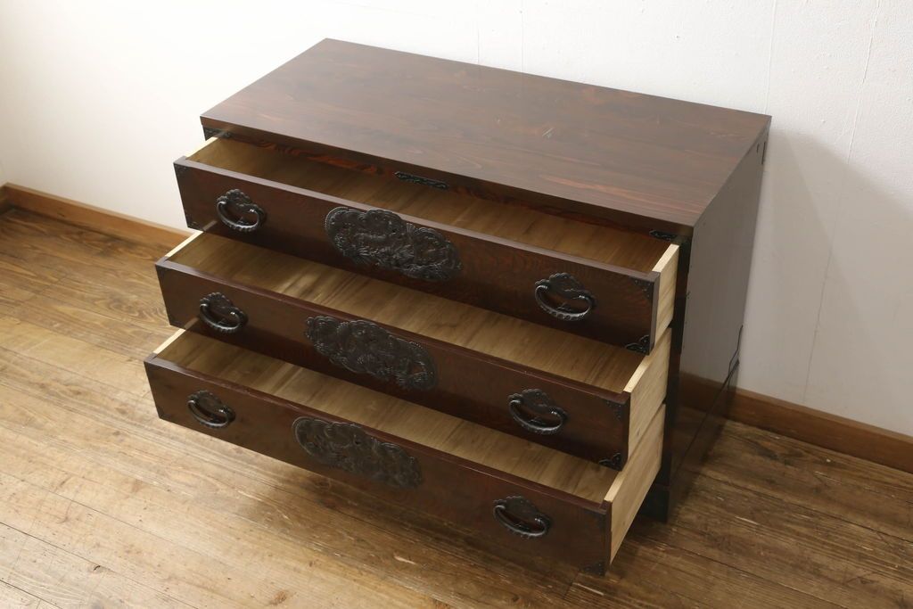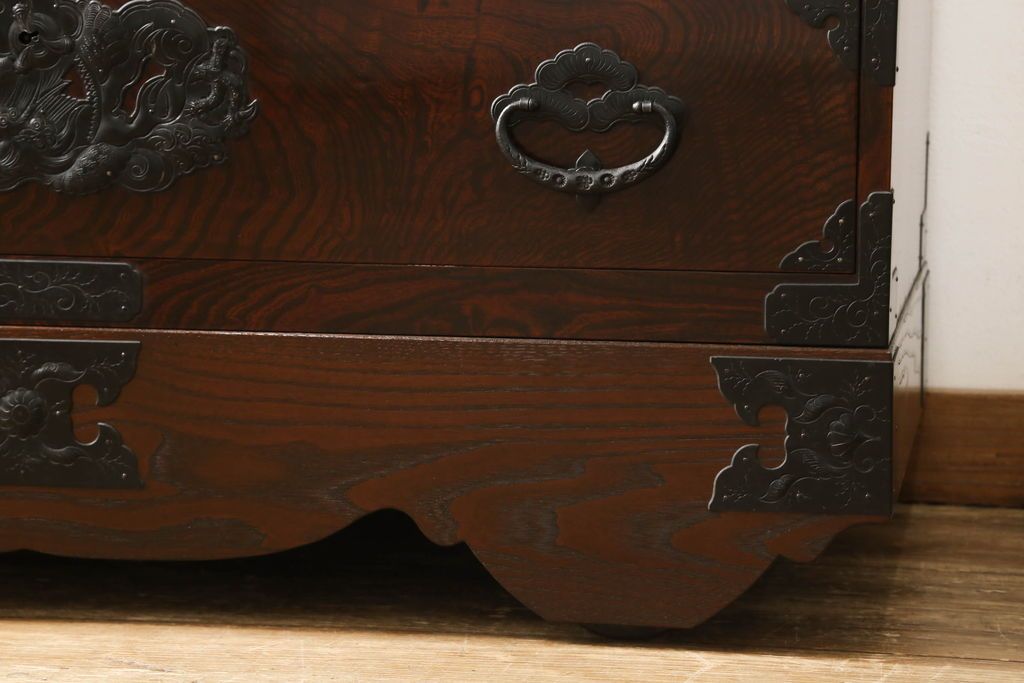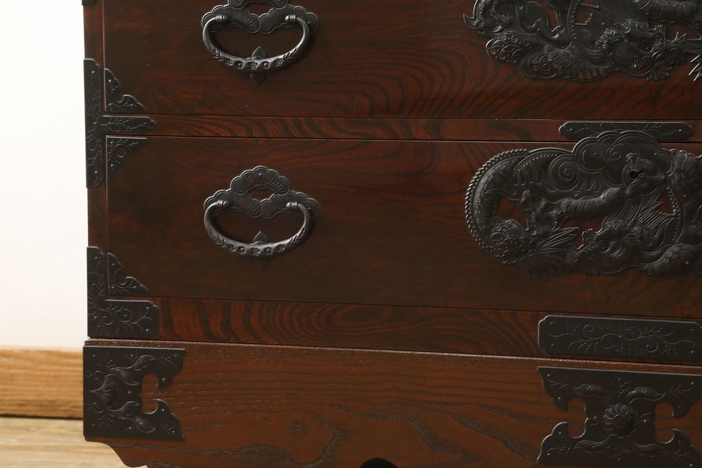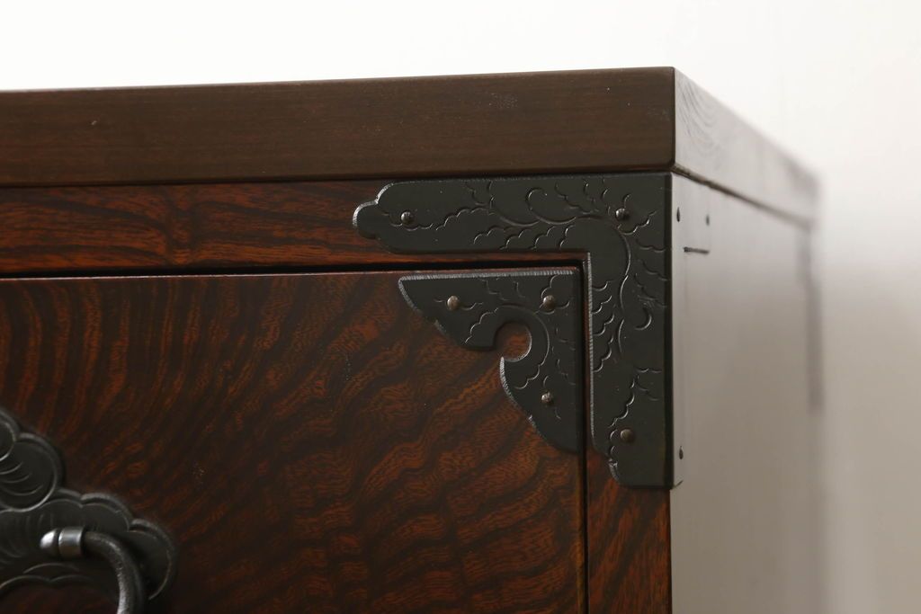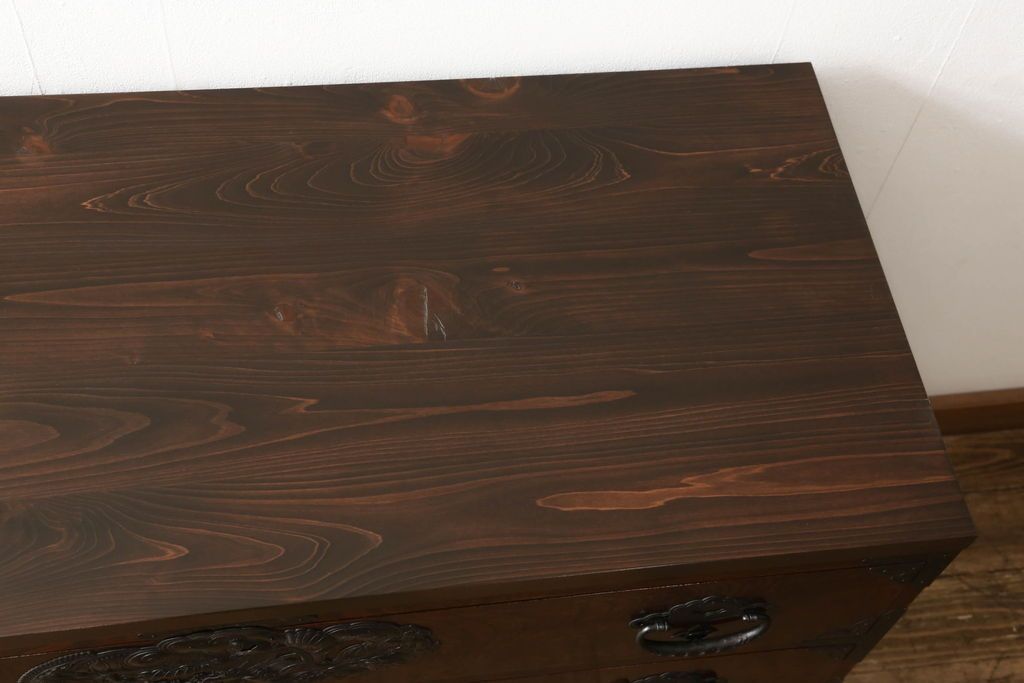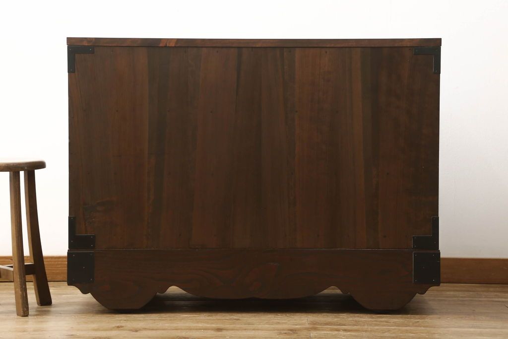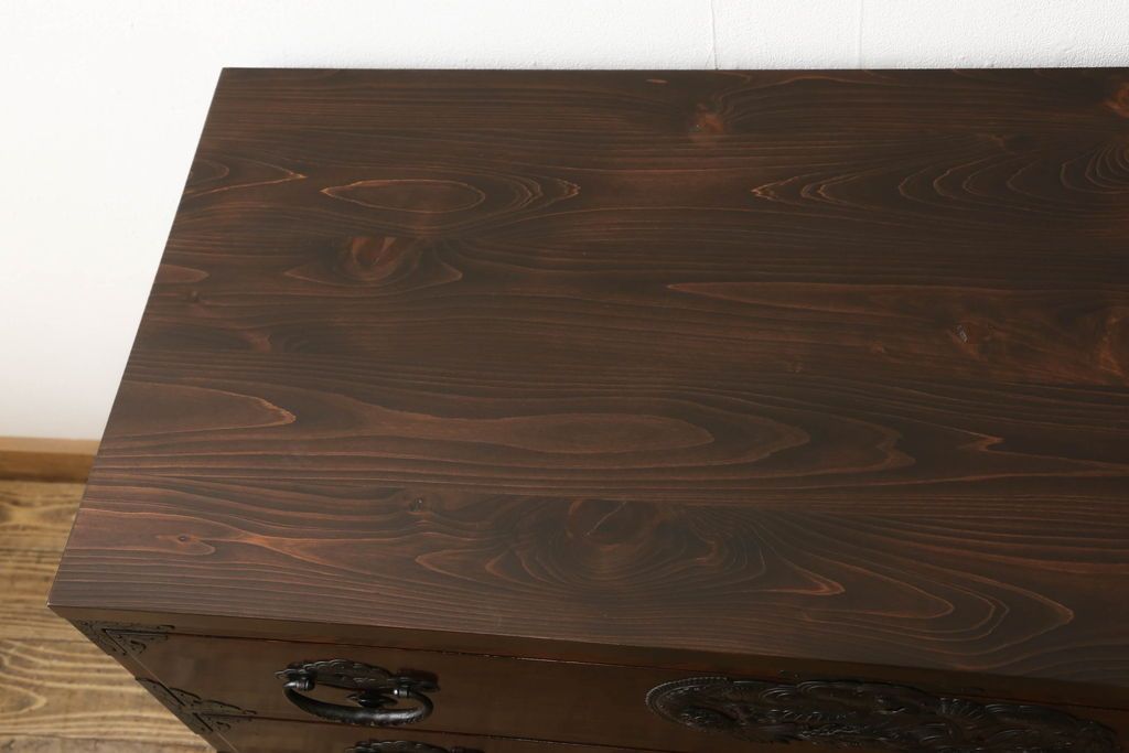 和箪笥> 衣装箪笥 > 和製ビンテージの仙台箪笥ローチェストをリペア&カスタム!天板を新たに取り付け、下部は台車を取り付け。本体の色味に合わせて着色仕上げ。(衣装箪笥、和箪笥、引き出し、車箪笥、ヴィンテージ)