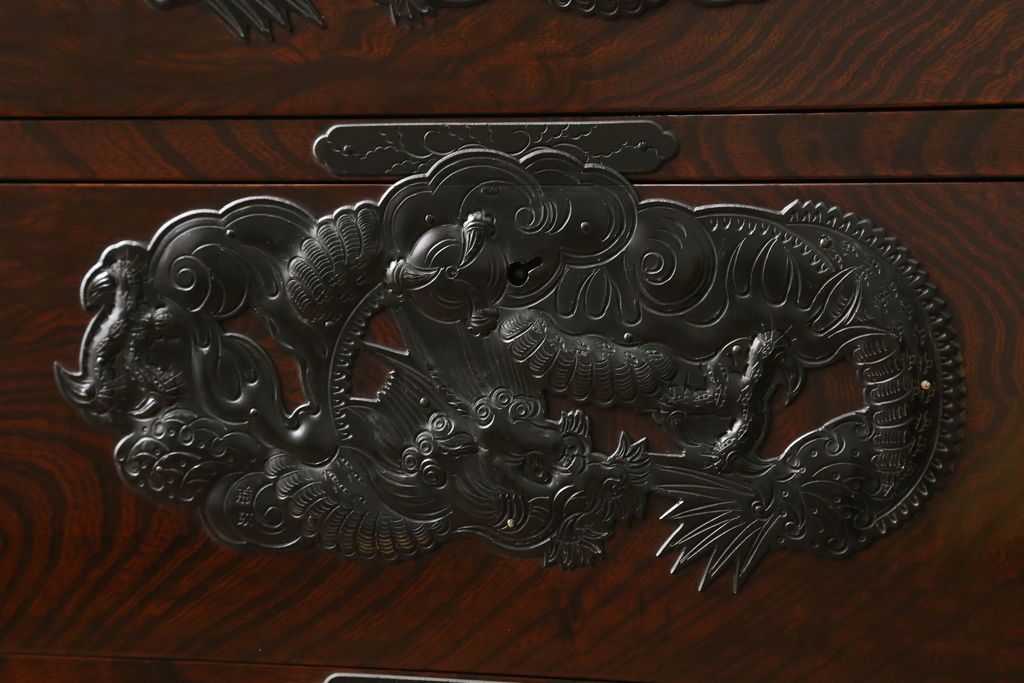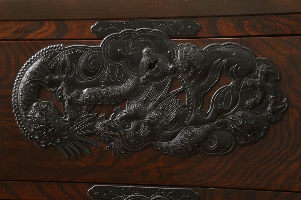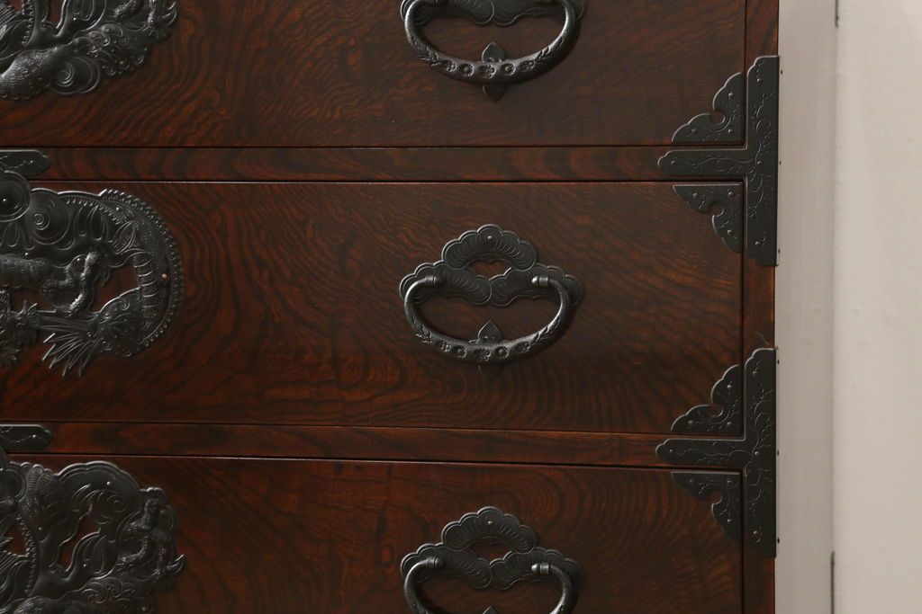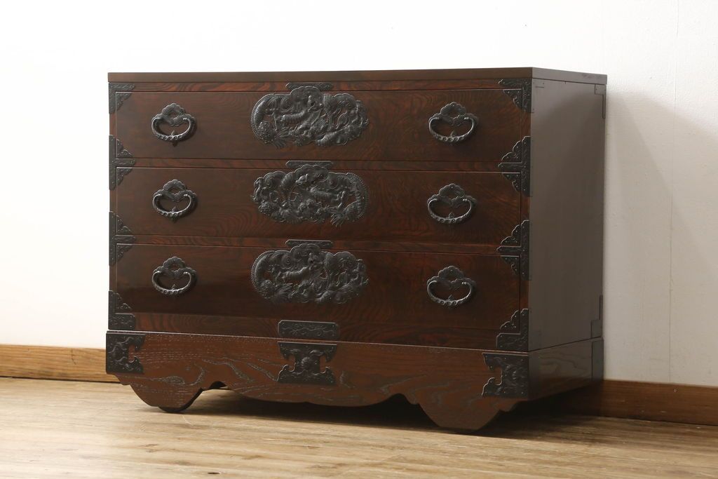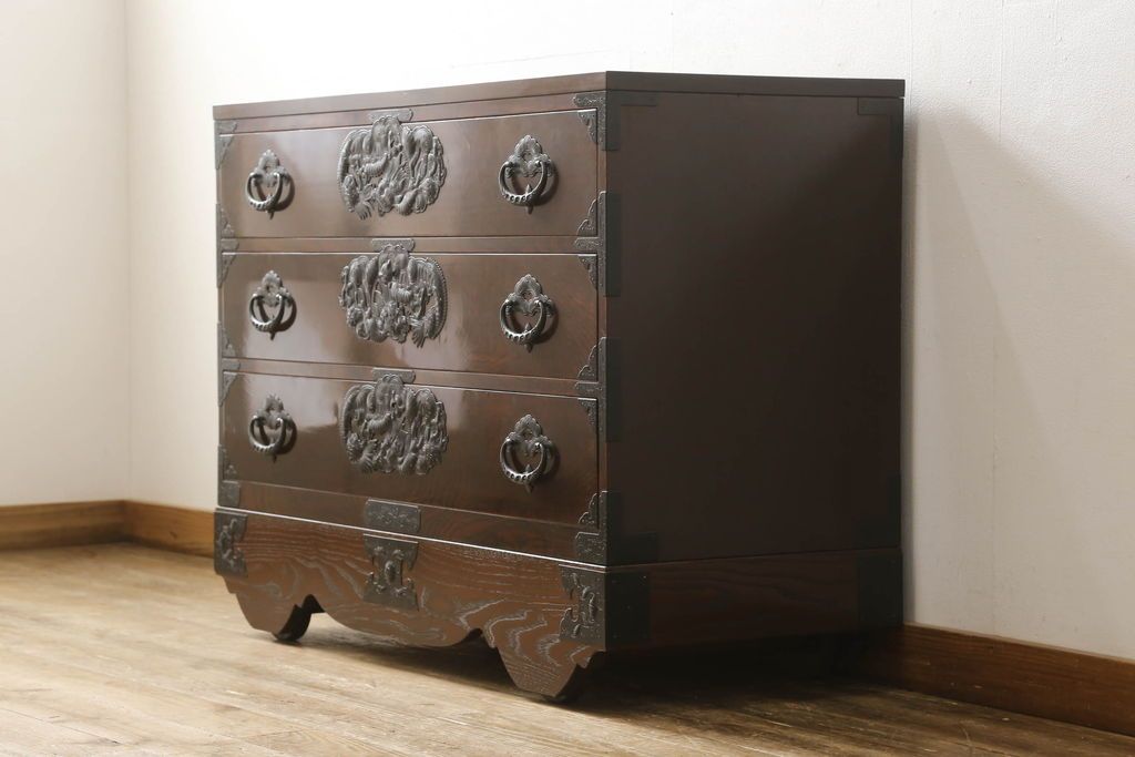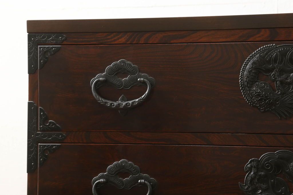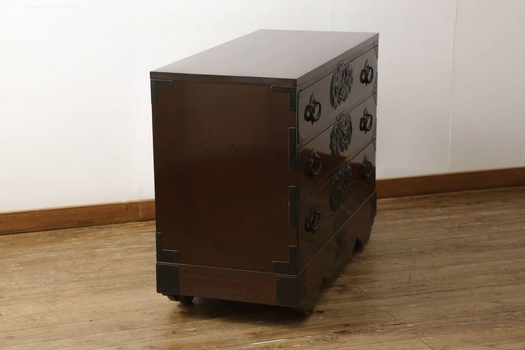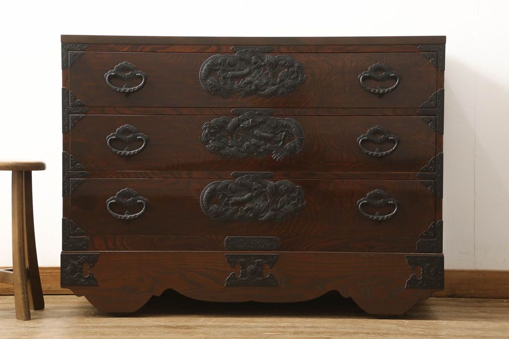 和箪笥> 衣装箪笥 > 和製ビンテージの仙台箪笥ローチェストをリペア&カスタム!天板を新たに取り付け、下部は台車を取り付け。本体の色味に合わせて着色仕上げ。(衣装箪笥、和箪笥、引き出し、車箪笥、ヴィンテージ)