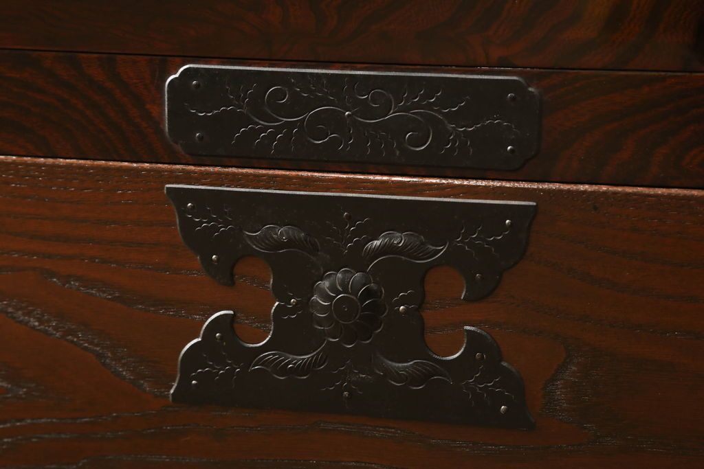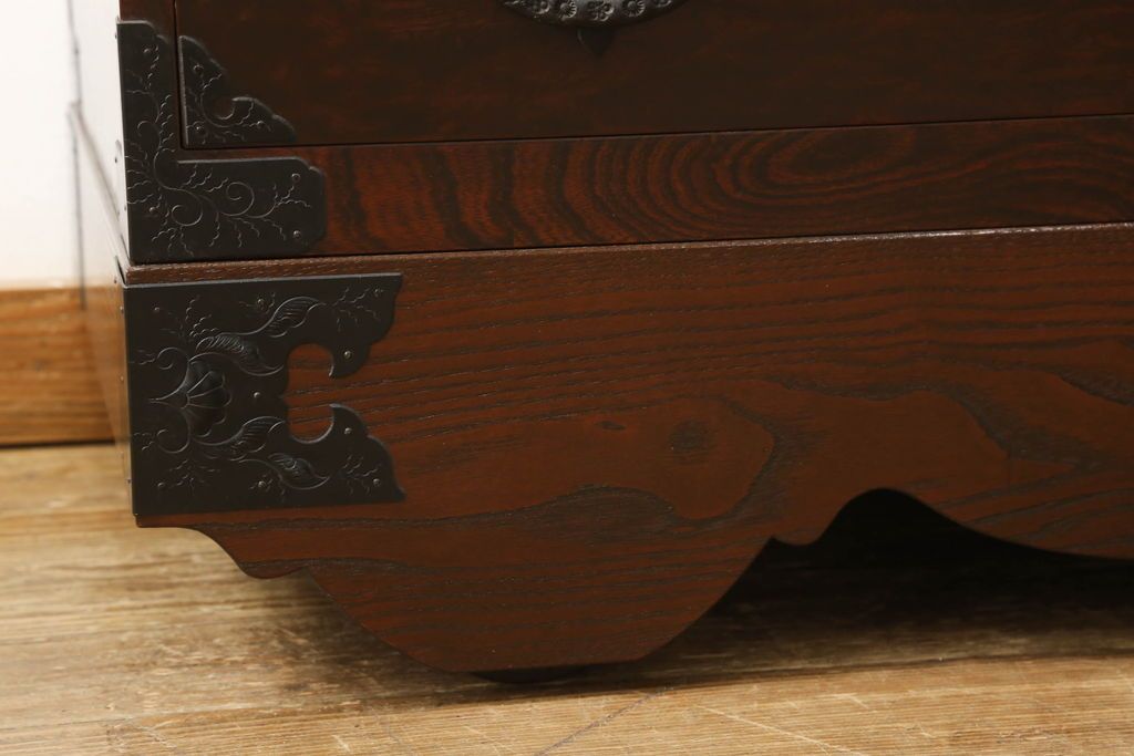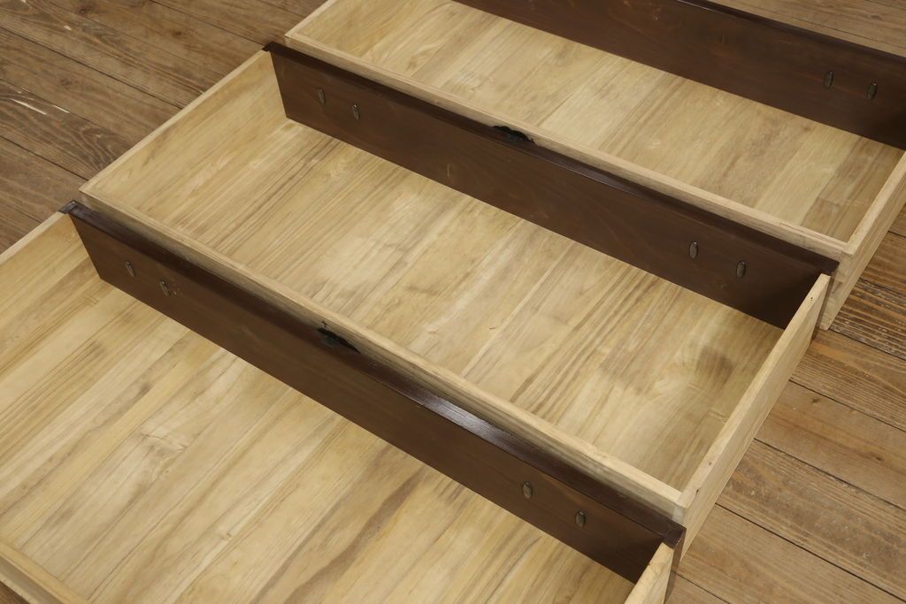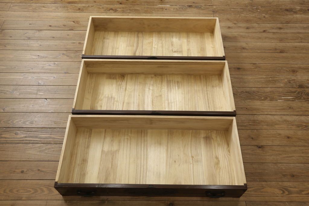 和箪笥 > 和製ビンテージの仙台箪笥ローチェストをリペア&カスタム!天板を新たに取り付け、下部は台車を取り付け。本体の色味に合わせて着色仕上げ。(衣装箪笥、和箪笥、引き出し、車箪笥、ヴィンテージ)
