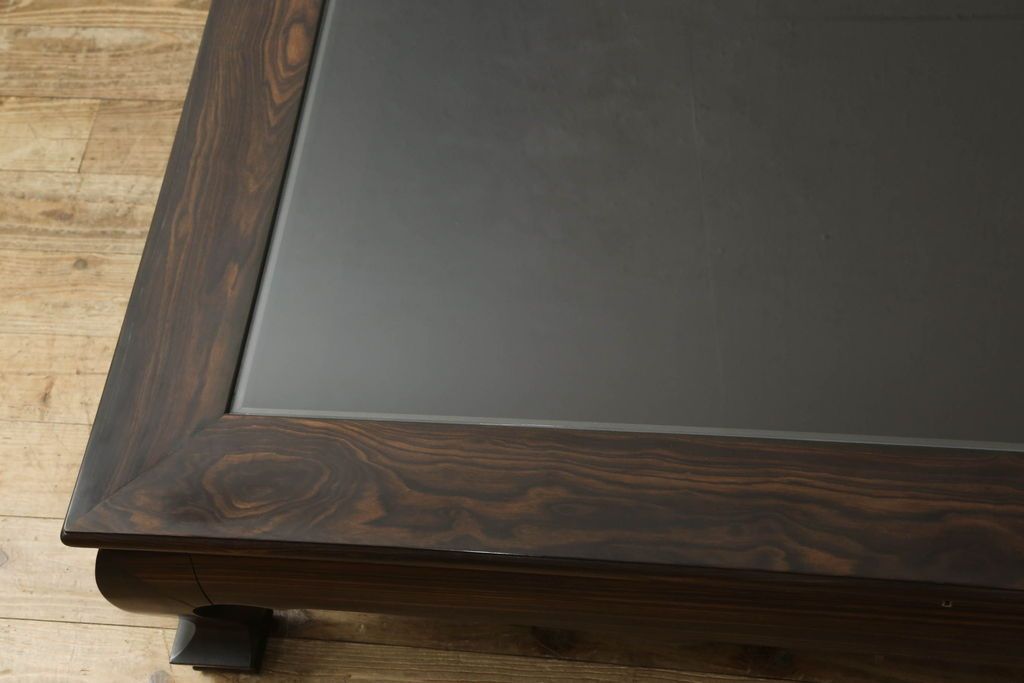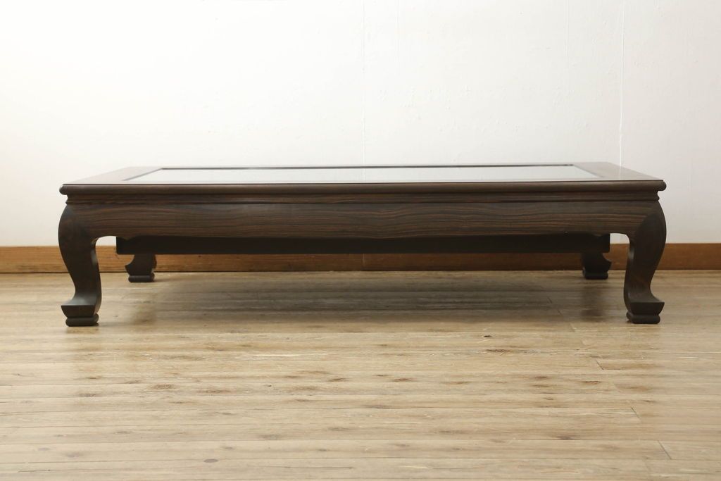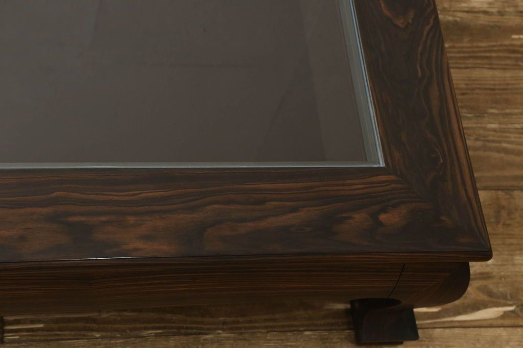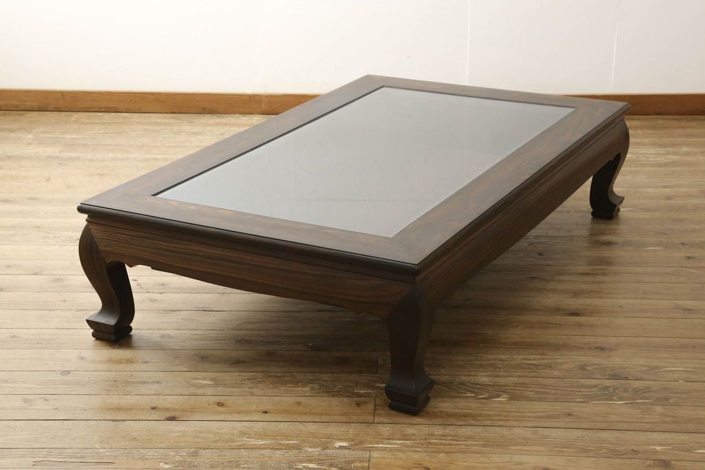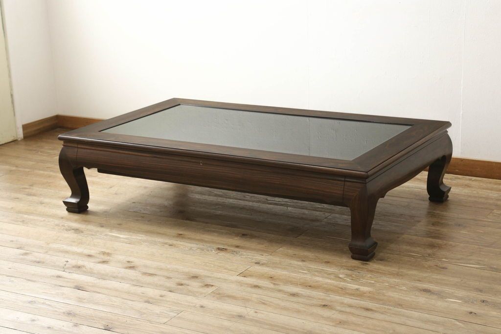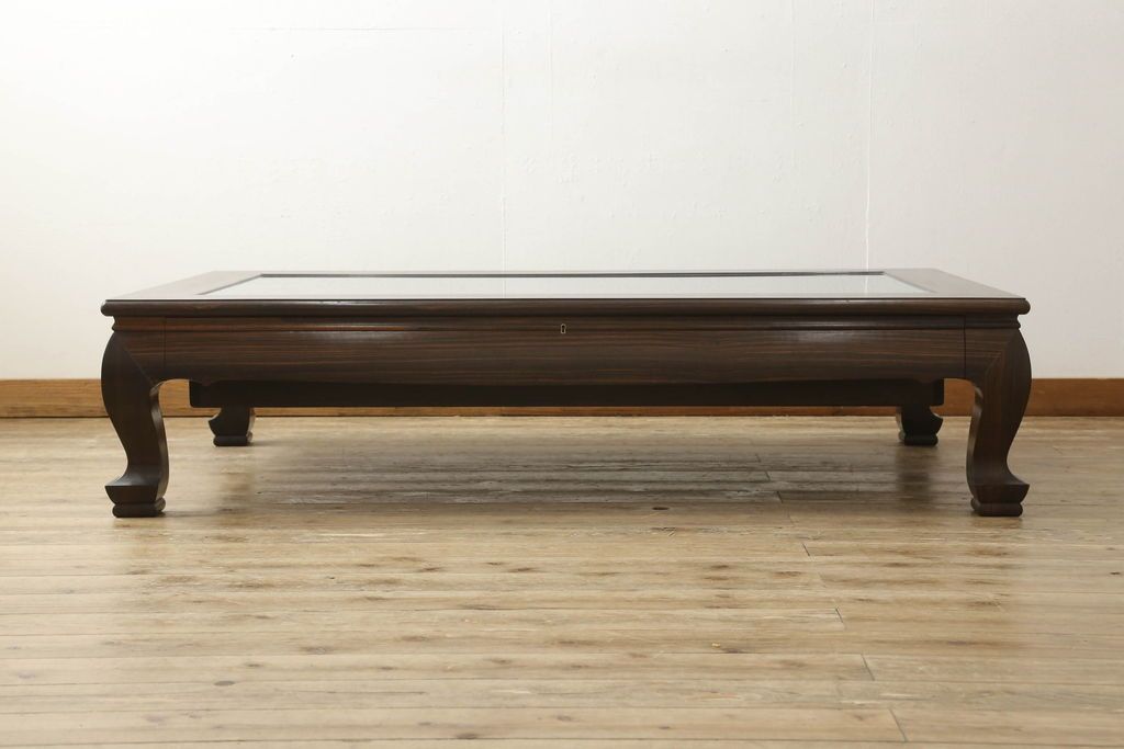 ラフジュ工房> テーブル> 座卓 > ビンテージの座卓をリペア&カスタム!天板をくり抜きガラス天板をはめ込み。ショーケース付き座卓にリメイク。ディスプレイスペースは鍵付きの引き出し仕様に加工。(ローテーブル、センターテーブル、ヴィンテージ)