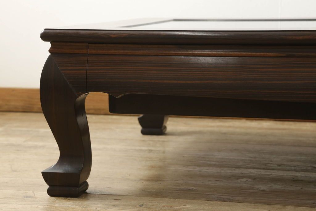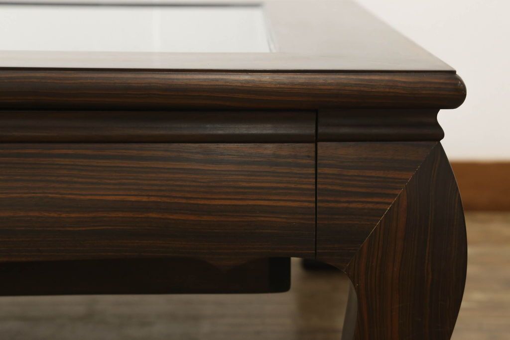 ビンテージの座卓をリペア&カスタム!天板をくり抜きガラス天板をはめ込み。ショーケース付き座卓にリメイク。ディスプレイスペースは鍵付きの引き出し仕様に加工。(ローテーブル、センターテーブル、ヴィンテージ)
