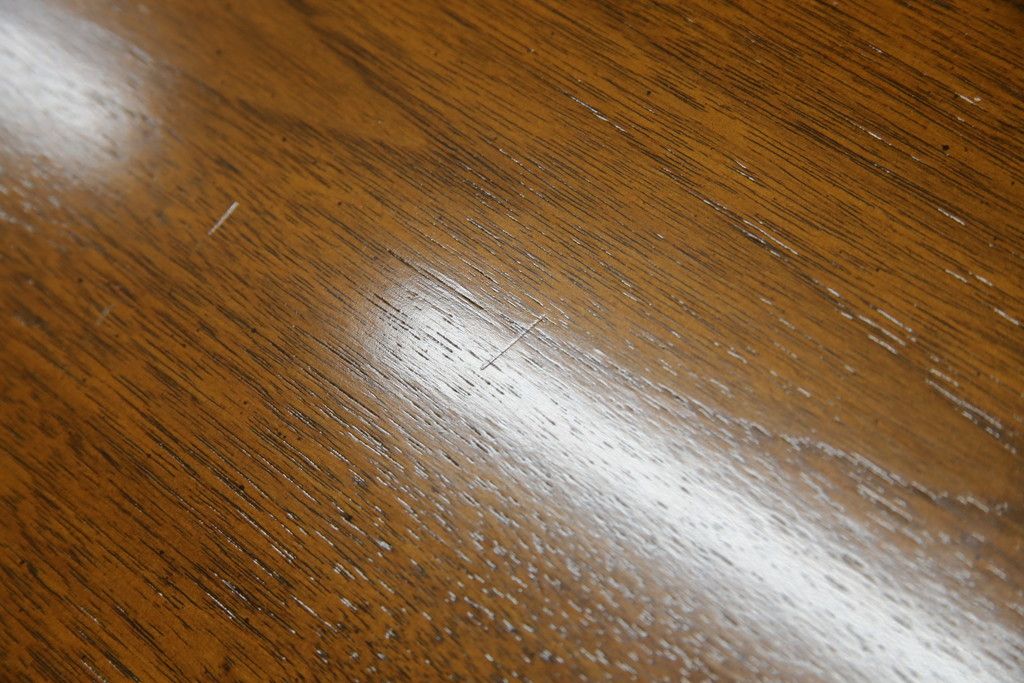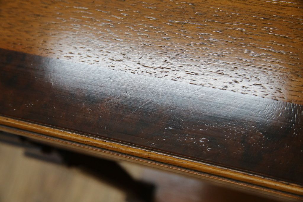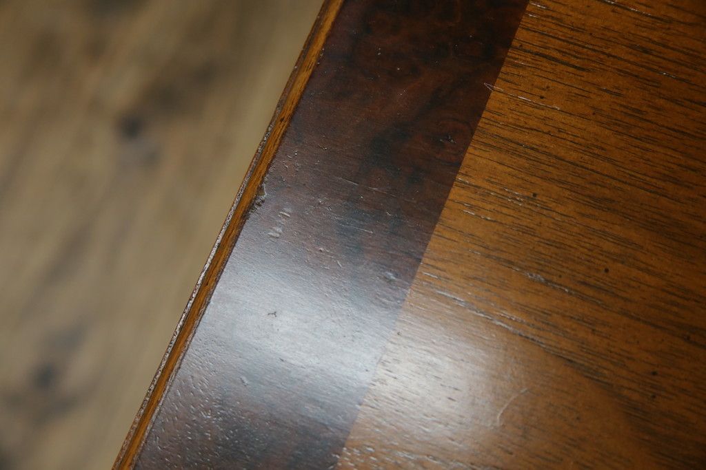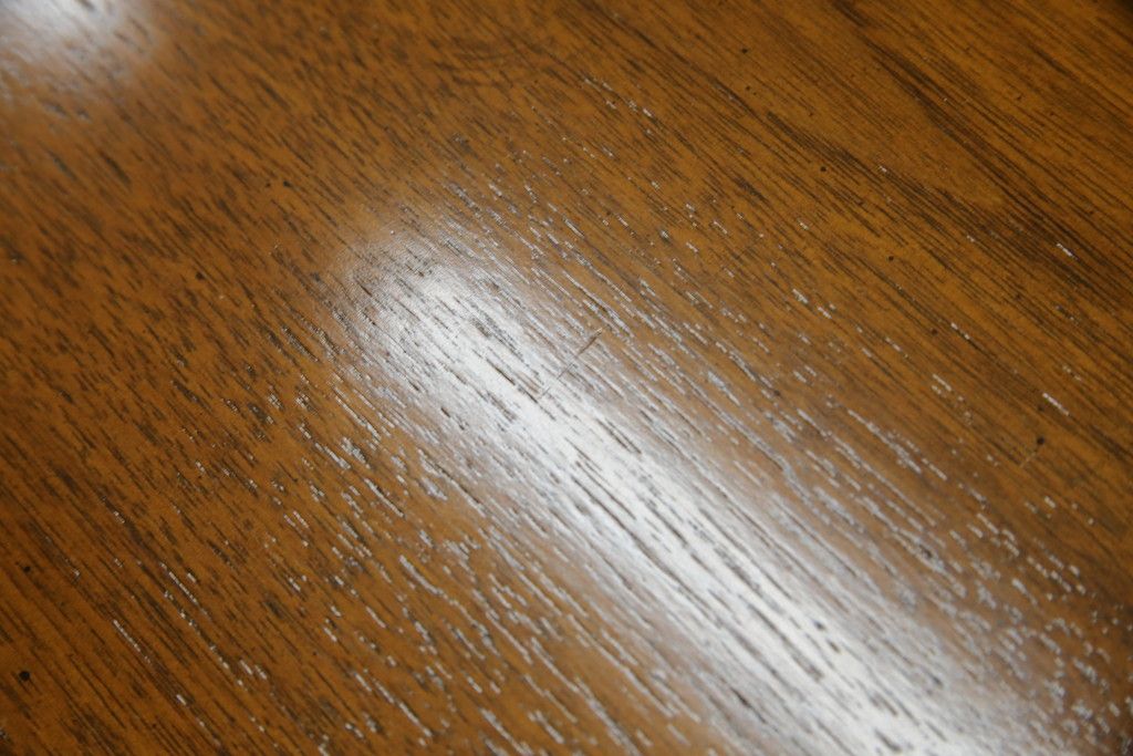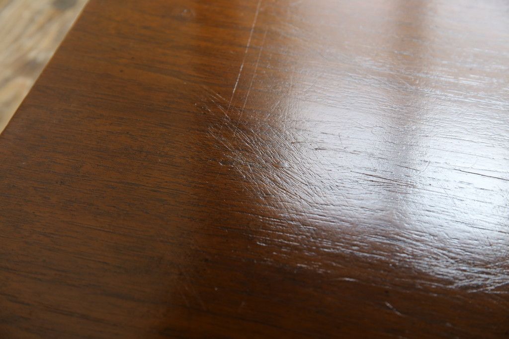 天板は当店でクリア塗装を施しております。小キズ等が目立ちにくく、耐水性と耐久性に優れたお手入れがしやすい仕上げです。