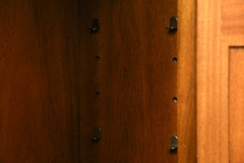 ・棚板は2枚あります。棚受けは6ヶ所、50mmピッチで調整できます。