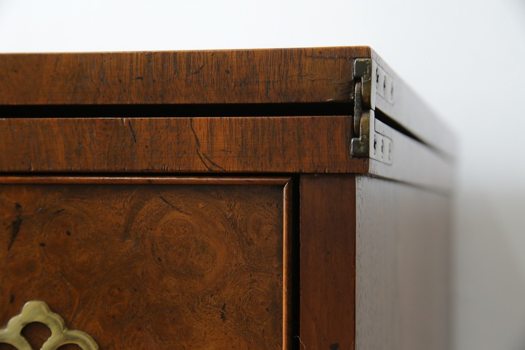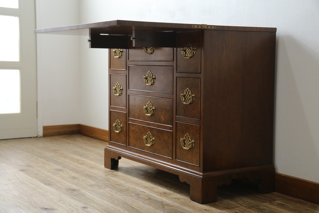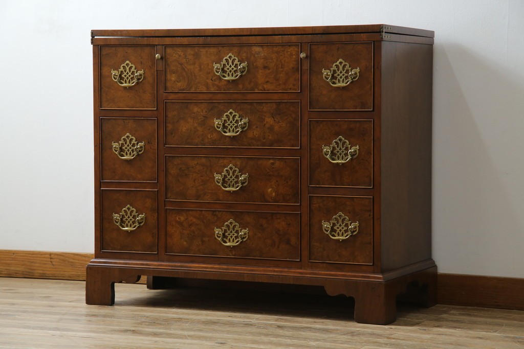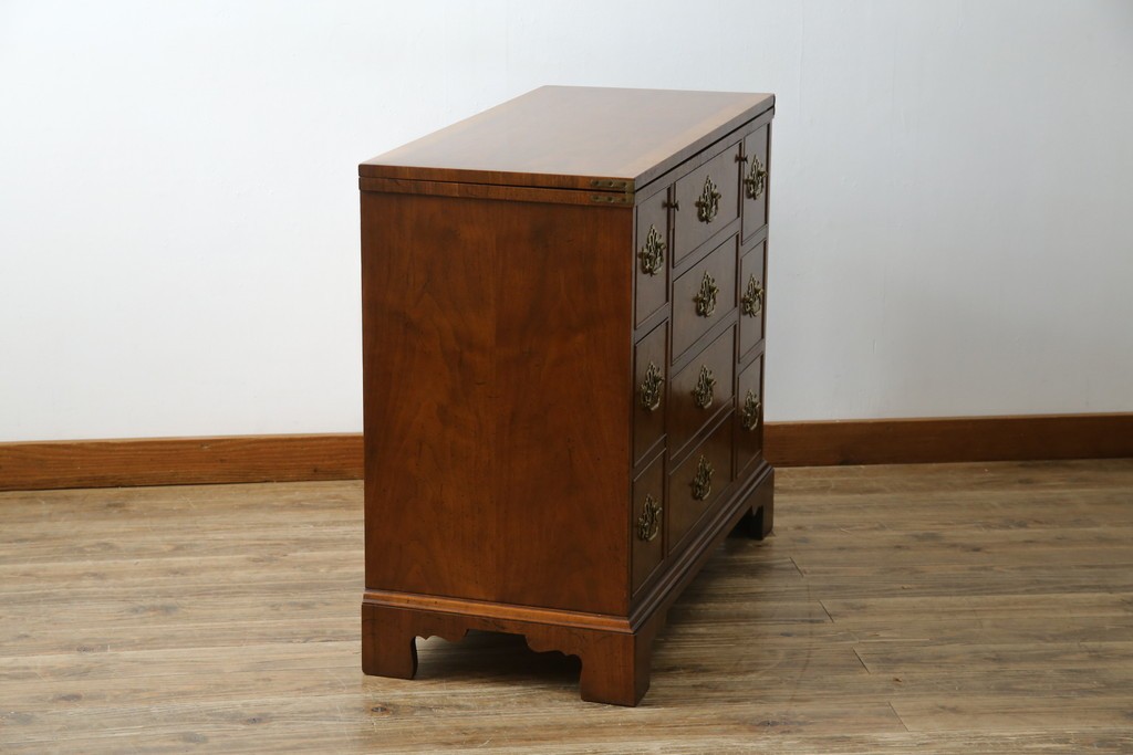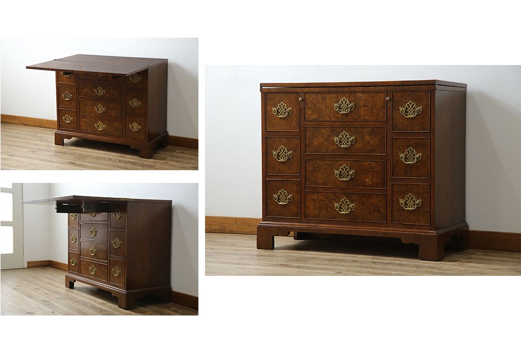 イギリスヴィンテージ 高級品 激レア 拡張式天板付き マホガニー材 バーズアイが印象的なチェスト (R-061958)