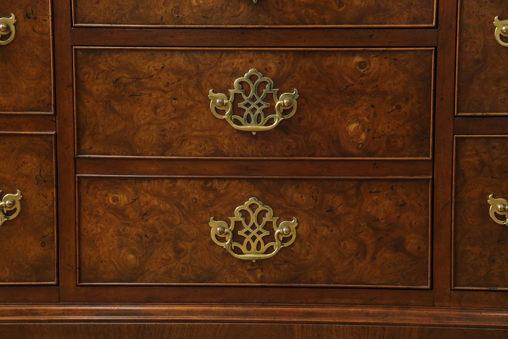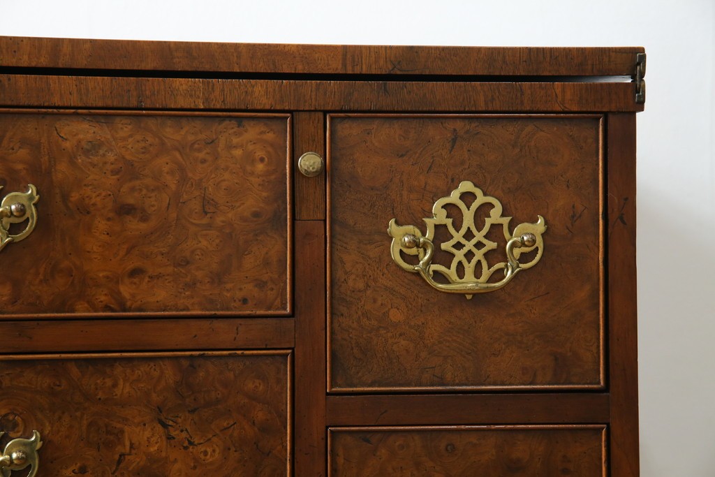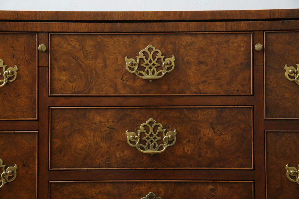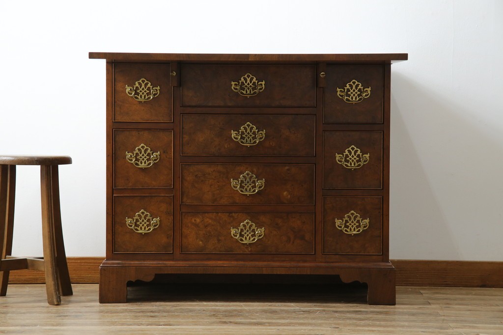 バーズアイ(鳥眼杢)と呼ばれる希少性の高い杢目が引き出し前面に使われている高級品です。