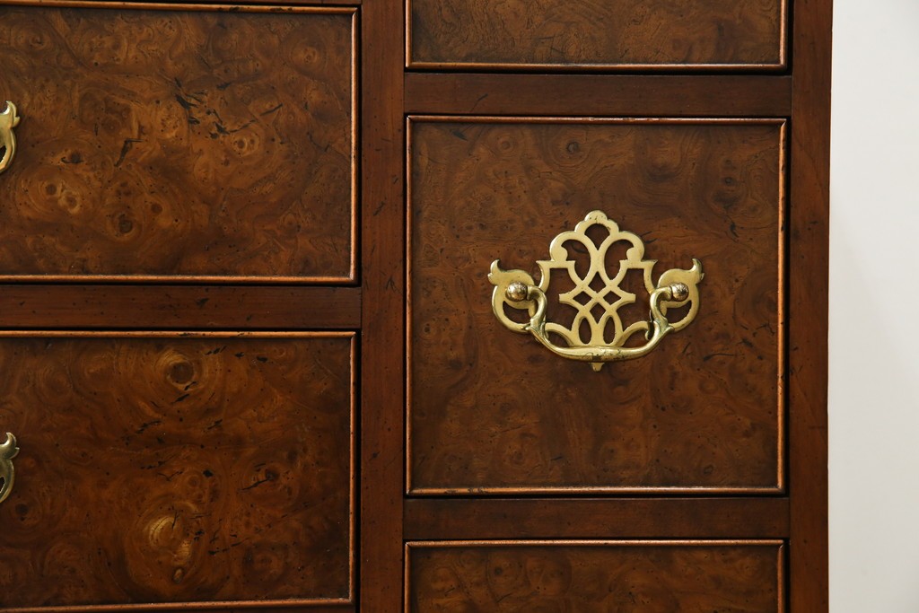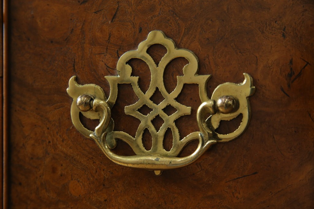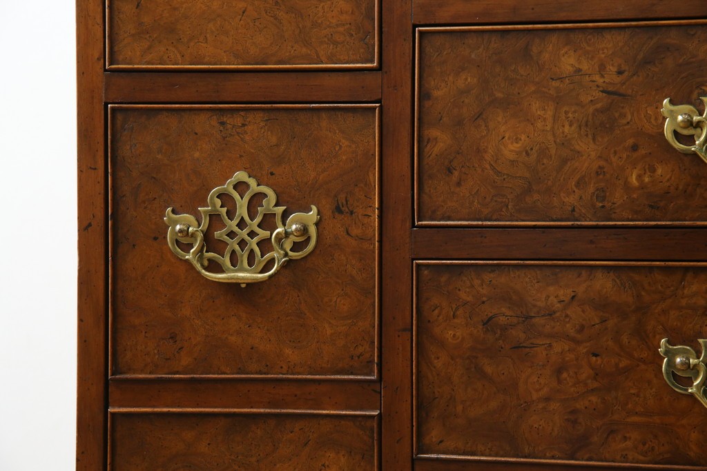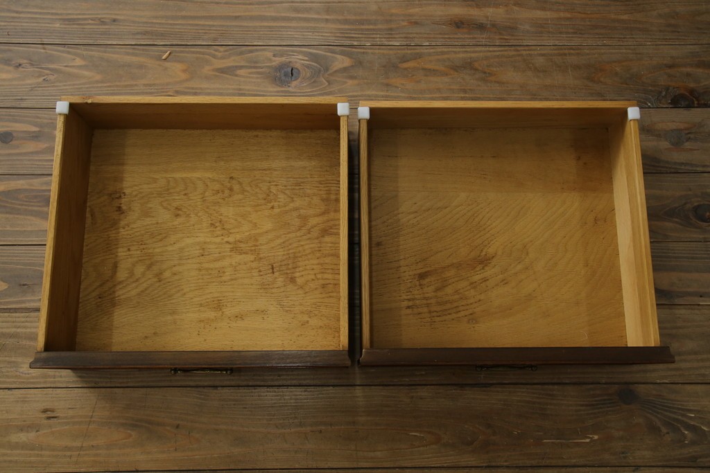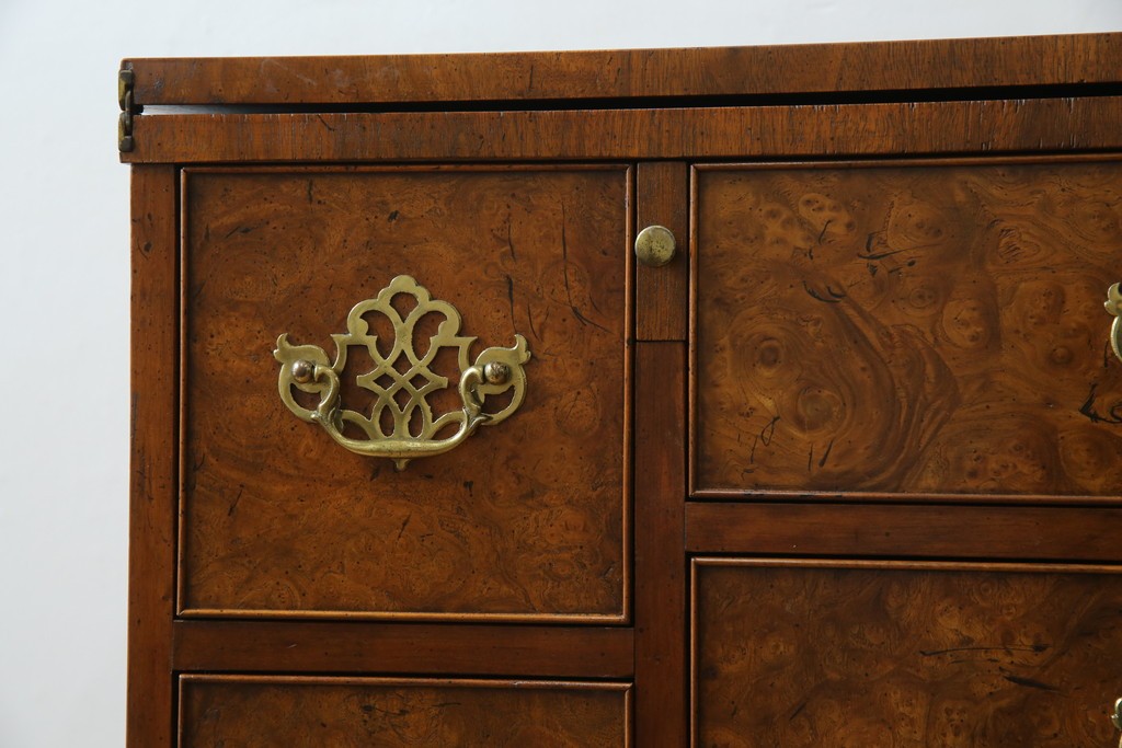 バーズアイ(鳥眼杢)と呼ばれる希少性の高い杢目が引き出し前面に使われている高級品です。
