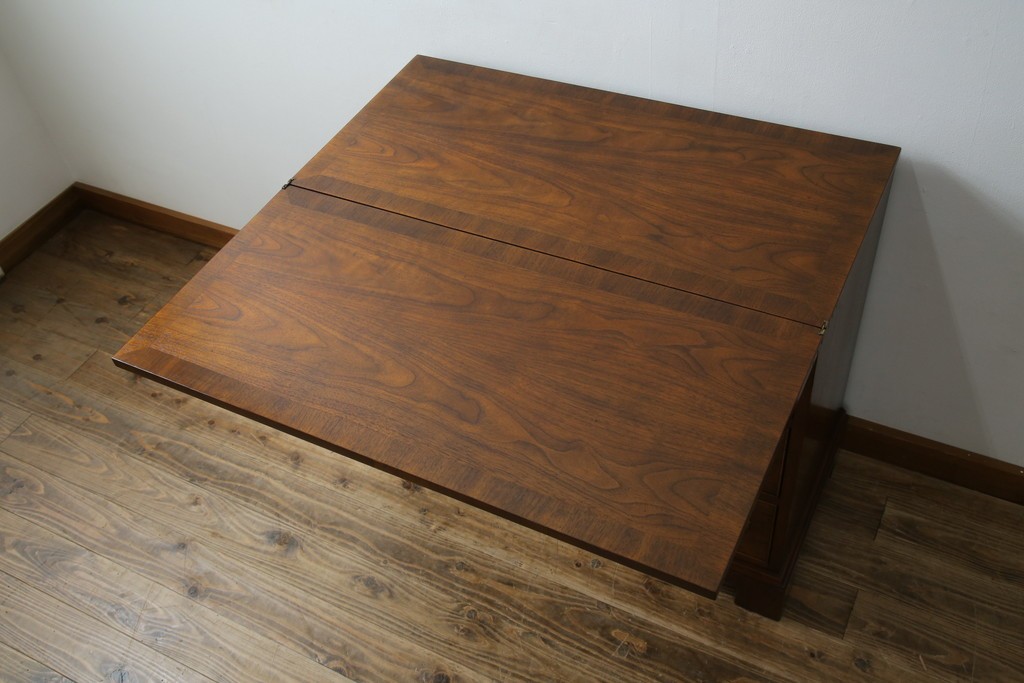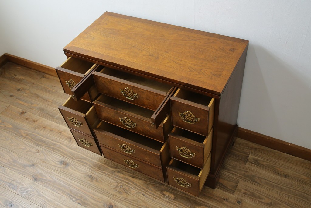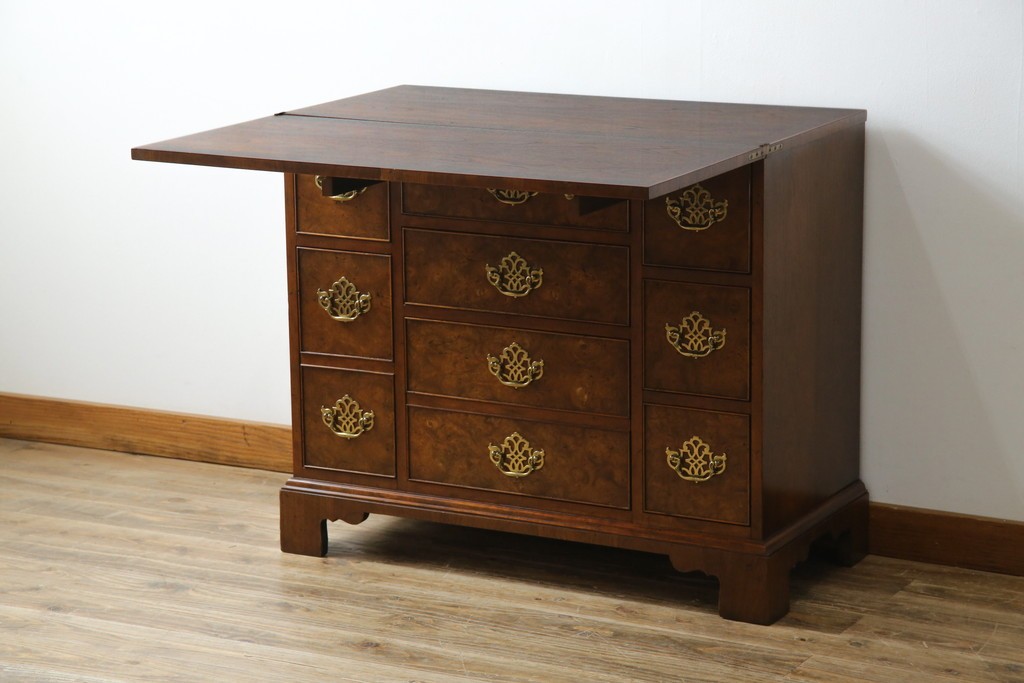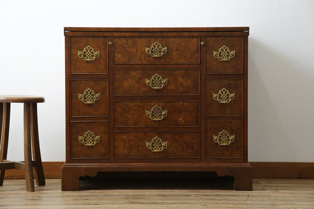 チェスト・引き出し > イギリスヴィンテージ 高級品 激レア 拡張式天板付き マホガニー材 バーズアイが印象的なチェスト (R-061958)