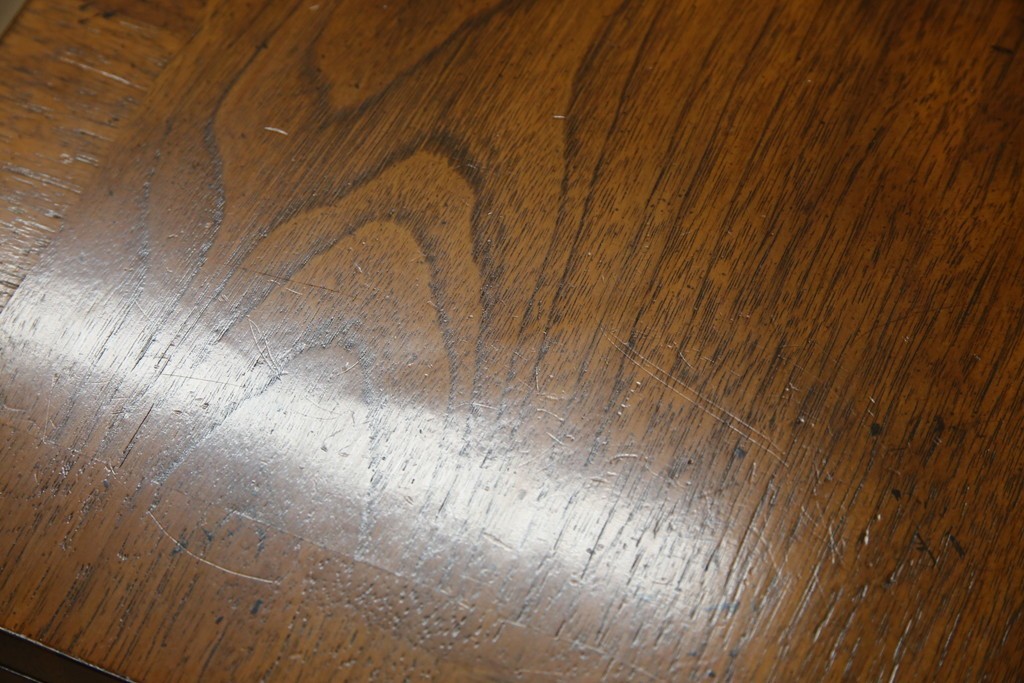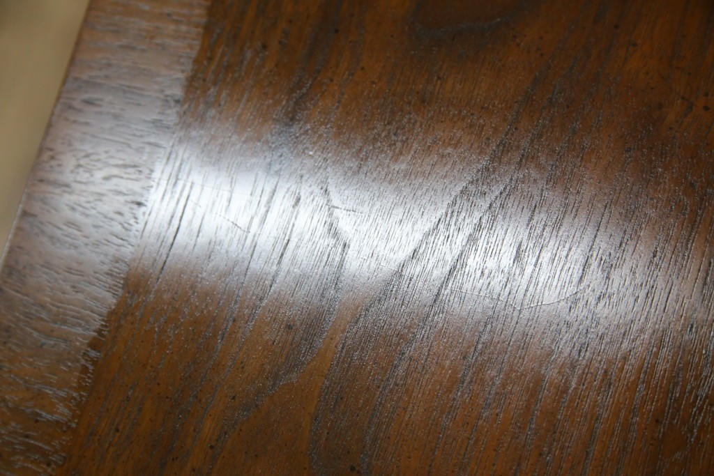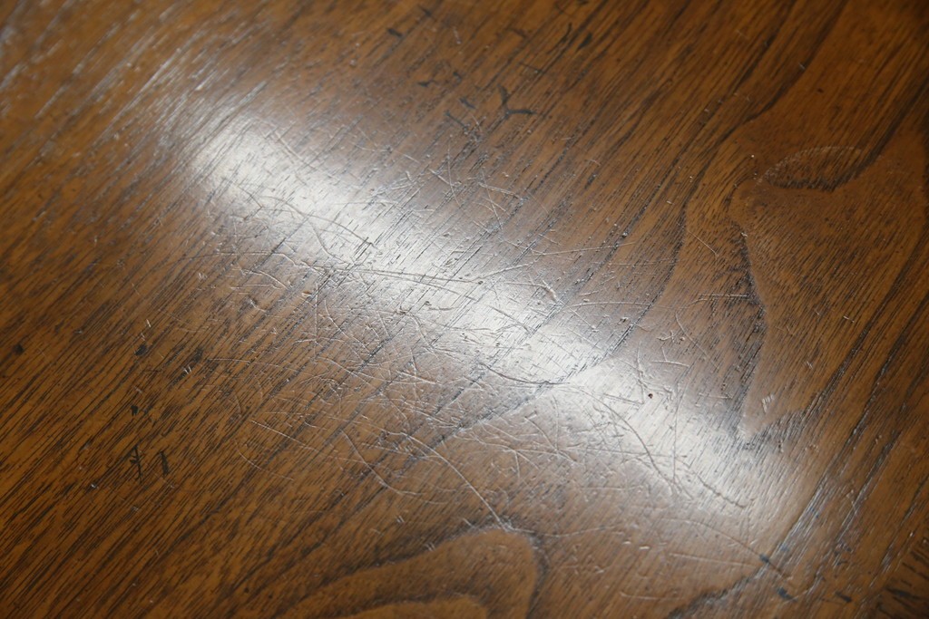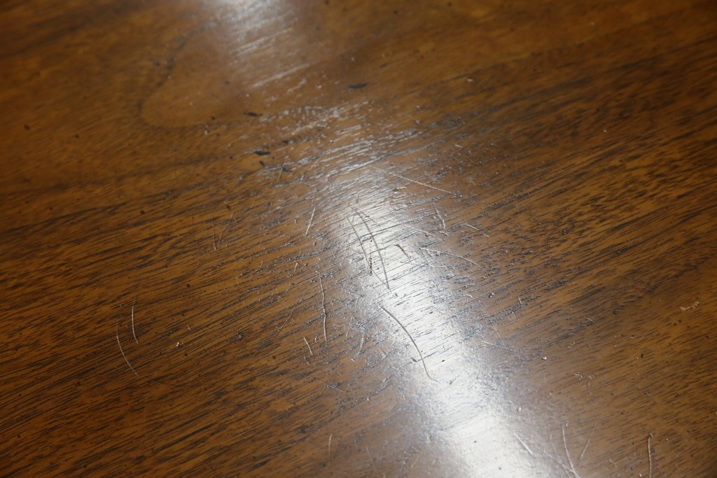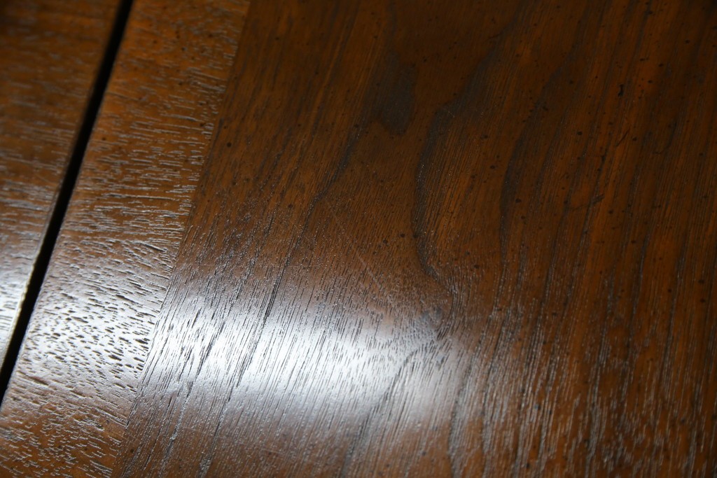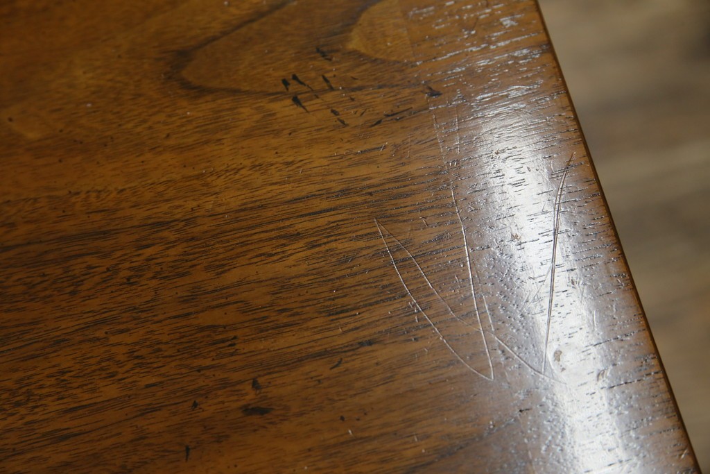 ・天板は当店でクリア塗装を施しております。小キズ等が目立ちにくく、耐水性と耐久性に優れたお手入れがしやすい仕上げです。