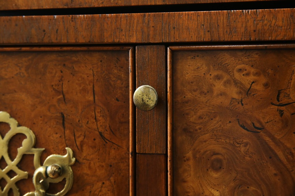クラシカルな意匠の引手金具や美しいマホガニー材の質感が、上質でエレガントな雰囲気を醸し出していますね。