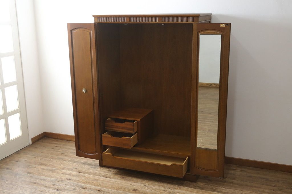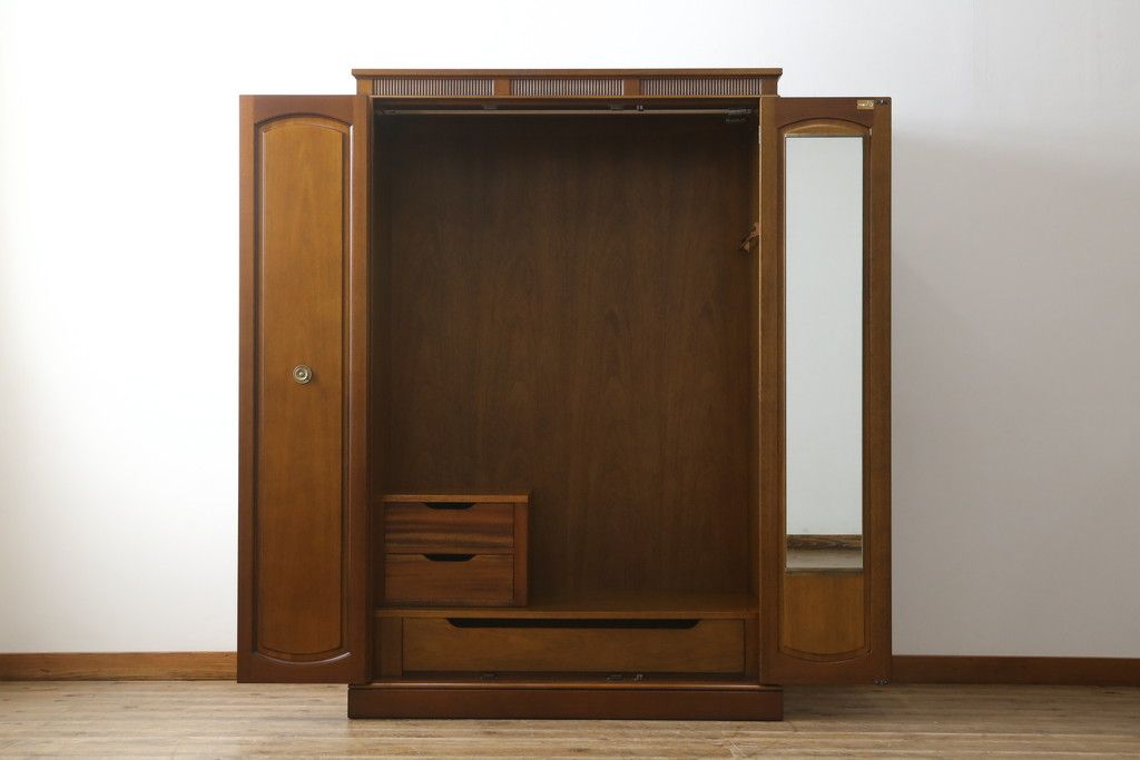 ワードローブ・ロッカー> ワードローブ > 中古 DREXEL HERITAGE(ドレクセルヘリテイジ) Triune(トライユン)シリーズ マホガニー材の木肌が美しいワードローブ(キャビネット、収納棚、戸棚、洋服タンス)(定価約90万円)(R-062005)