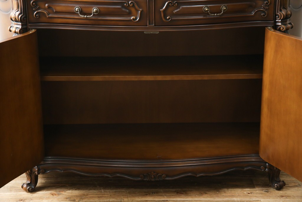 キャビネット・戸棚> サイドキャビネット > 中古 カリモク家具(karimoku) domani(ドマーニ) Louis(ルイ)XVシリーズ 隅々まで施された装飾が美しいサイドボード(戸棚、収納棚、サイドキャビネット)(R-062069)
