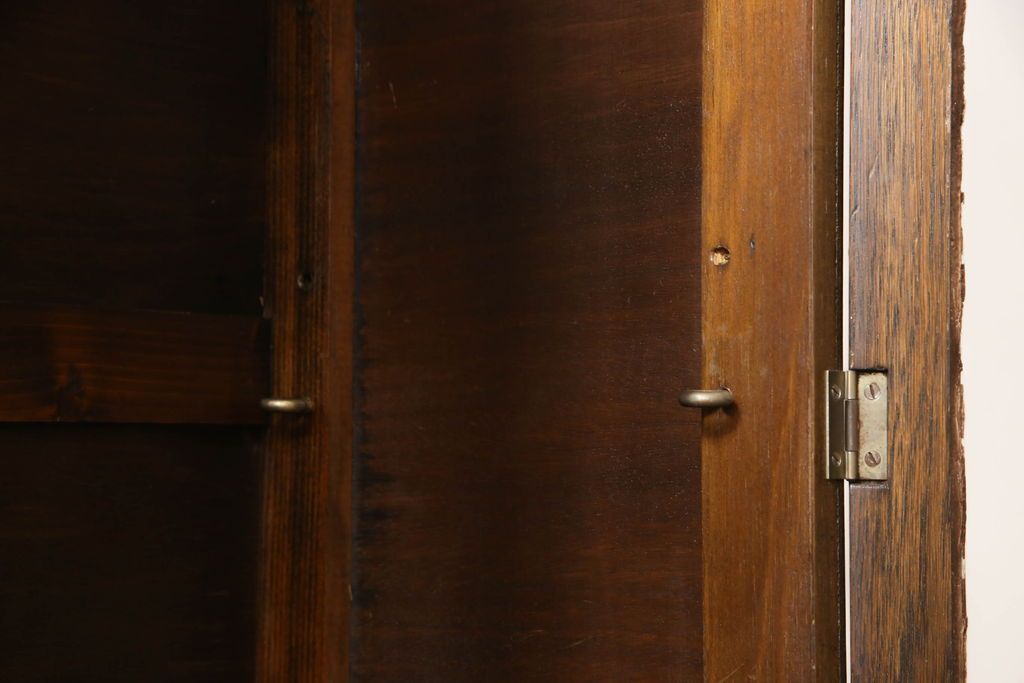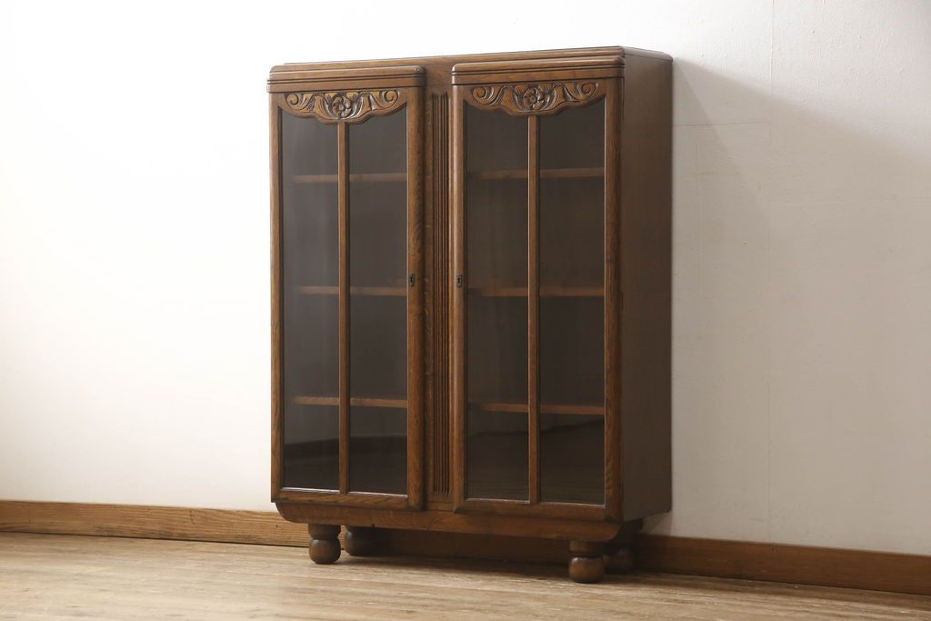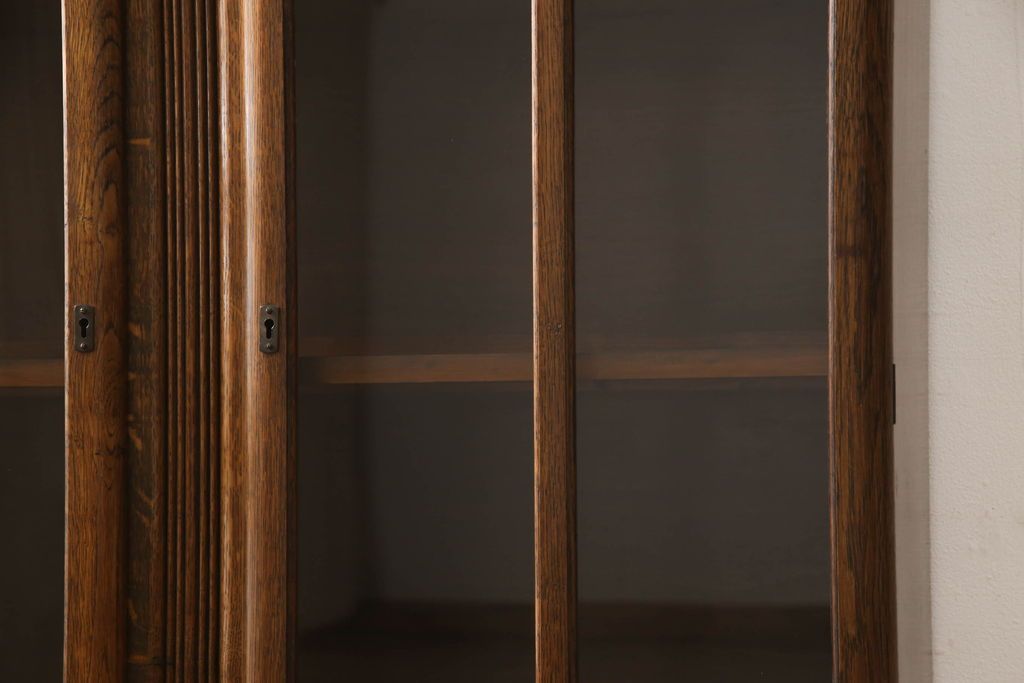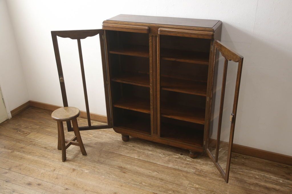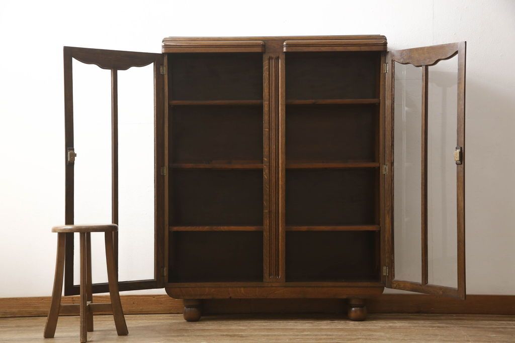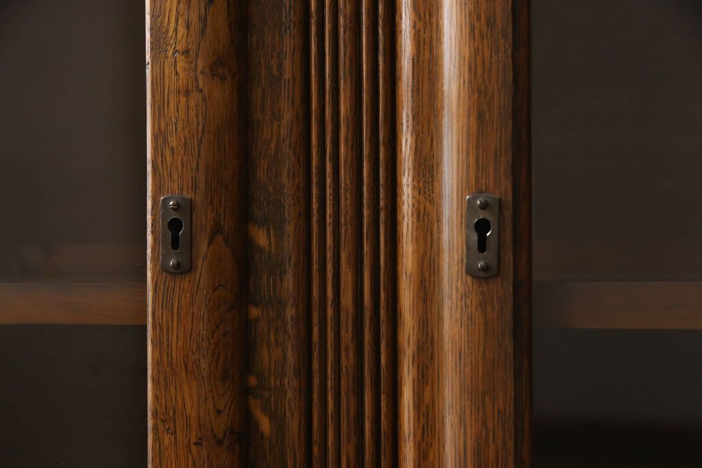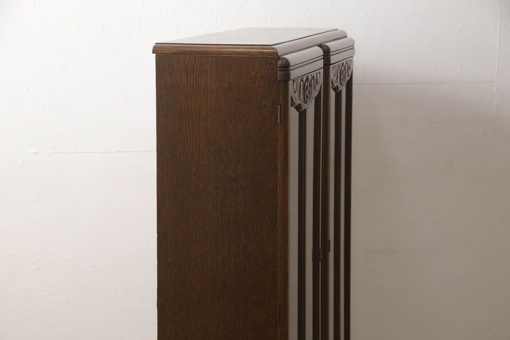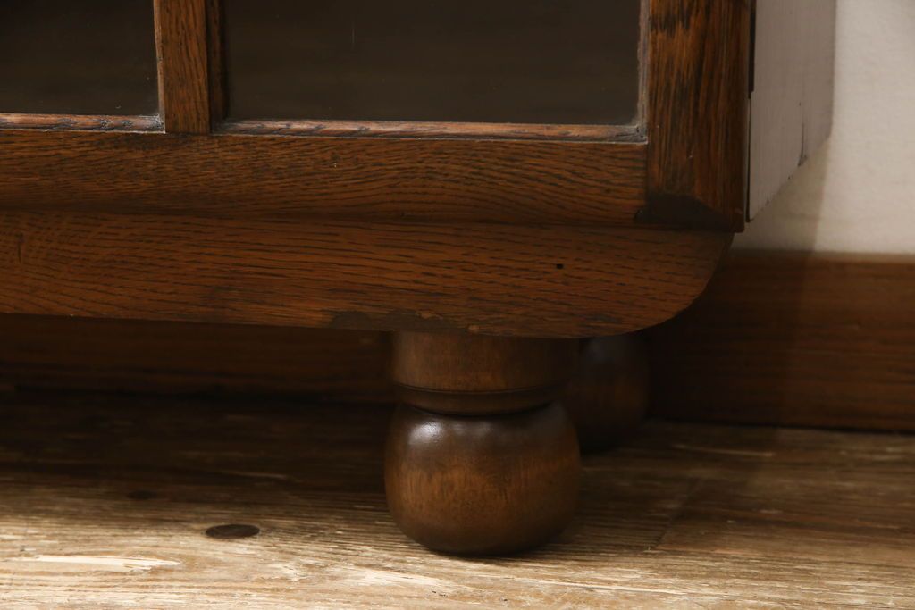 キャビネット・戸棚> サイドキャビネット > イギリスアンティークの薄型ブックケースをリペア&カスタム!既存の脚を外し、木製丸脚を製作し取付け。現状の色味を活かして仕上げ。(本箱、戸棚、収納棚、飾り棚、キャビネット)