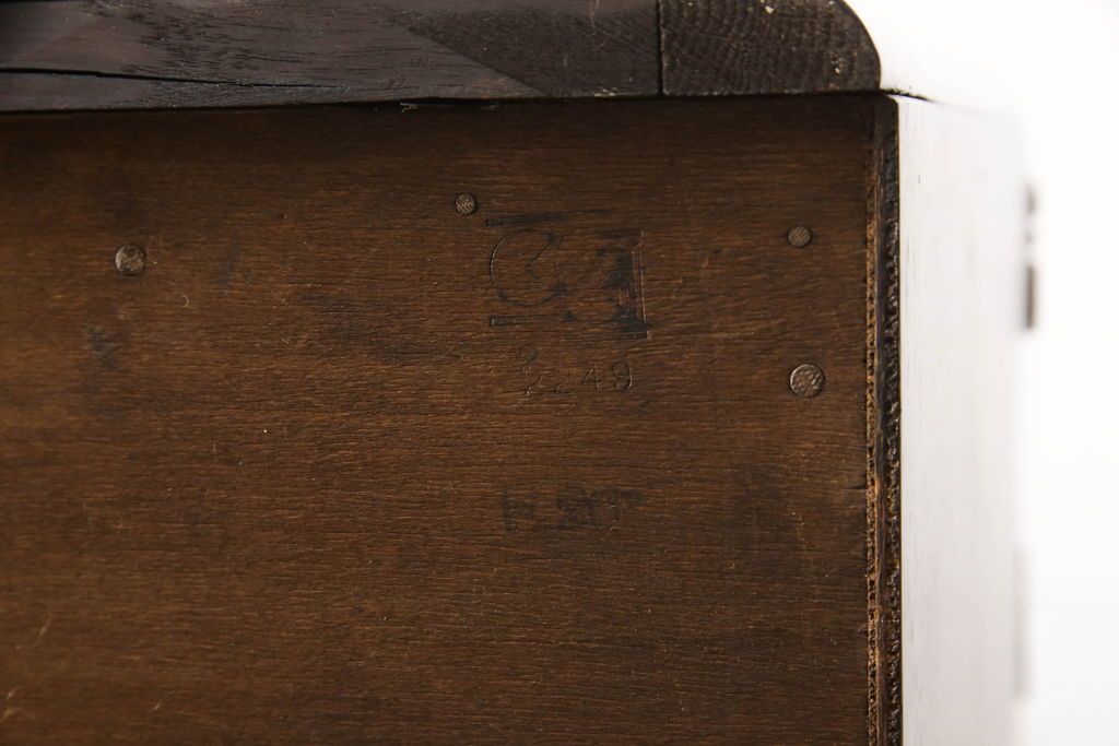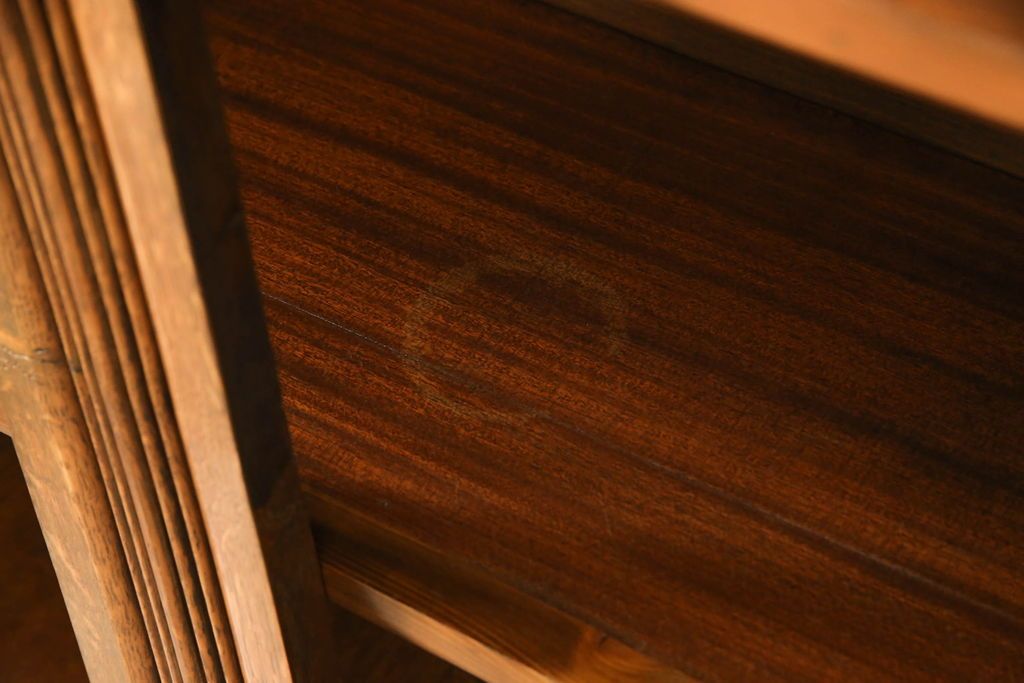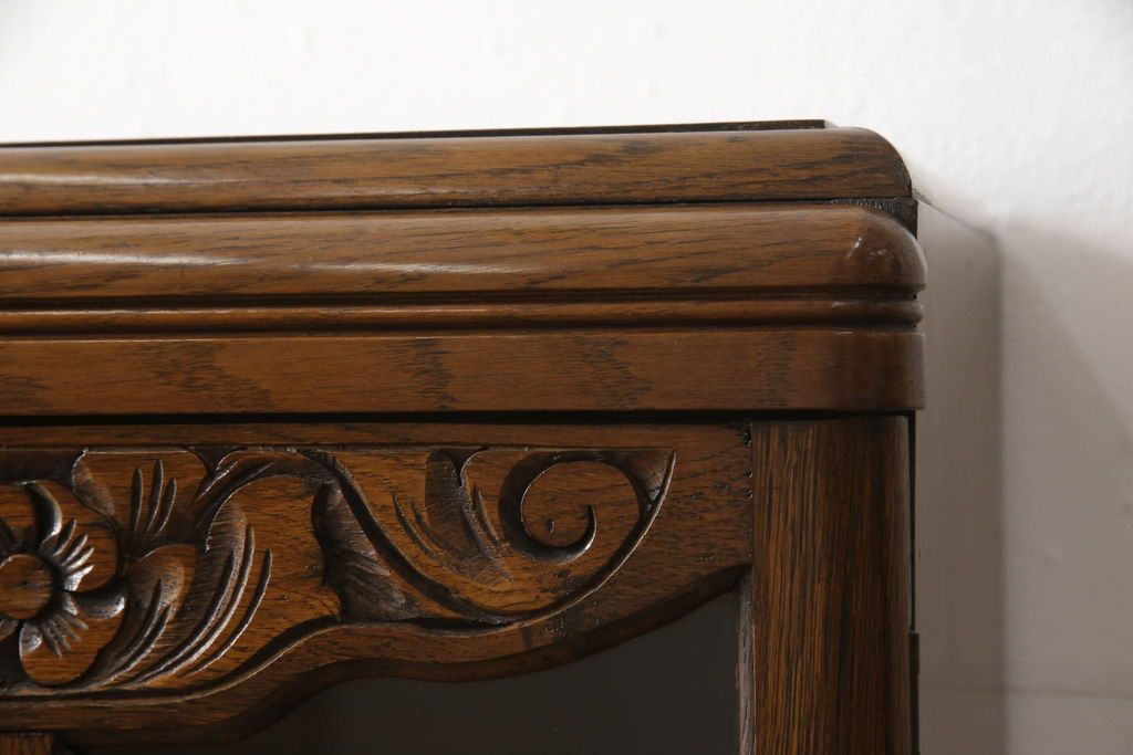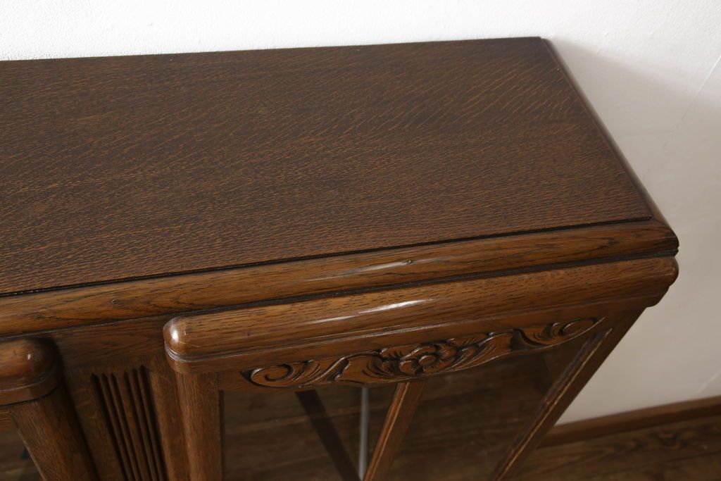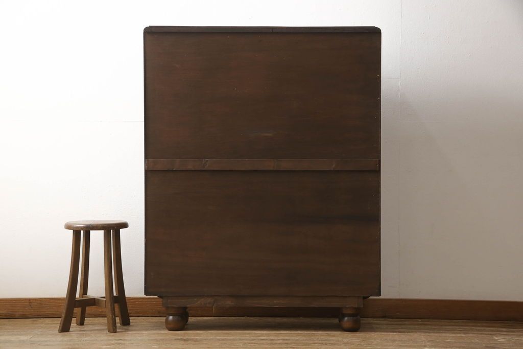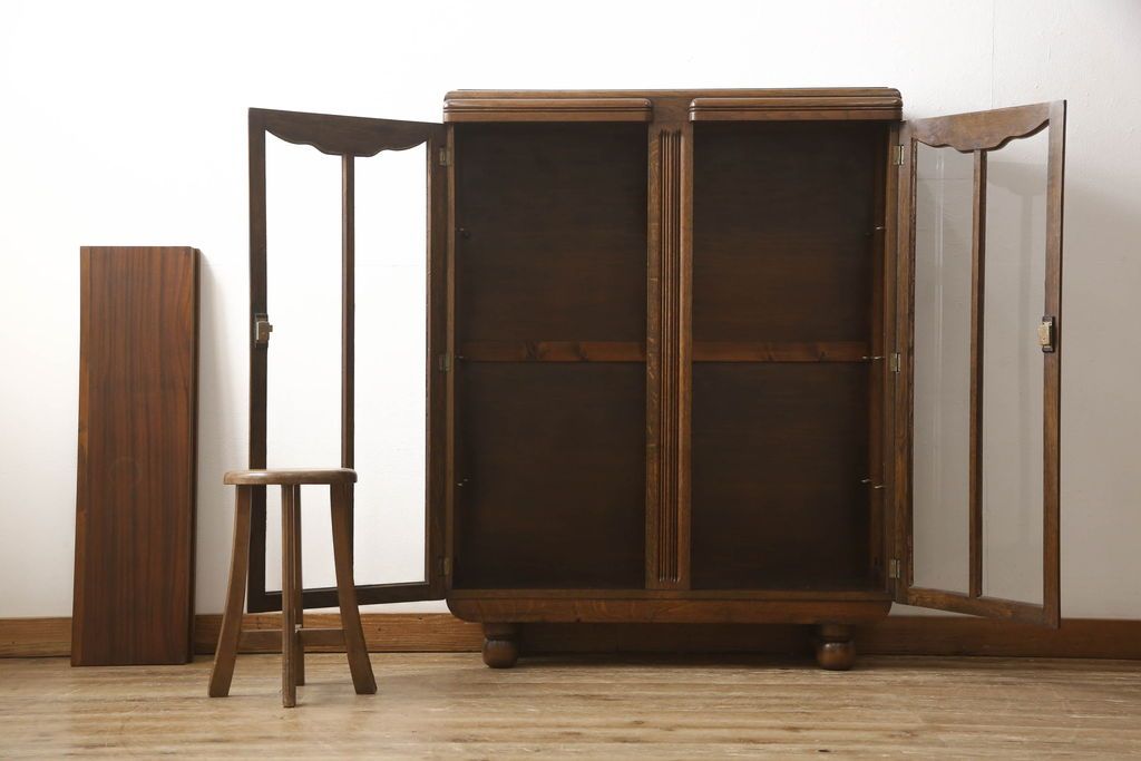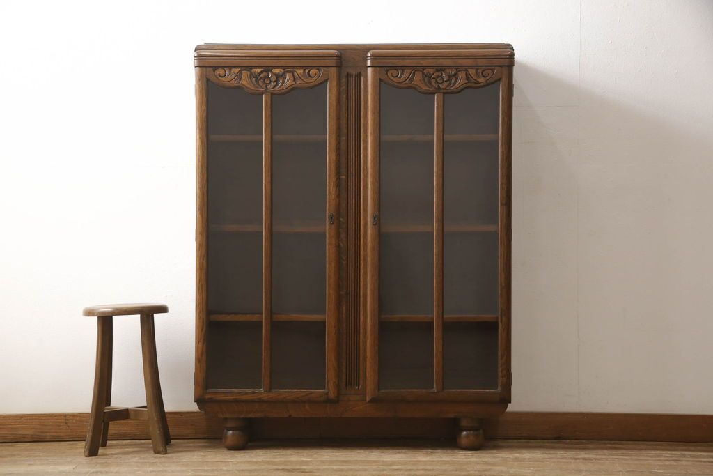 セミオーダー家具実績 > イギリスアンティークの薄型ブックケースをリペア&カスタム!既存の脚を外し、木製丸脚を製作し取付け。現状の色味を活かして仕上げ。(本箱、戸棚、収納棚、飾り棚、キャビネット)