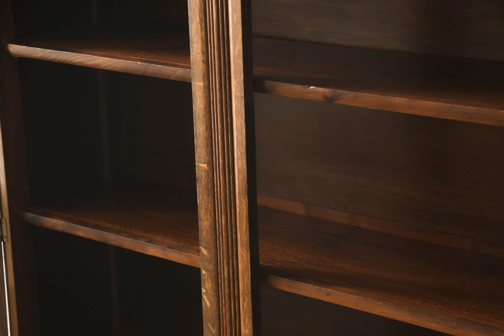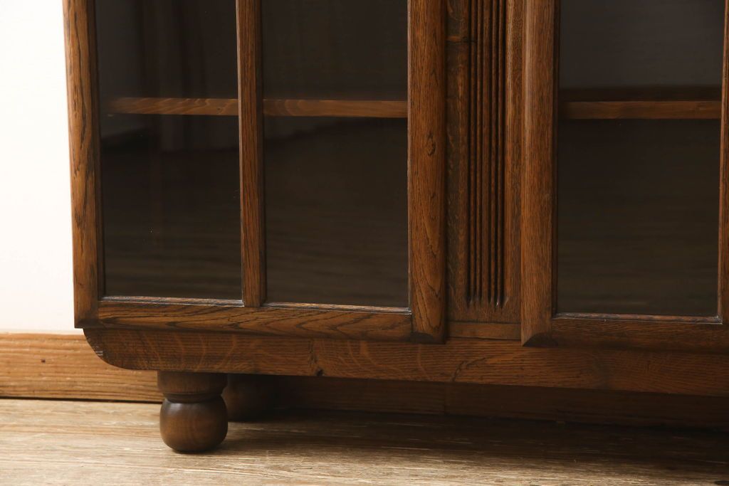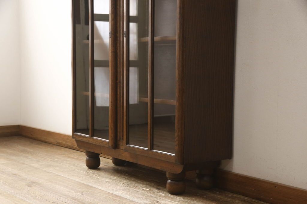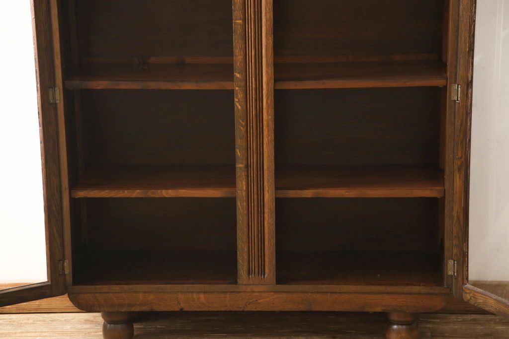 キャビネット・戸棚> 本箱 > イギリスアンティークの薄型ブックケースをリペア&カスタム!既存の脚を外し、木製丸脚を製作し取付け。現状の色味を活かして仕上げ。(本箱、戸棚、収納棚、飾り棚、キャビネット)