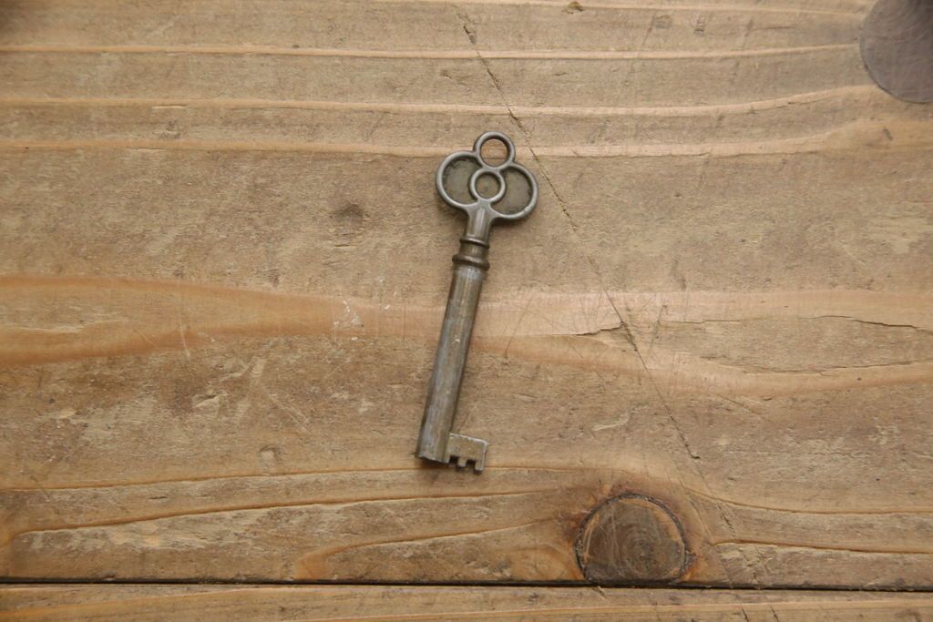 鍵は付属します。画像にありますように、袋に入れお付けします。スムーズに動くように調整していますが、あくまでも古いものや中古品ですので、長期の使用保証は出来かねます。ご購入後、鍵に不具合が発生した場合は、当店でサポートさせていただきますので、お気軽にご相談くださいませ。
