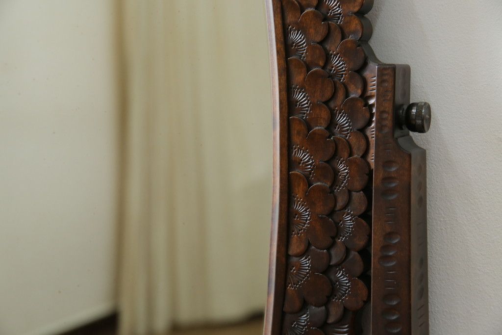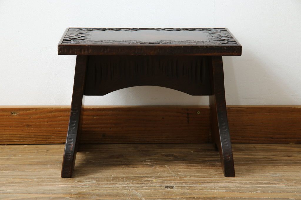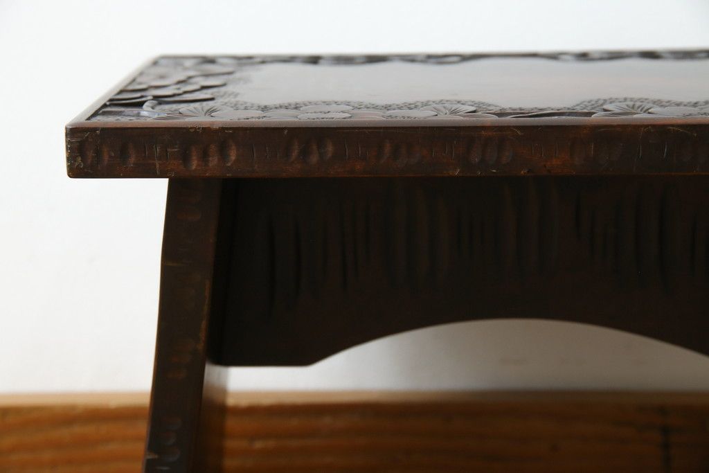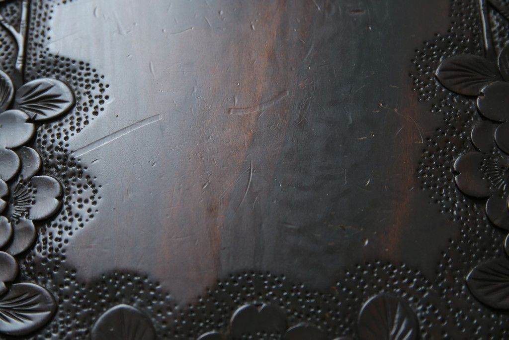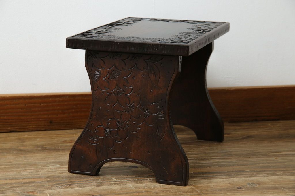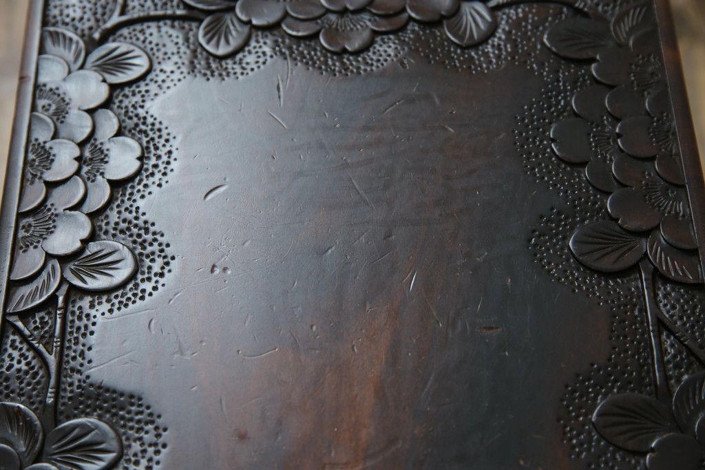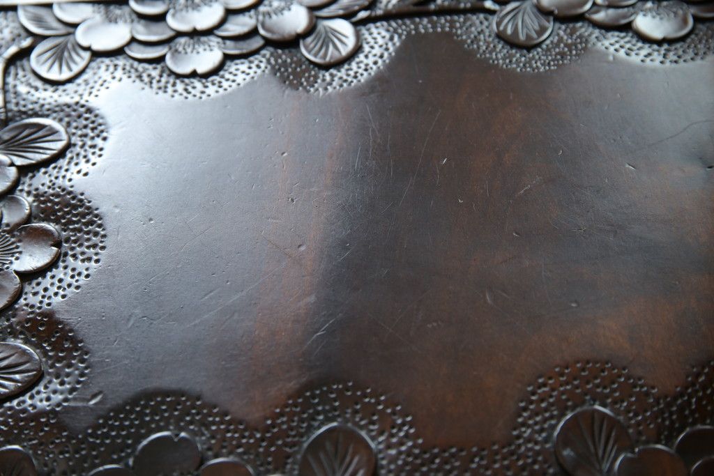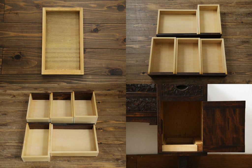 中古 軽井沢彫り 趣ある木の色合いと凝った桜の意匠が和の雰囲気を高めるドレッサーとスツールのセット(鏡台、化粧台、ミラー)(R-062577)です。