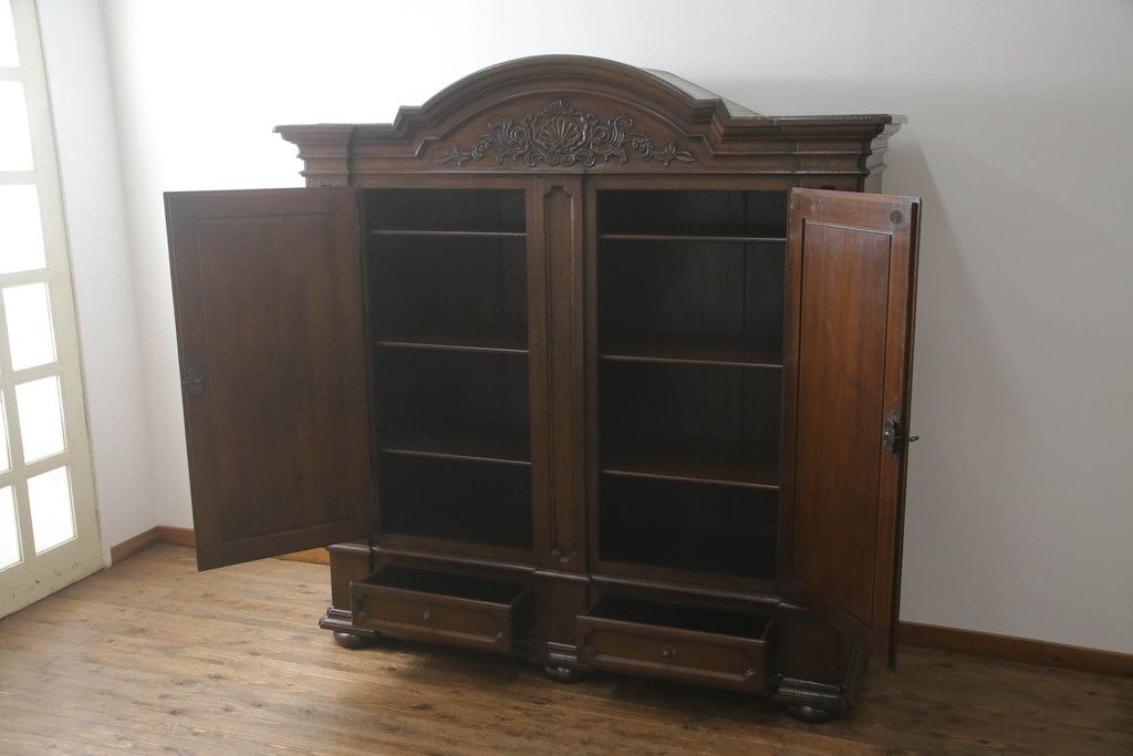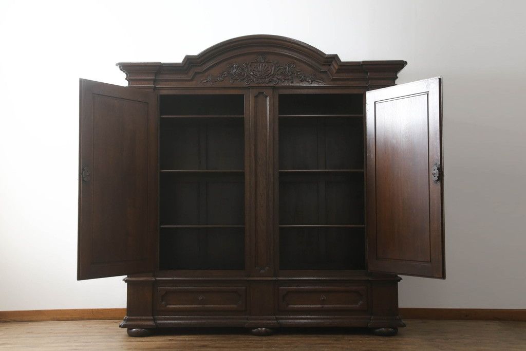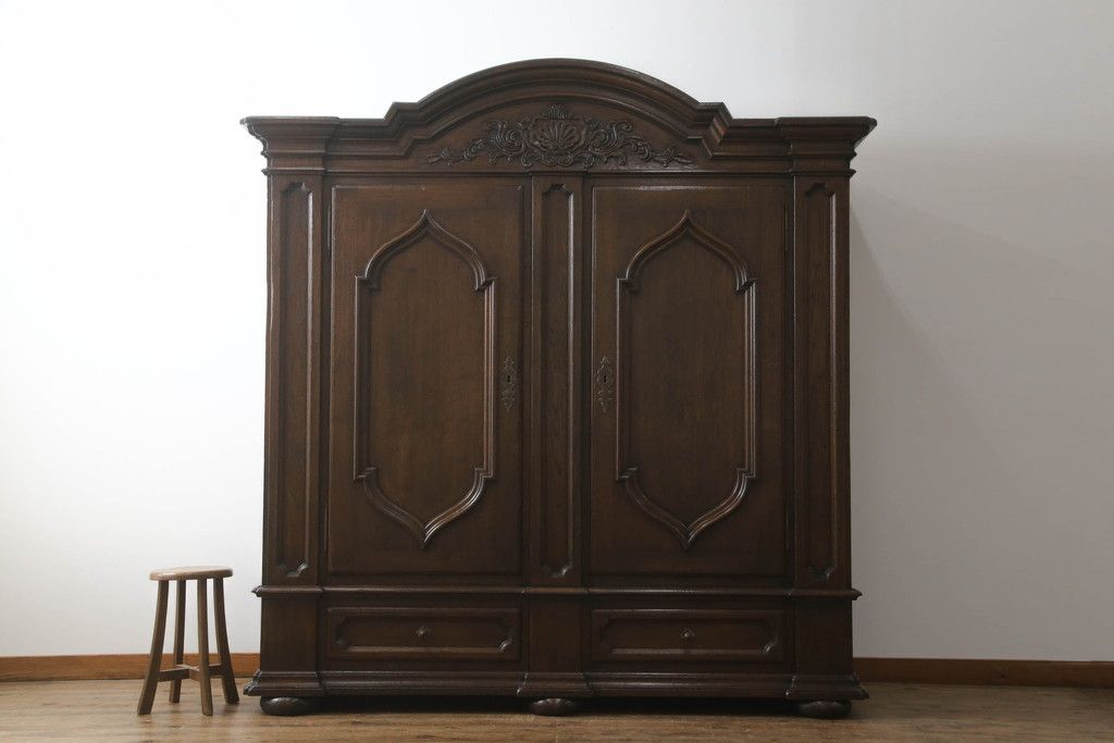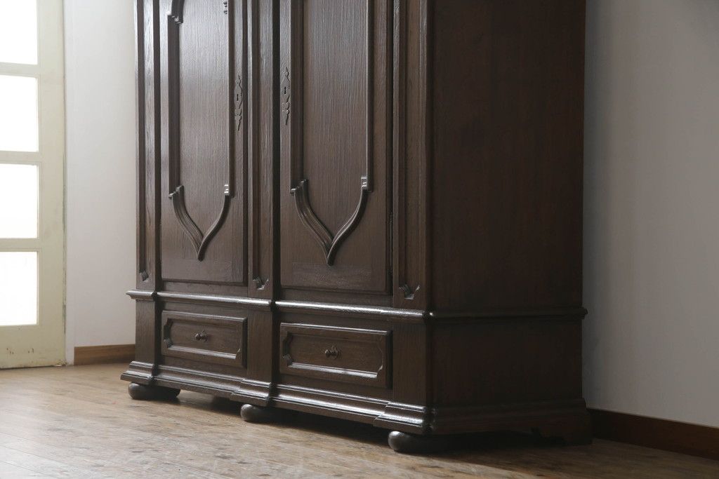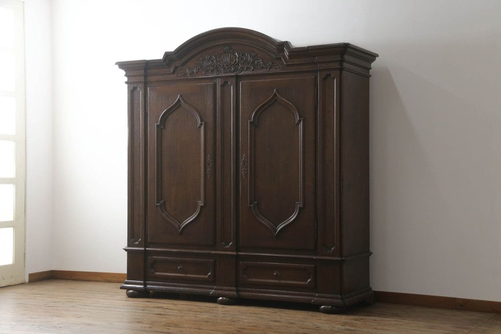 中古 美品 オランダ 高級海外輸入家具 特大! オーク材 重厚感ある佇まいのワードローブキャビネット(戸棚、収納棚、洋服タンス)(R-063042)です。