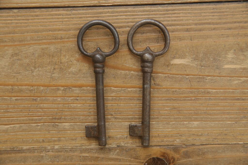 鍵は付属します。画像にありますように、袋に入れお付けします。スムーズに動くように調整していますが、あくまでも古いものや中古品ですので、長期の使用保証は出来かねます。ご購入後、鍵に不具合が発生した場合は、当店でサポートさせていただきますので、お気軽にご相談くださいませ。