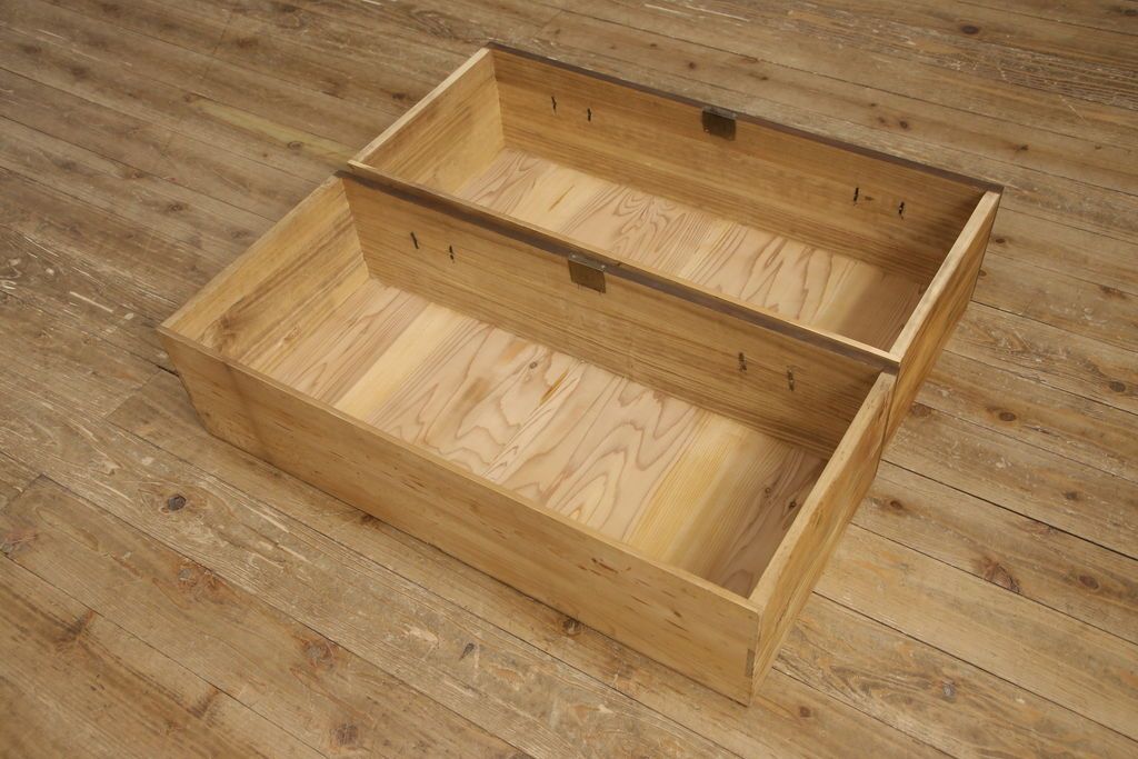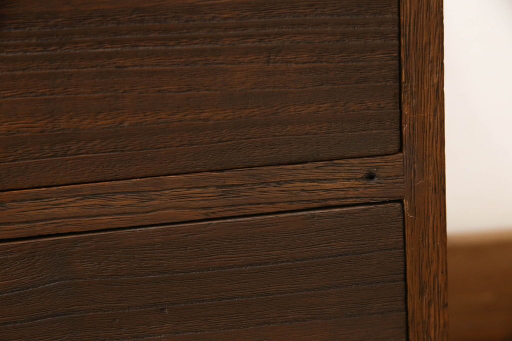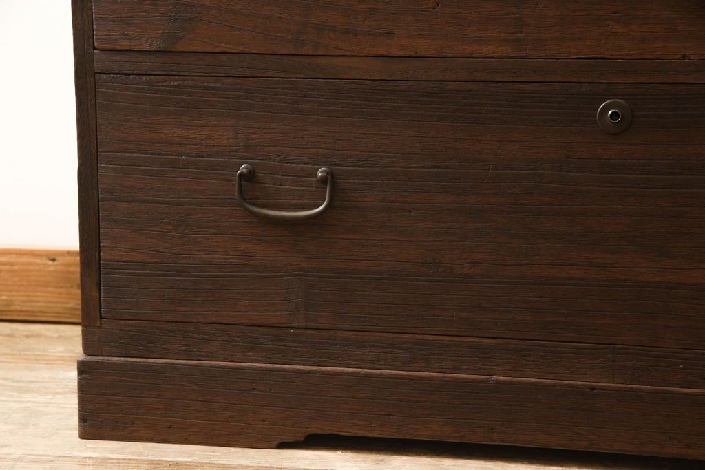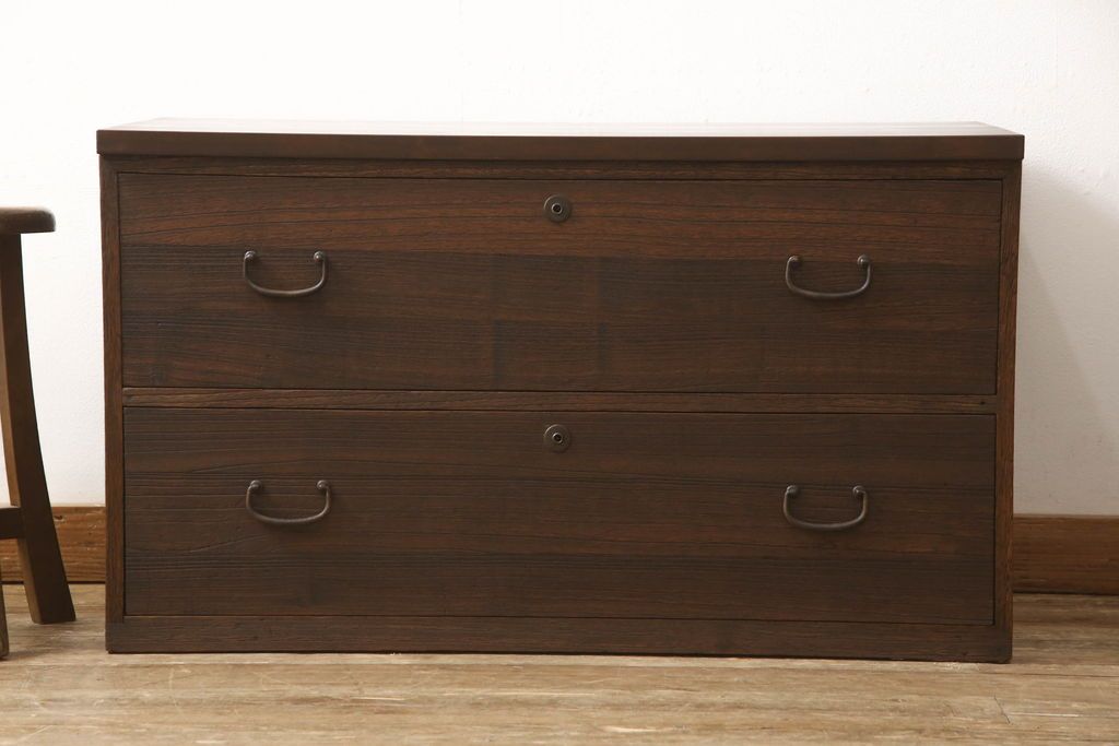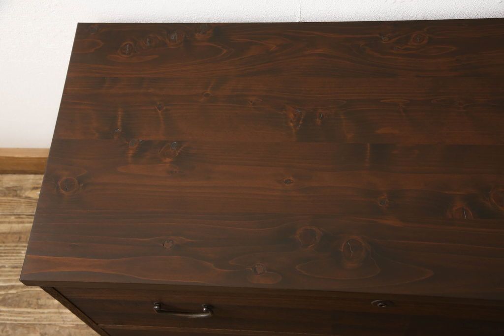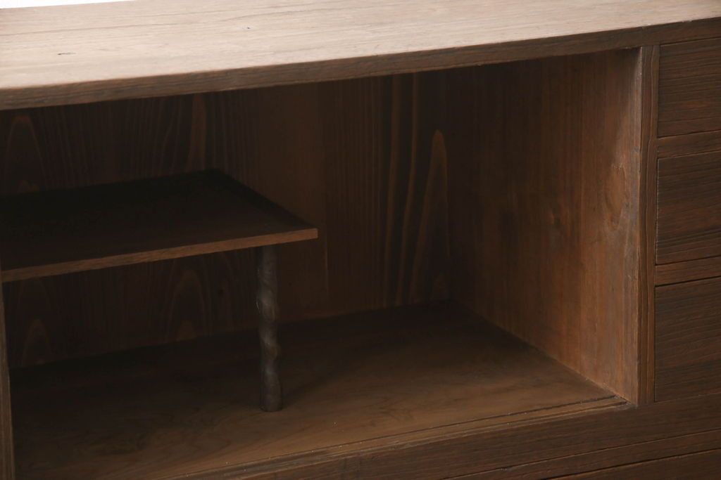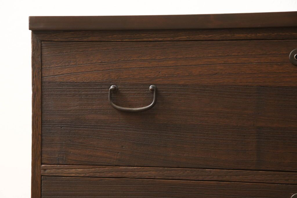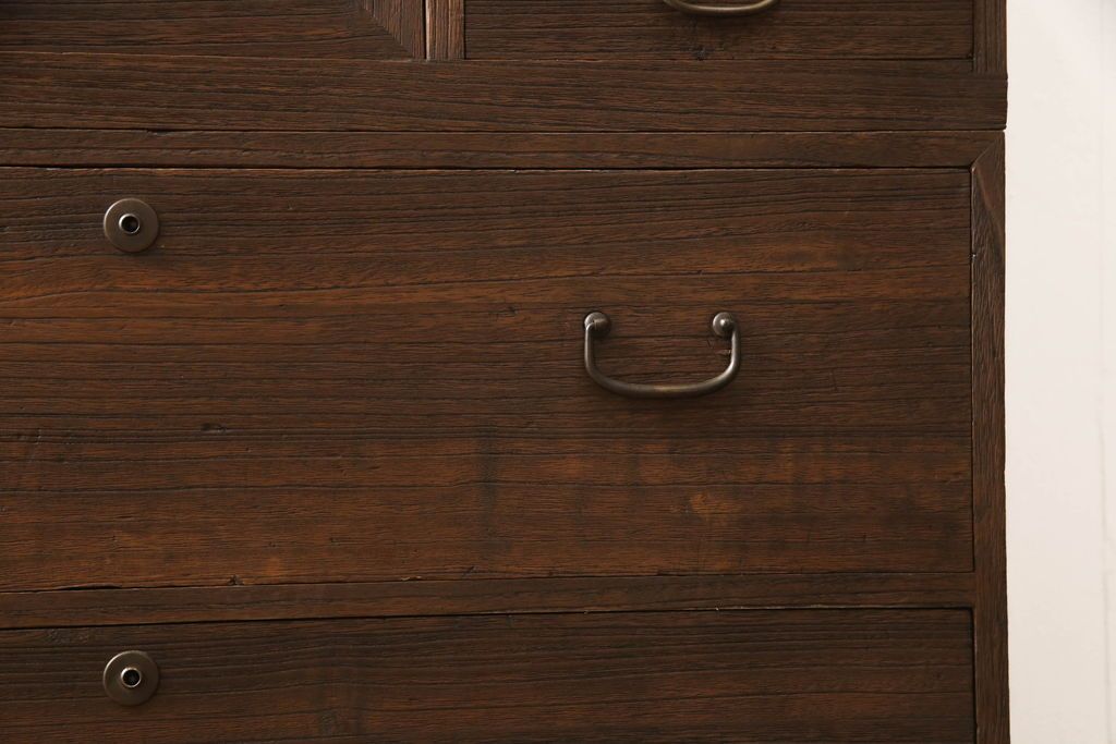 3段重ね桐箪笥をチェストとテレビボードにリメイク!上段・中段・台輪を重ねてチェストに変更。下段は取っ手の取り付け。いずれもヒノキ無垢材の天板を追加。オーク系で着色仕上げ。
