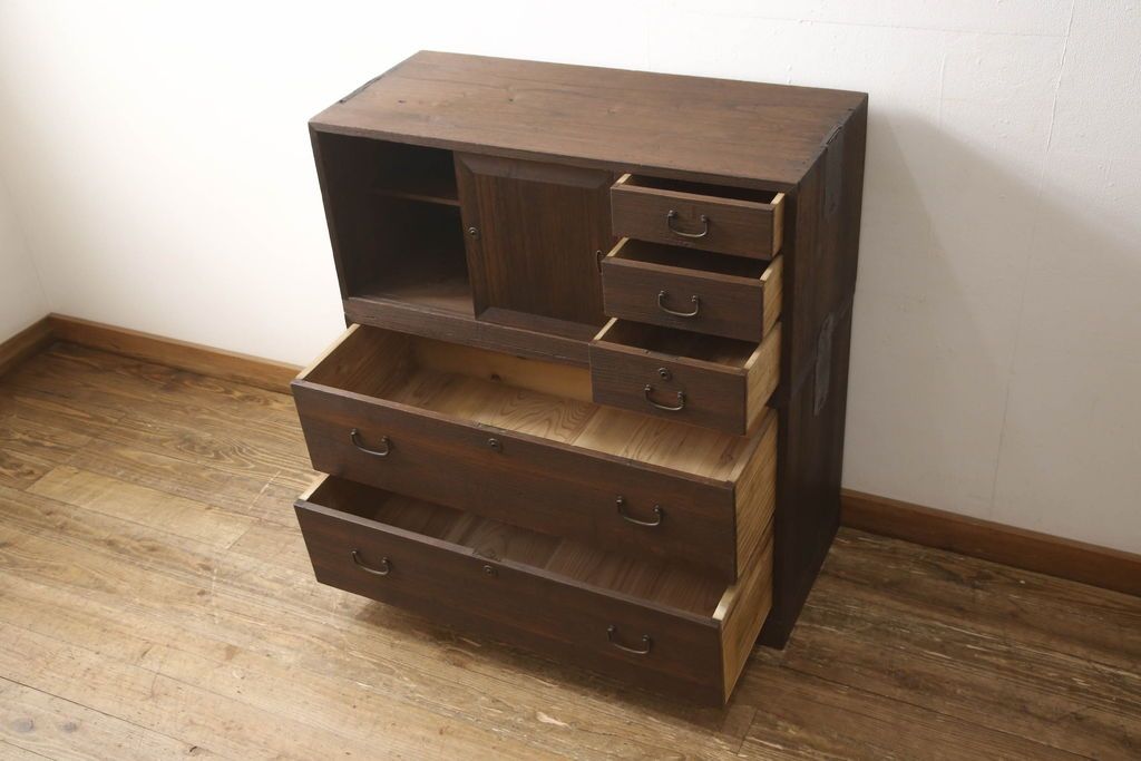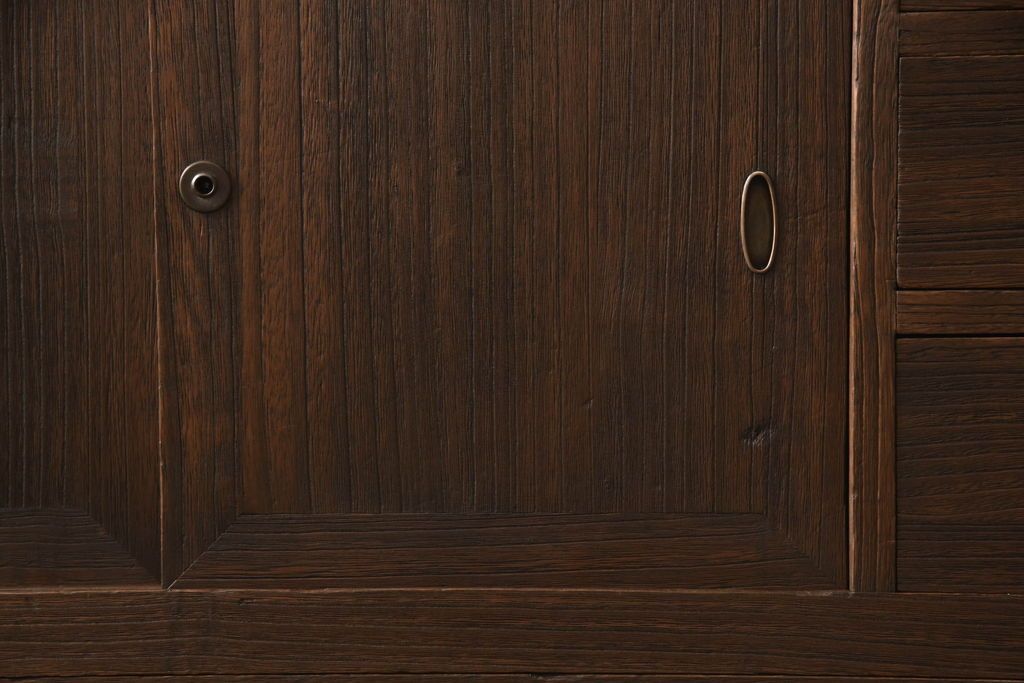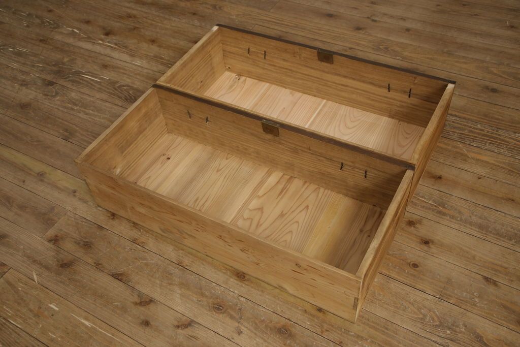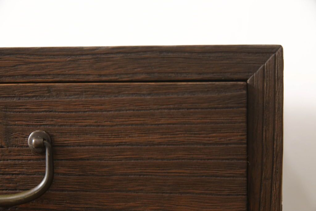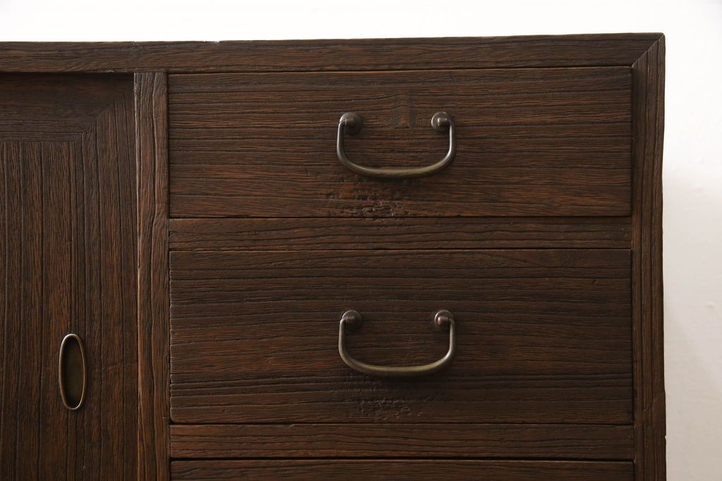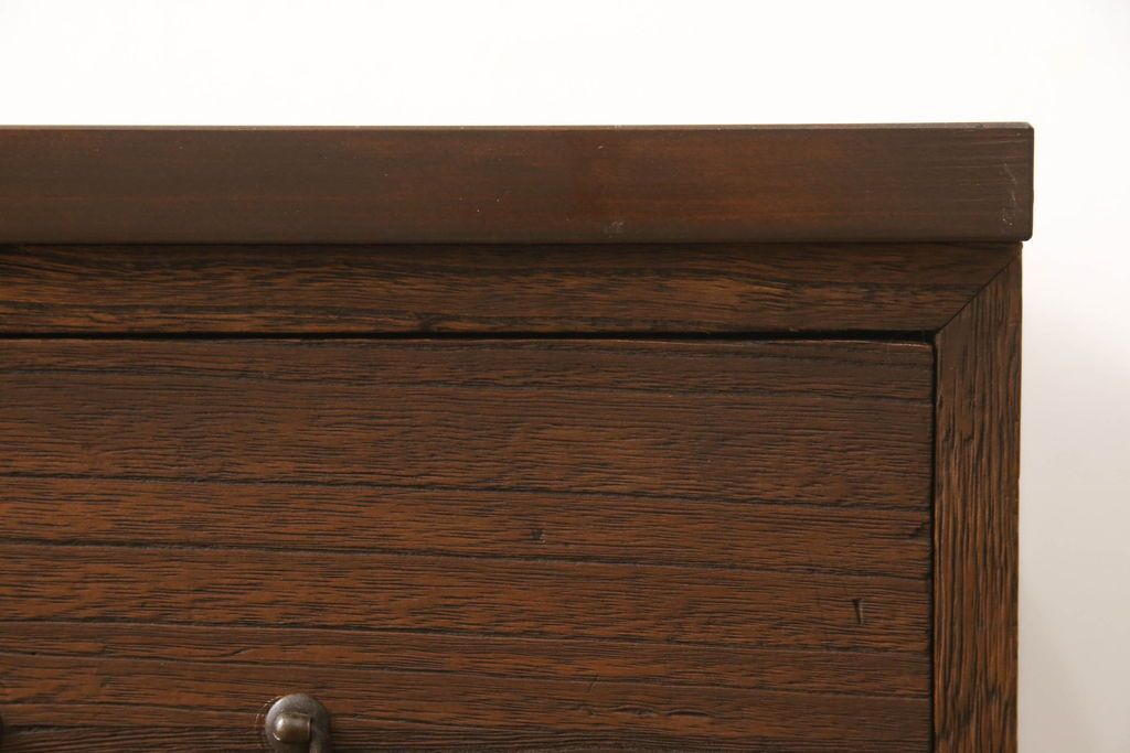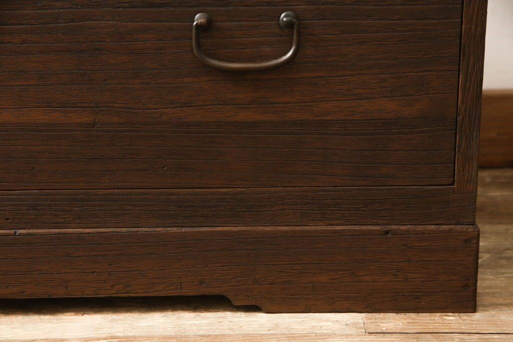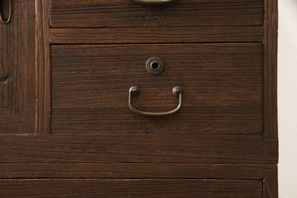 3段重ね桐箪笥をチェストとテレビボードにリメイク!上段・中段・台輪を重ねてチェストに変更。下段は取っ手の取り付け。いずれもヒノキ無垢材の天板を追加。オーク系で着色仕上げ。