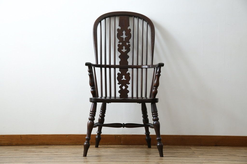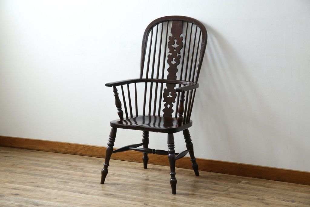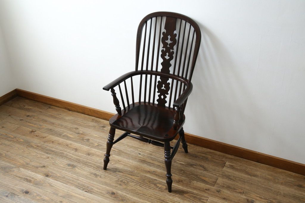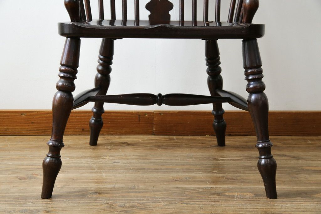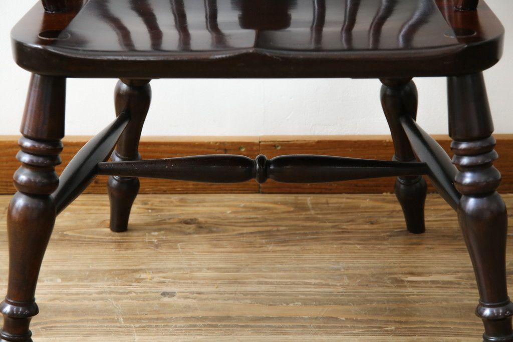 椅子・ベンチ> ダイニングチェア > 中古 松本民芸家具 #44A型 シックな色合いとクラシカルな佇まいが魅力のウィンザーチェア(ウインザーチェア、アームチェア、板座チェア、ダイニングチェア、椅子、イス)(定価約20万円)(R-063210)