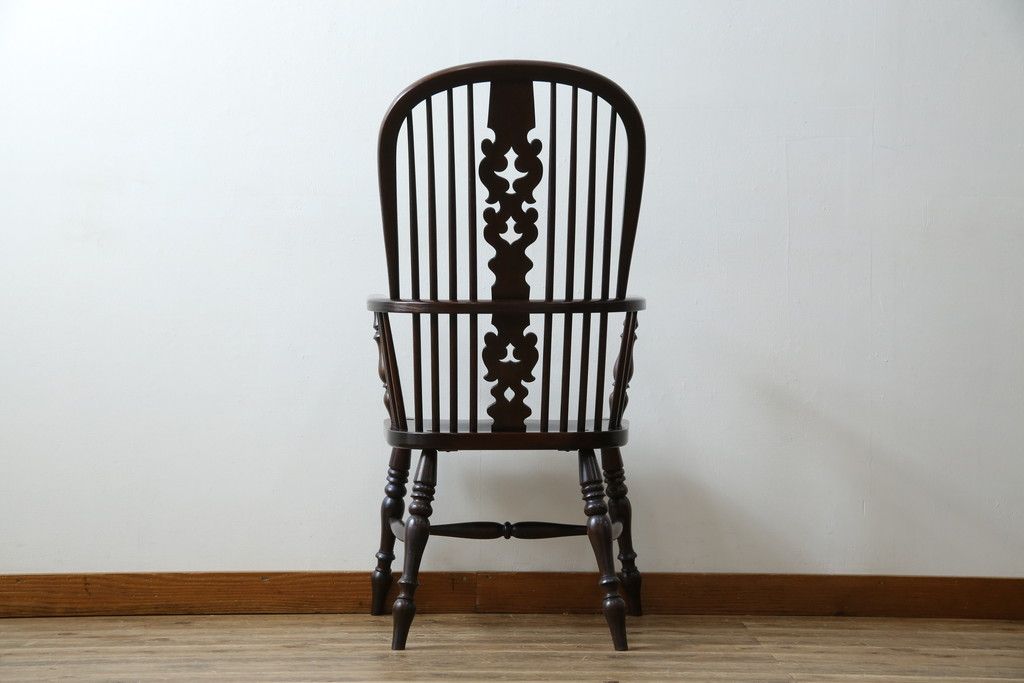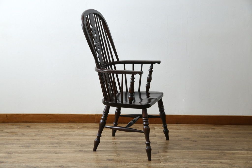 椅子・ベンチ> ウィンザーチェア > 中古 松本民芸家具 #44A型 シックな色合いとクラシカルな佇まいが魅力のウィンザーチェア(ウインザーチェア、アームチェア、板座チェア、ダイニングチェア、椅子、イス)(定価約20万円)(R-063210)