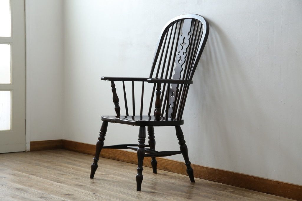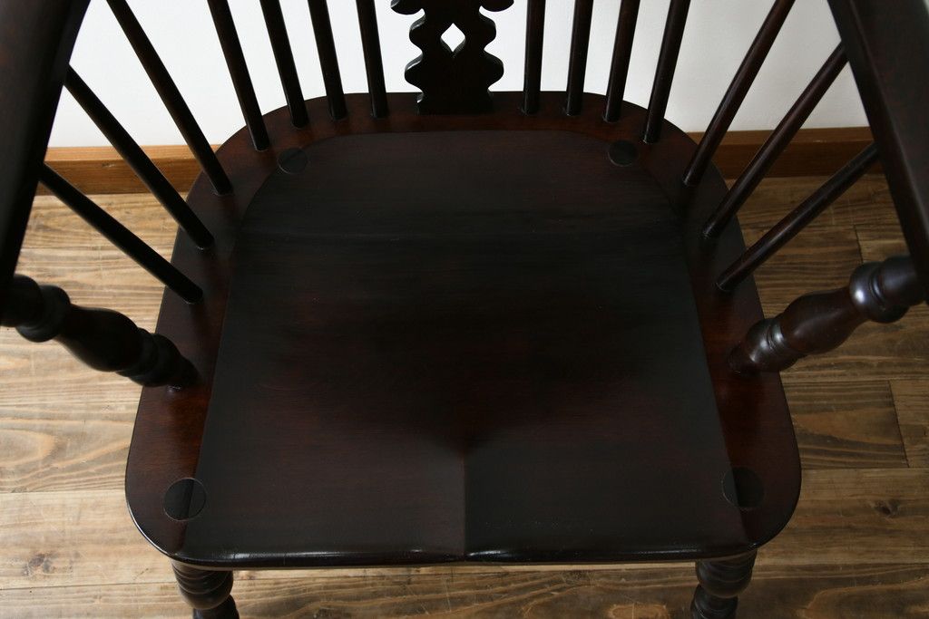 民芸家具 > 中古 松本民芸家具 #44A型 シックな色合いとクラシカルな佇まいが魅力のウィンザーチェア(ウインザーチェア、アームチェア、板座チェア、ダイニングチェア、椅子、イス)(定価約20万円)(R-063210)