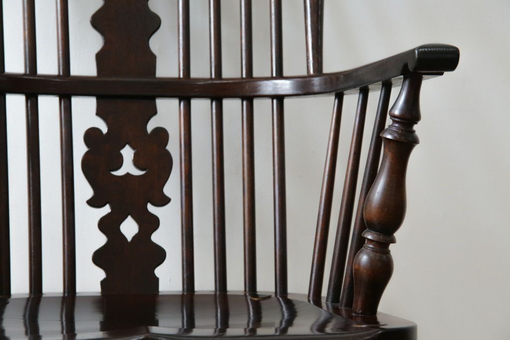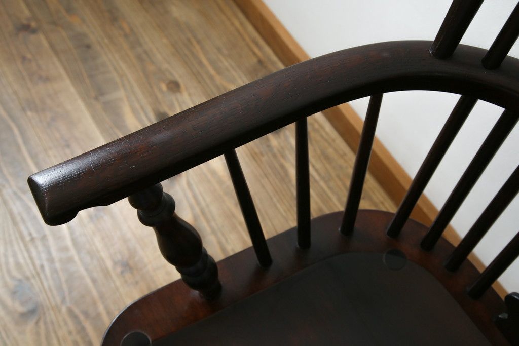 椅子・ベンチ> アームチェア > 中古 松本民芸家具 #44A型 シックな色合いとクラシカルな佇まいが魅力のウィンザーチェア(ウインザーチェア、アームチェア、板座チェア、ダイニングチェア、椅子、イス)(定価約20万円)(R-063210)