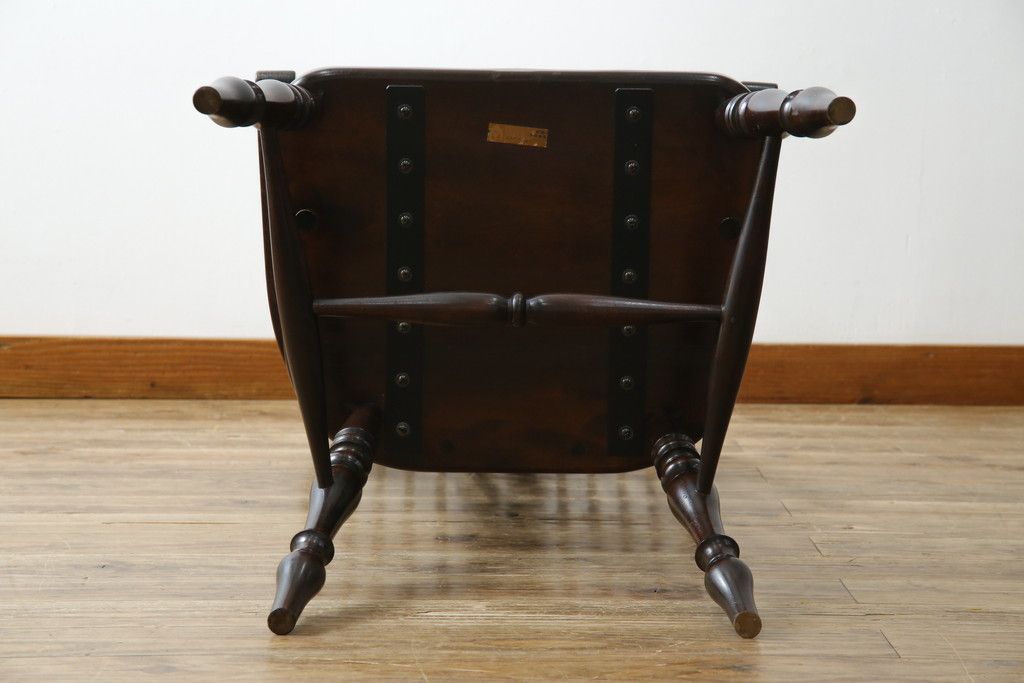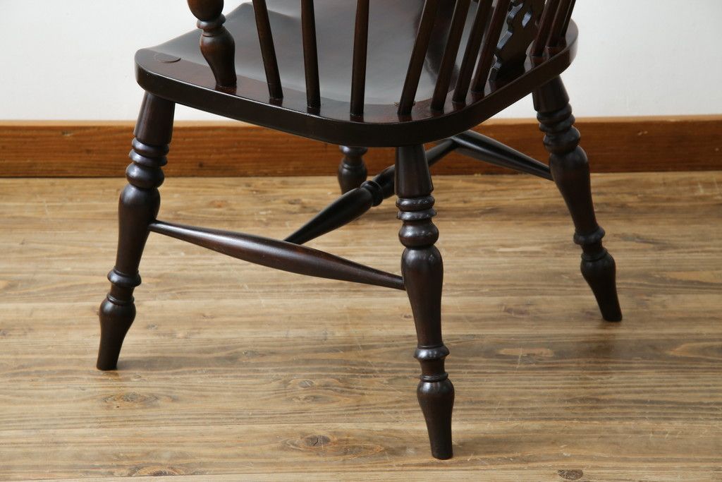 中古 松本民芸家具 #44A型 シックな色合いとクラシカルな佇まいが魅力のウィンザーチェア(ウインザーチェア、アームチェア、板座チェア、ダイニングチェア、椅子、イス)(定価約20万円)(R-063210)