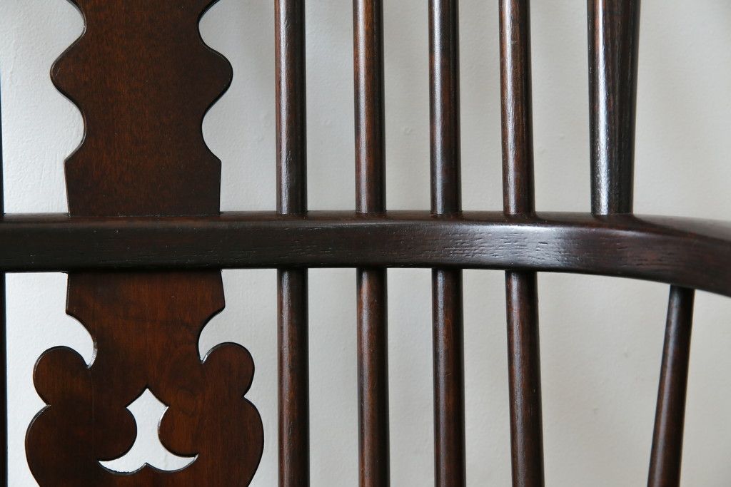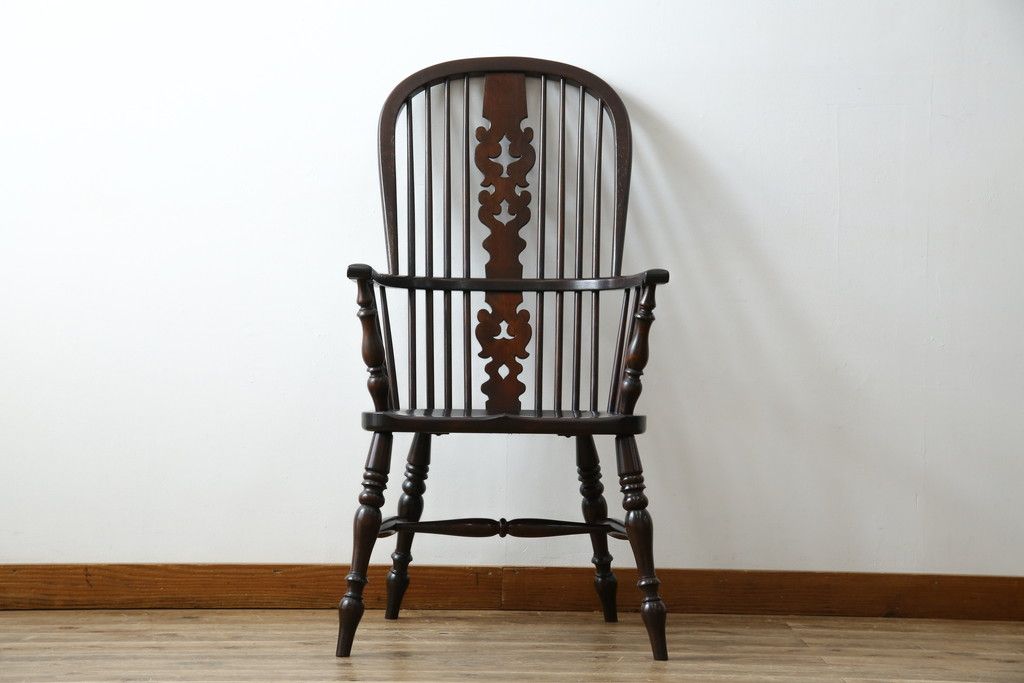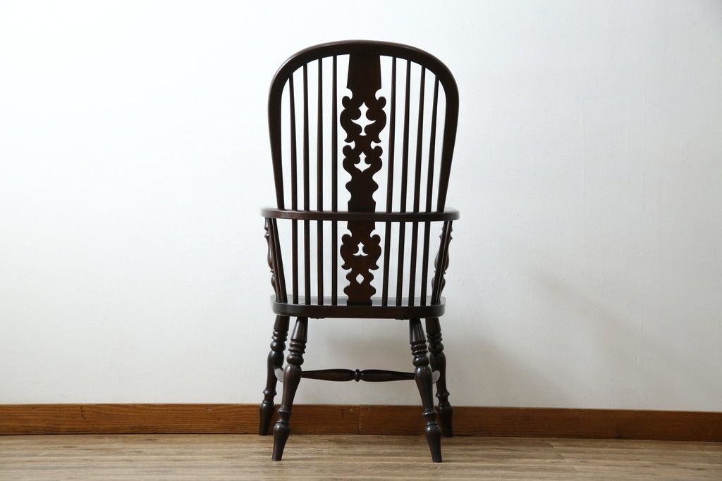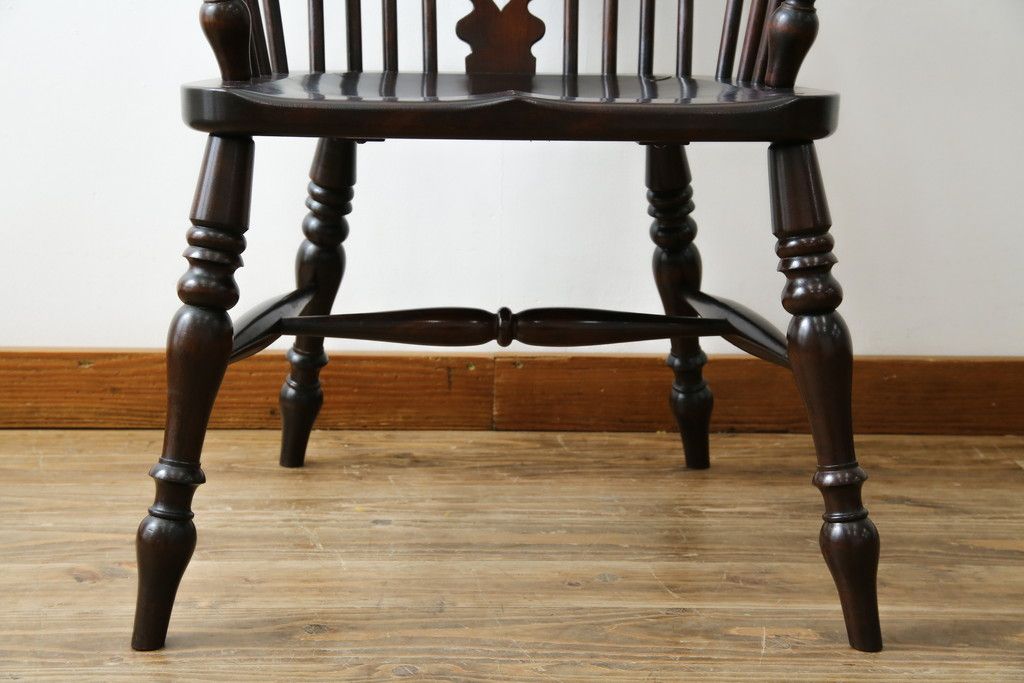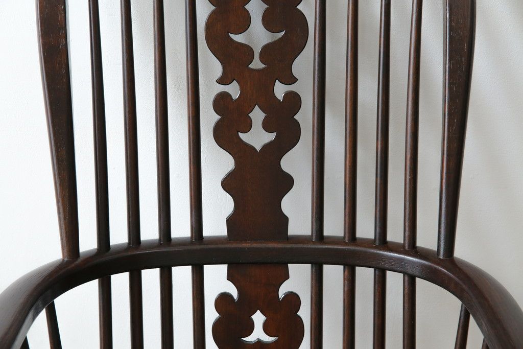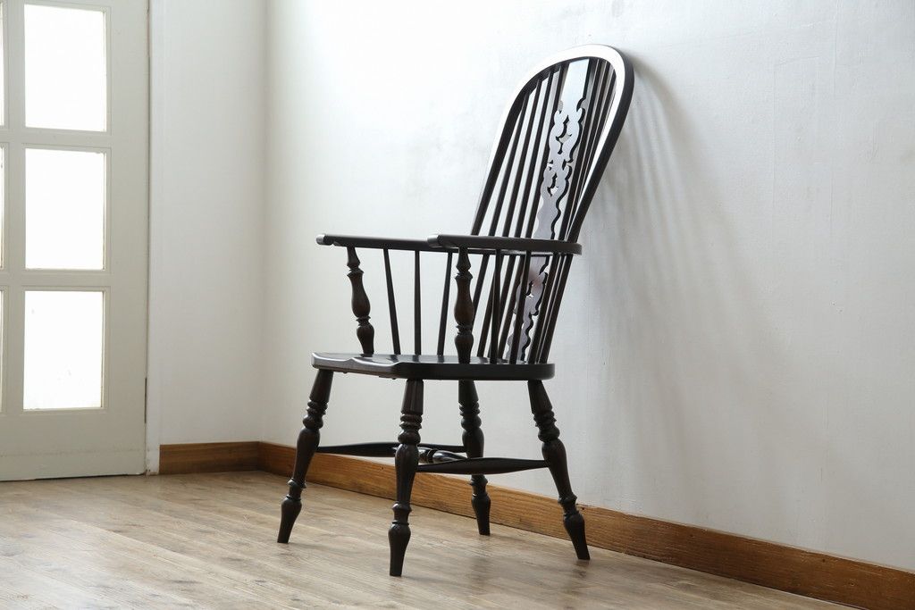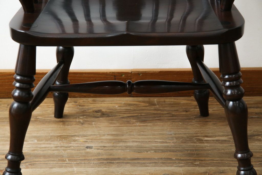 椅子・ベンチ> ダイニングチェア > 中古 松本民芸家具 #44A型 シックな色合いとクラシカルな佇まいが魅力のウィンザーチェア(ウインザーチェア、アームチェア、板座チェア、ダイニングチェア、椅子、イス)(定価約20万円)(R-063212)