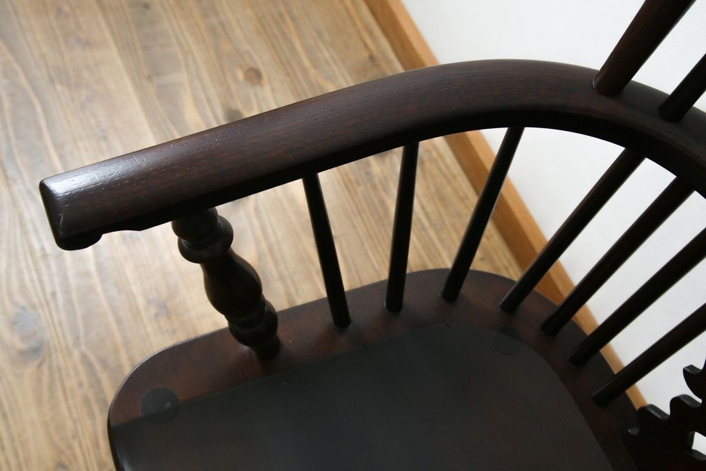 民芸家具 > 中古 松本民芸家具 #44A型 シックな色合いとクラシカルな佇まいが魅力のウィンザーチェア(ウインザーチェア、アームチェア、板座チェア、ダイニングチェア、椅子、イス)(定価約20万円)(R-063212)
