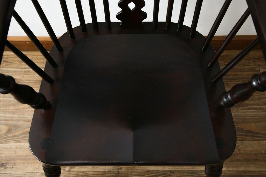 中古 松本民芸家具 #44A型 シックな色合いとクラシカルな佇まいが魅力のウィンザーチェア(ウインザーチェア、アームチェア、板座チェア、ダイニングチェア、椅子、イス)(定価約20万円)(R-063212)