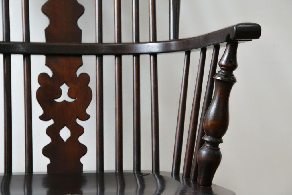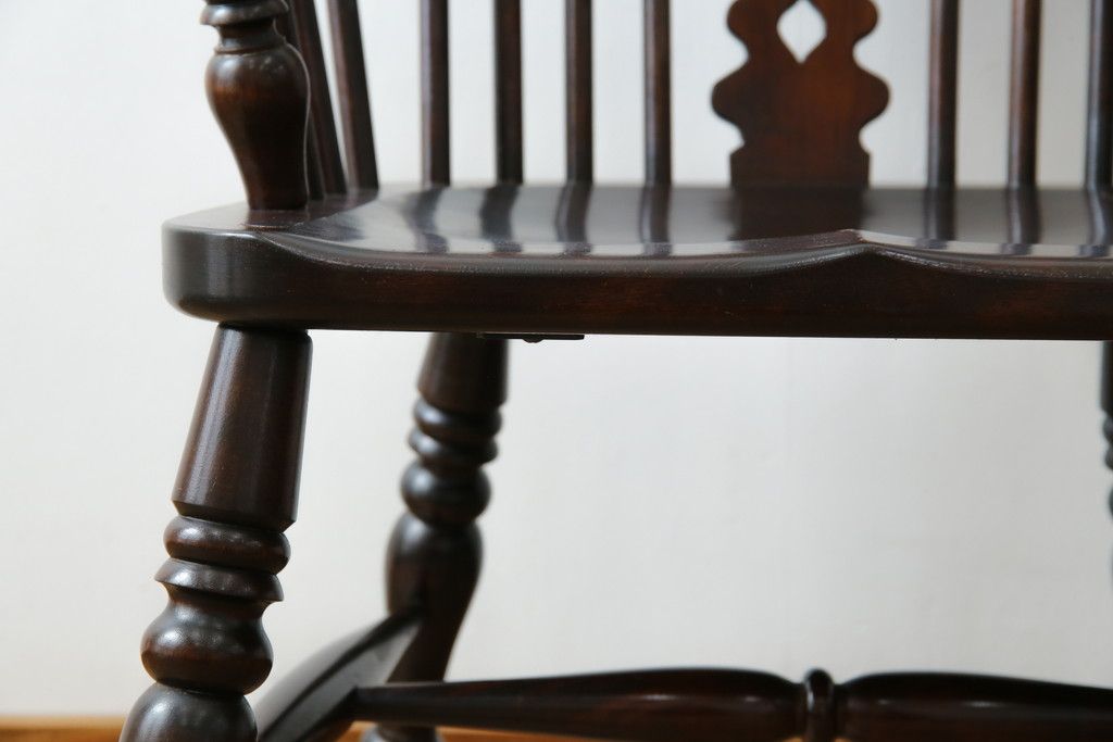 椅子・ベンチ> アームチェア > 中古 松本民芸家具 #44A型 シックな色合いとクラシカルな佇まいが魅力のウィンザーチェア(ウインザーチェア、アームチェア、板座チェア、ダイニングチェア、椅子、イス)(定価約20万円)(R-063212)