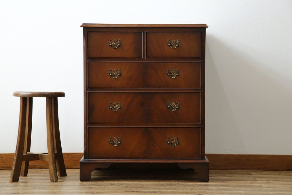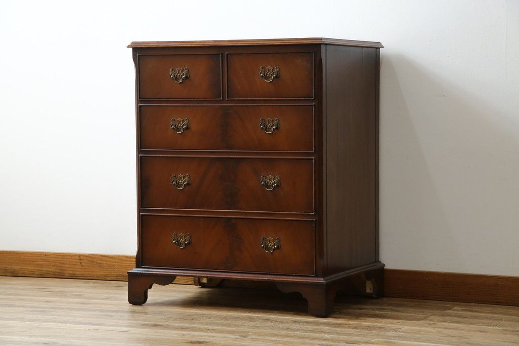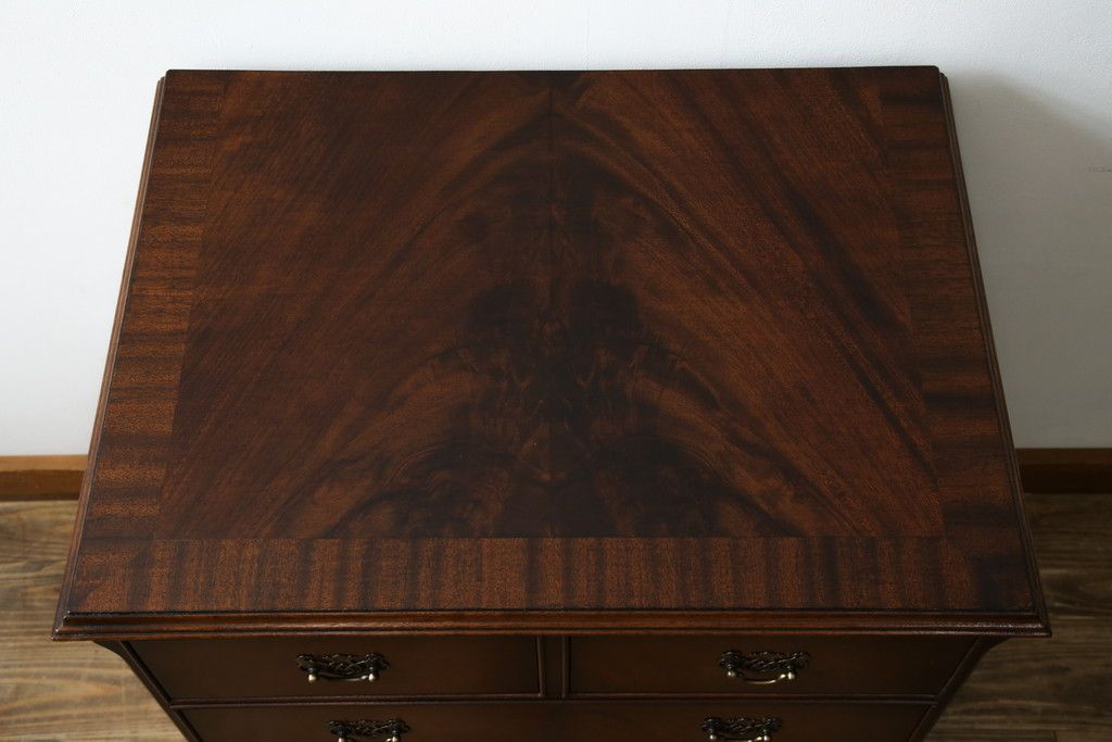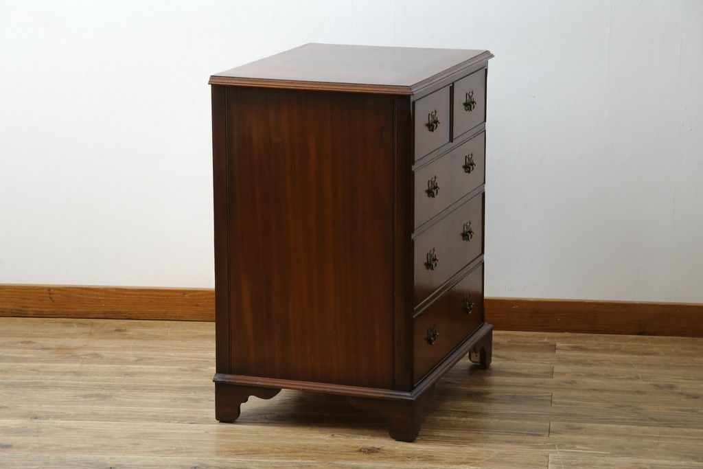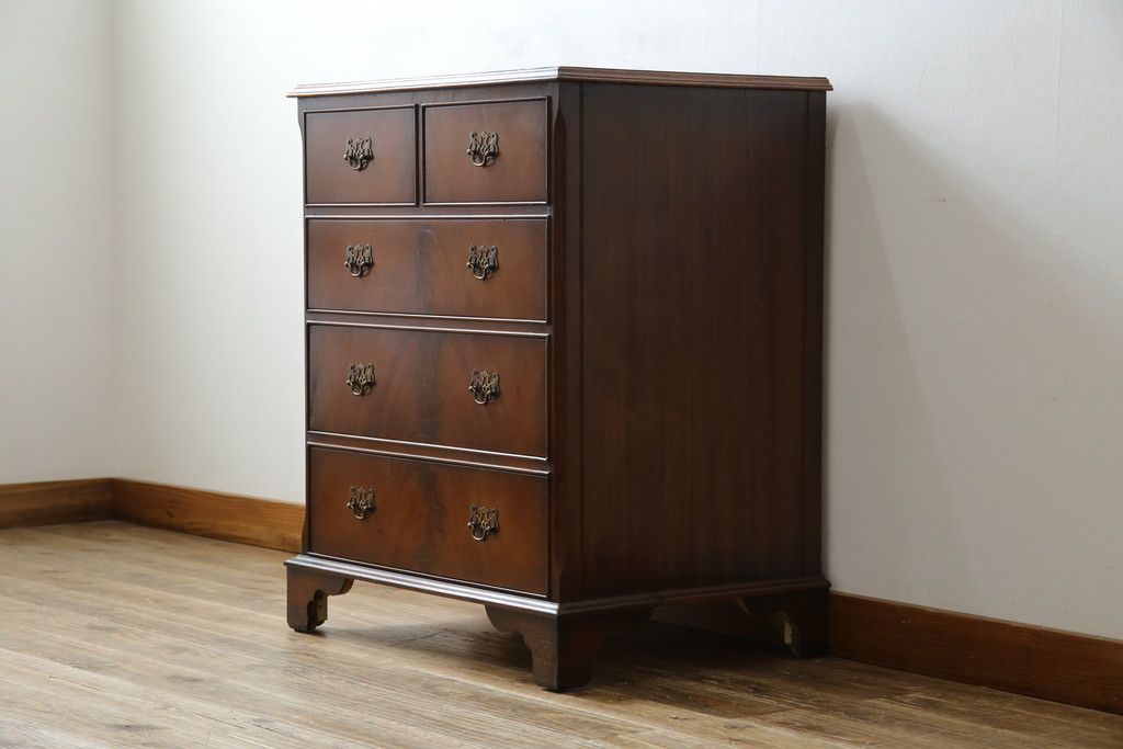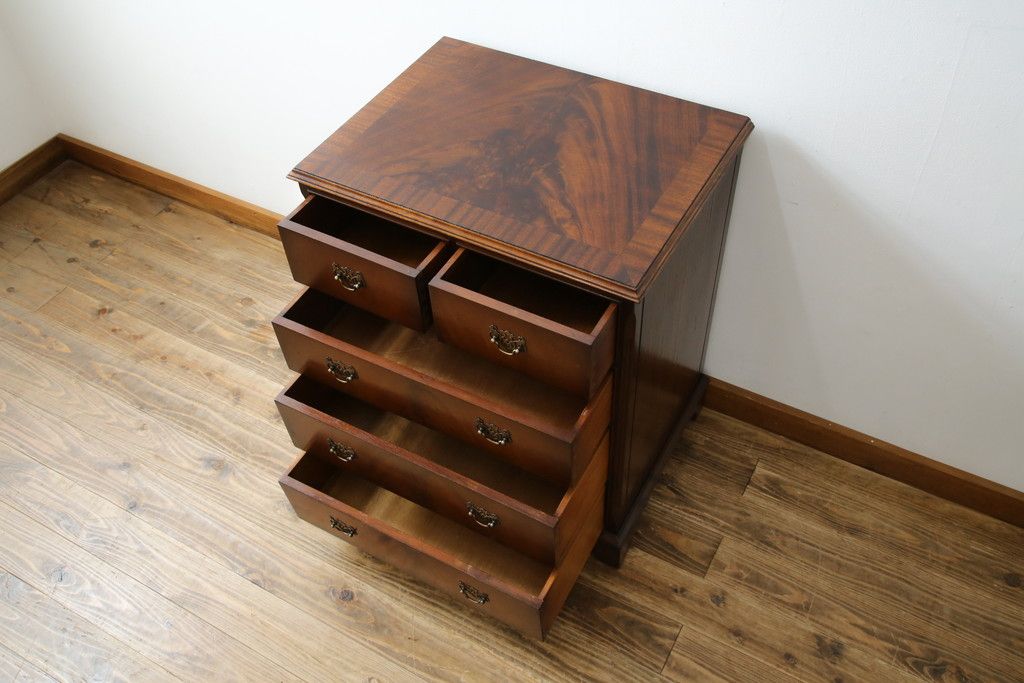 イギリスアンティーク マホガニー材 美しい杢目が魅力的な小振りなチェスト(引き出し、サイドチェスト)(R-063344)