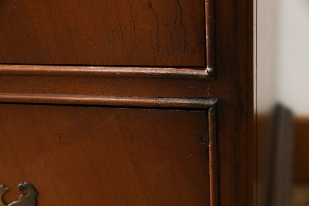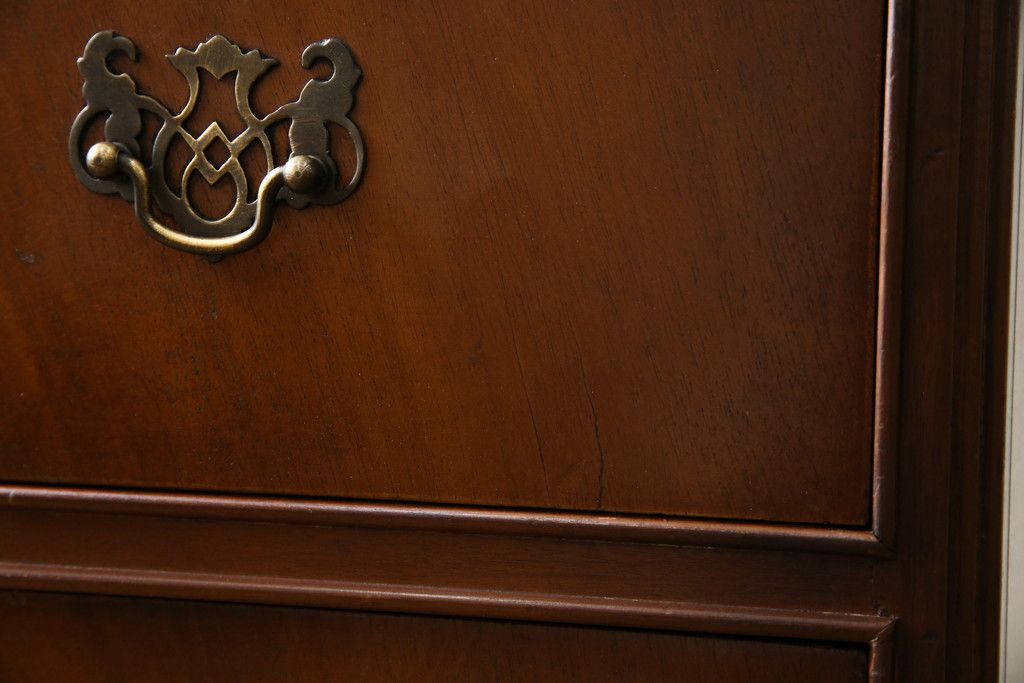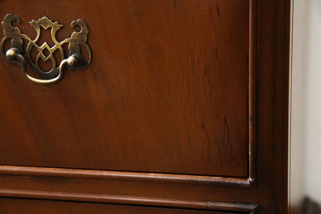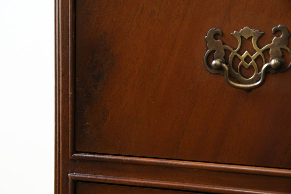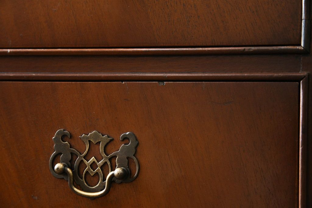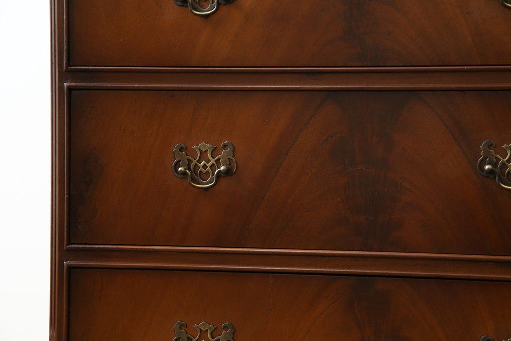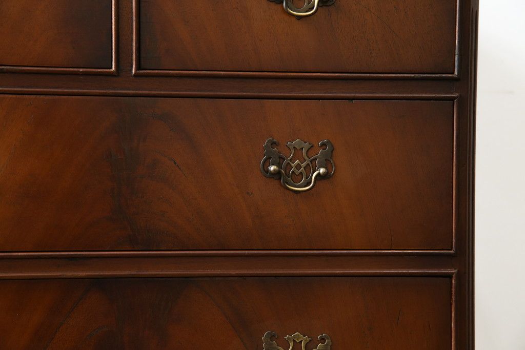 イギリスアンティーク マホガニー材 美しい杢目が魅力的な小振りなチェスト(引き出し、サイドチェスト)(R-063344)